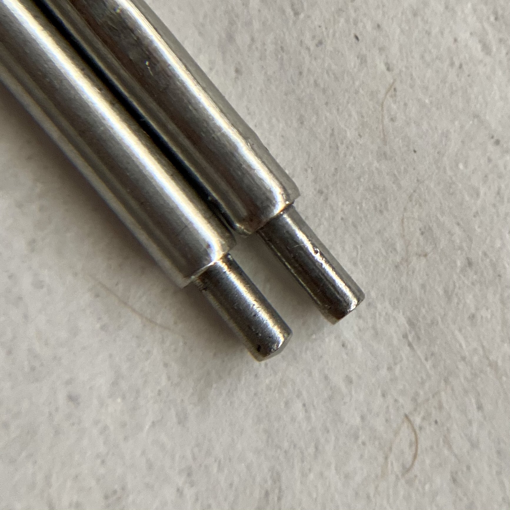 Admittedly I obsess over this as well. I've been buying every variation and type of 2mm spring bar for my Rolex 5512 in an attempt to find something well constructed and aesthetically pleasing. For now I've landed on Beco Technic spring bars. I find the construction and finish great. Look at it compared with some generic eBay spring bar (Beco Technic is on the bottom/left).