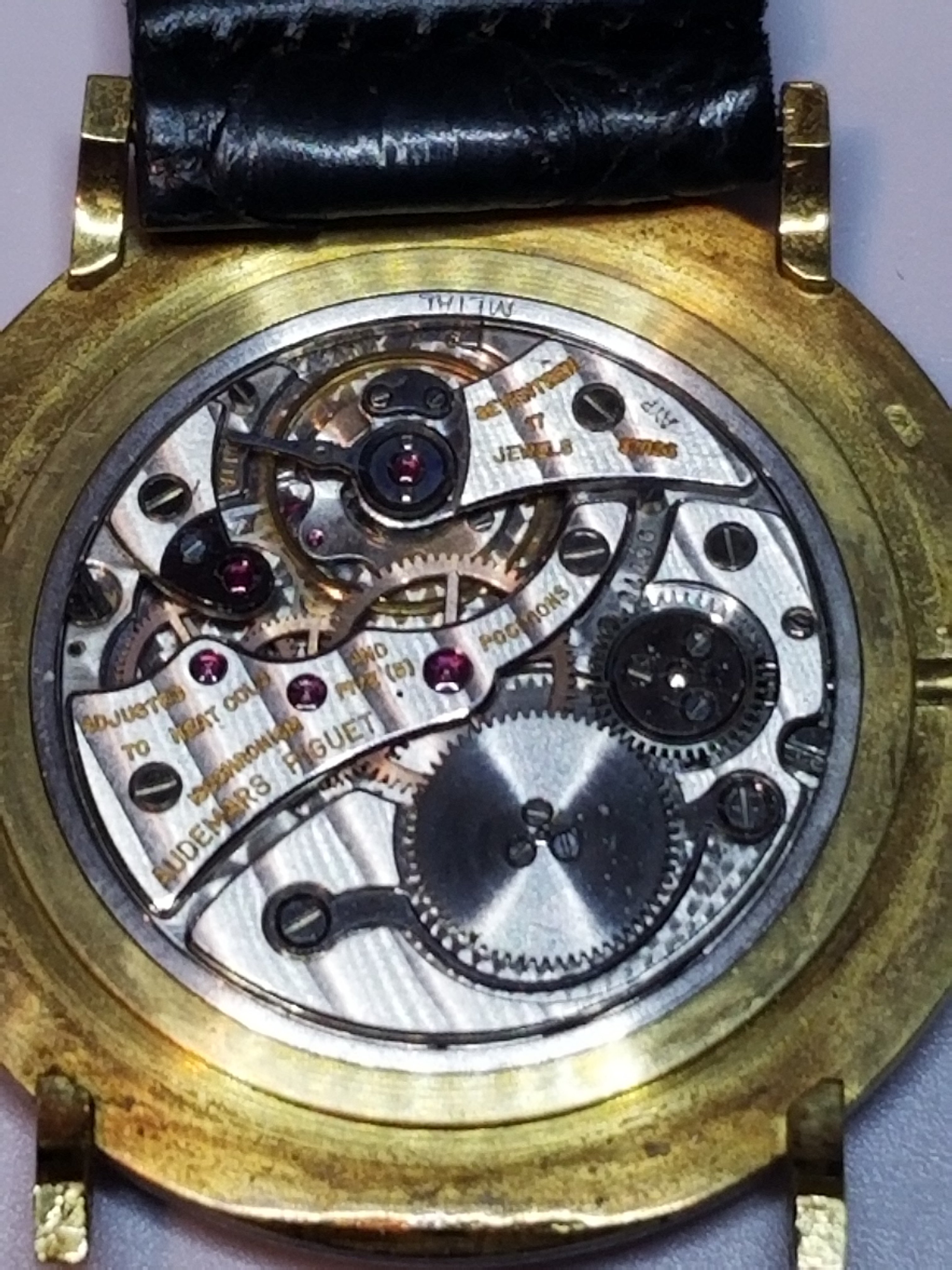 It's their ultra slim movement, Cal 2003, 1.64mm thick, developed in the mid-40's. Used by Vacheron Constantin and others. Super high qualty and fairly rugged for an ultrathin. I don't think AP uses it at the present time. I have it in an AP perpetual calendar.