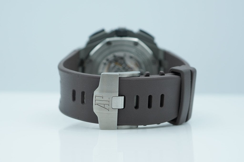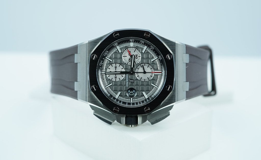 An Excellent, Unpolished Condition & Very Beautiful 2020 44mm Audemars Piguet Royal Oak Offshore Chronograph 26400 Lightweight Titanium Case with Black Ceramic Bezel & Slate Grey Dial. Its on Grey Rubber Strap with Titanium Pin Buckle. Purchased from Audemars Piguet Boutique in 11.2020. Watch Running Perfect with Non Issues. Complete Set & Under 5 Years Factory Warranty.