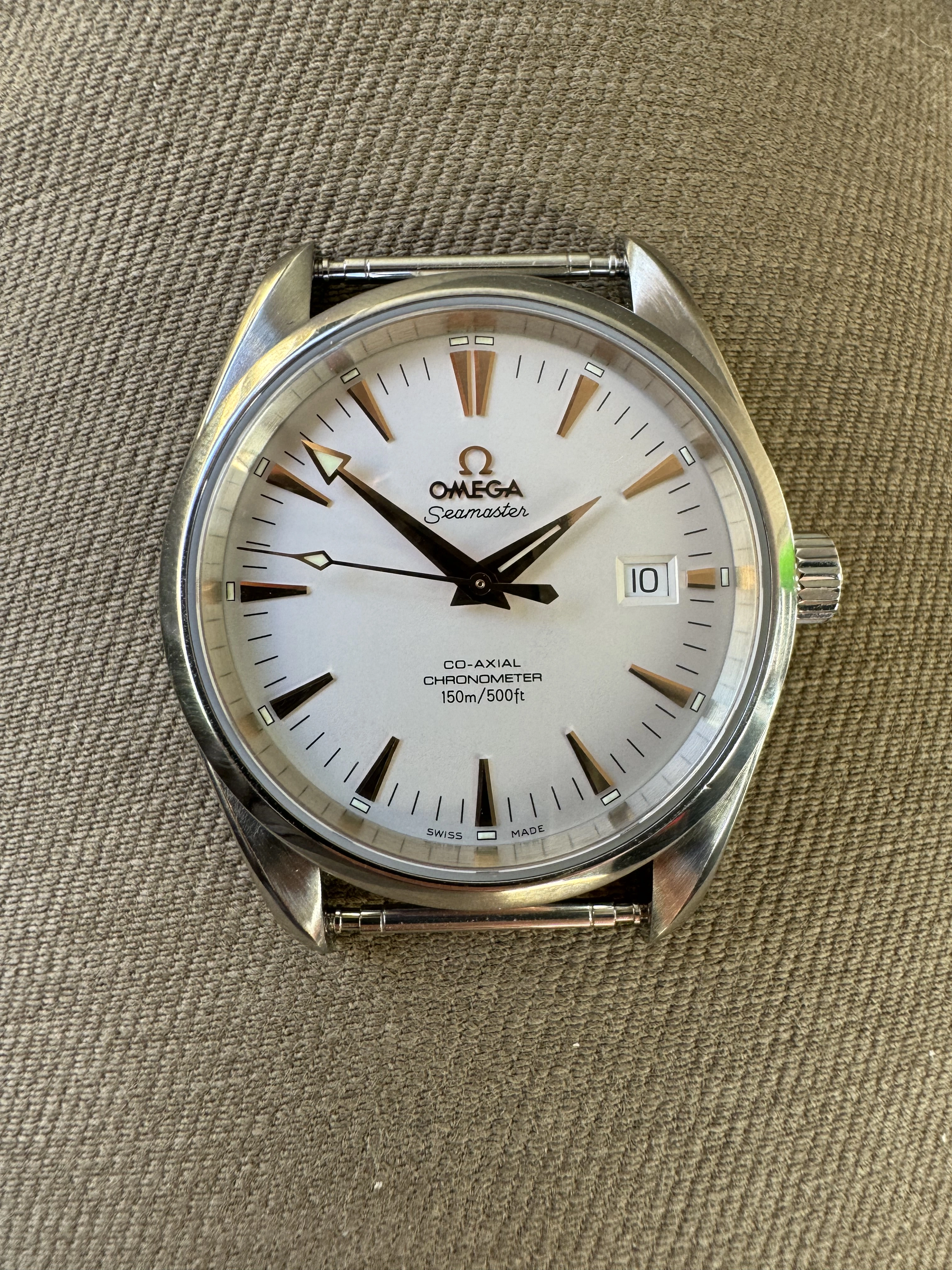 I recently purchased a first gen Aqua Terra (2503.34.00) and wanted to validate the authenticity. I have no reason to believe the watch is not authentic, other than the good price I paid for it and the watch not coming with the original box/papers/card with serial #. The serial numbers match on the case and movement.