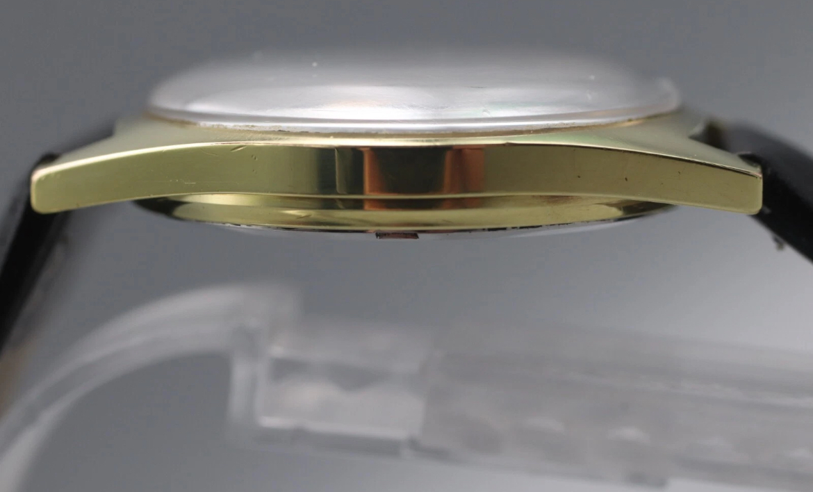 Condition is so-so (the case is a bit beat up, but perhaps not enough to notice while wearing, also can't be polished out because it is filled, not solid gold), and based on the state of that case gasket (and how some of it has slipped into the movement), it desperately needs a service.