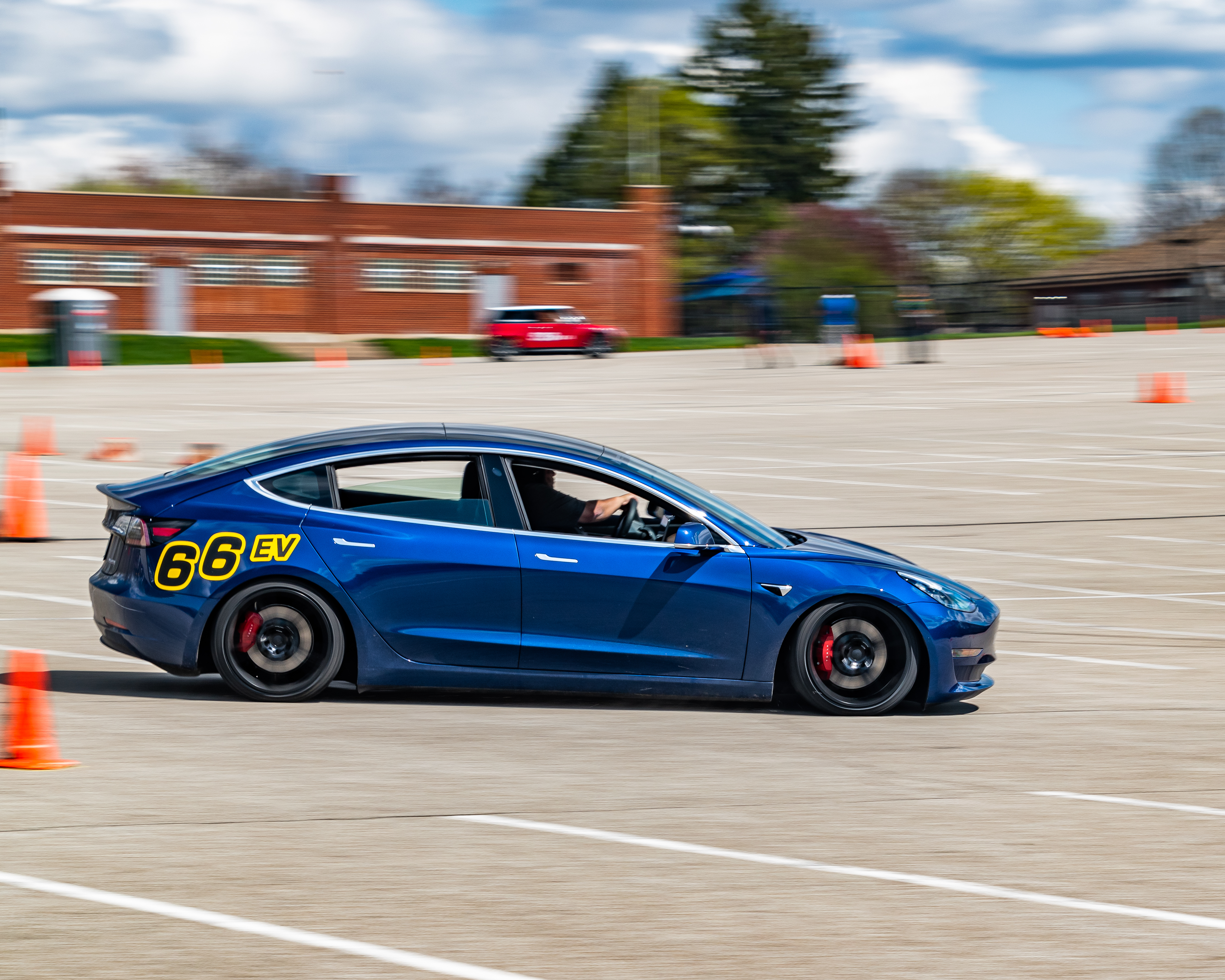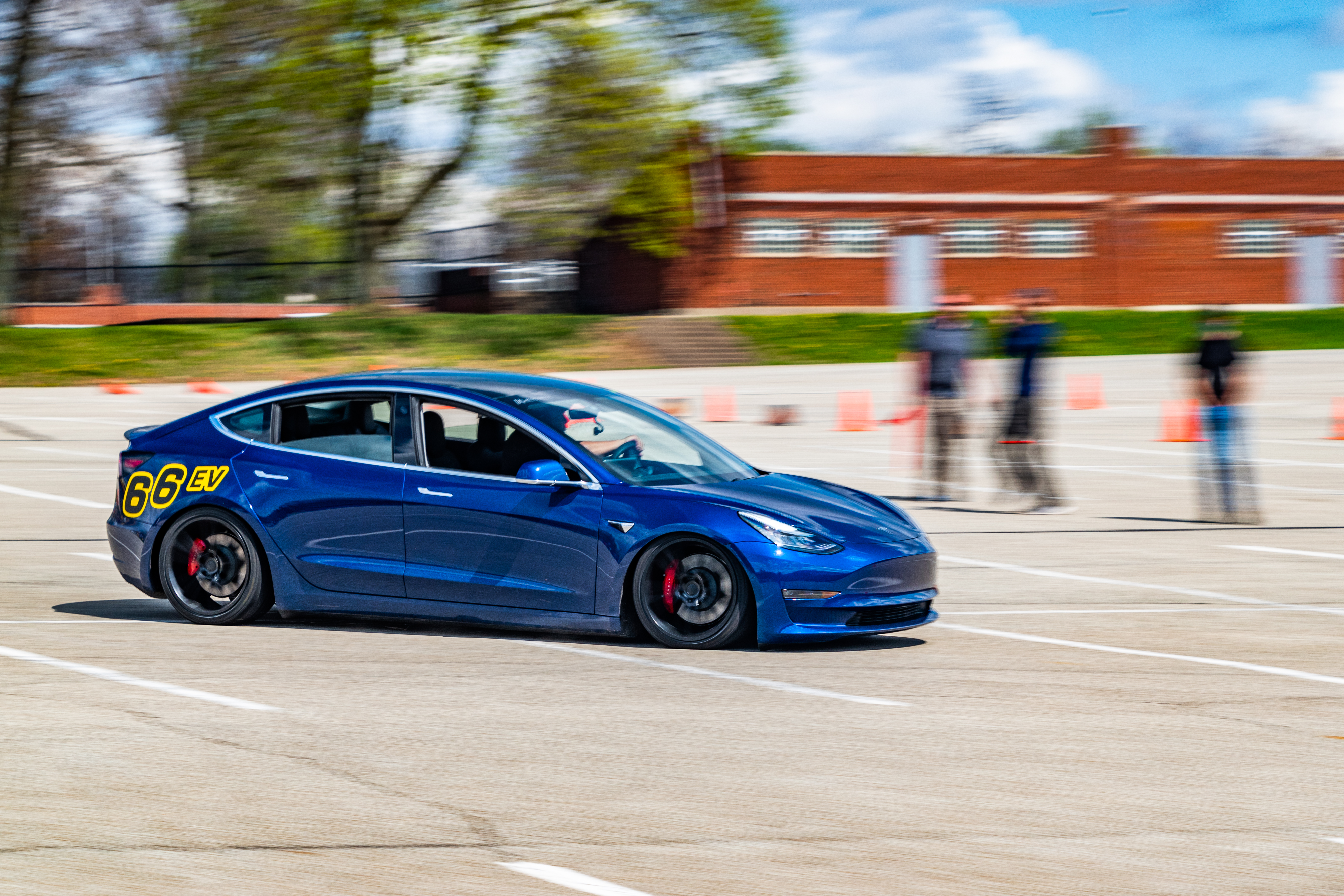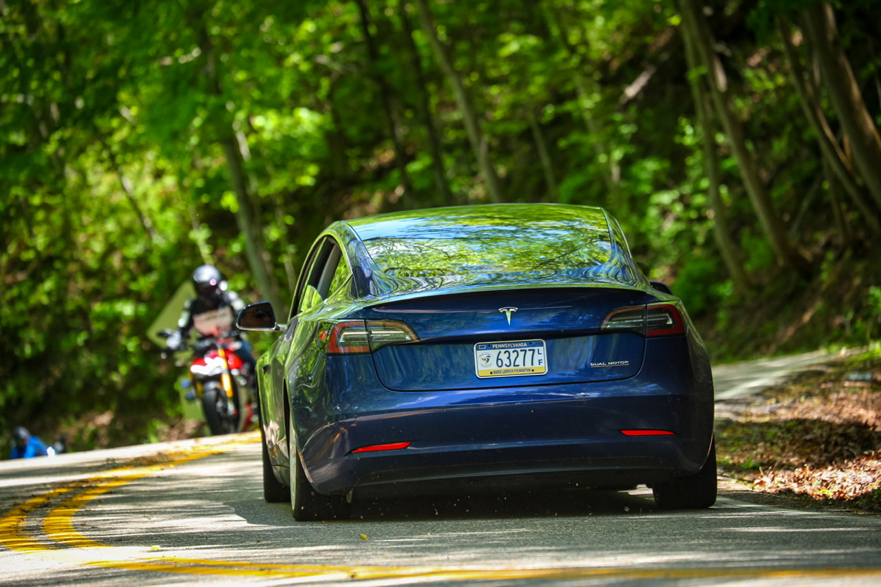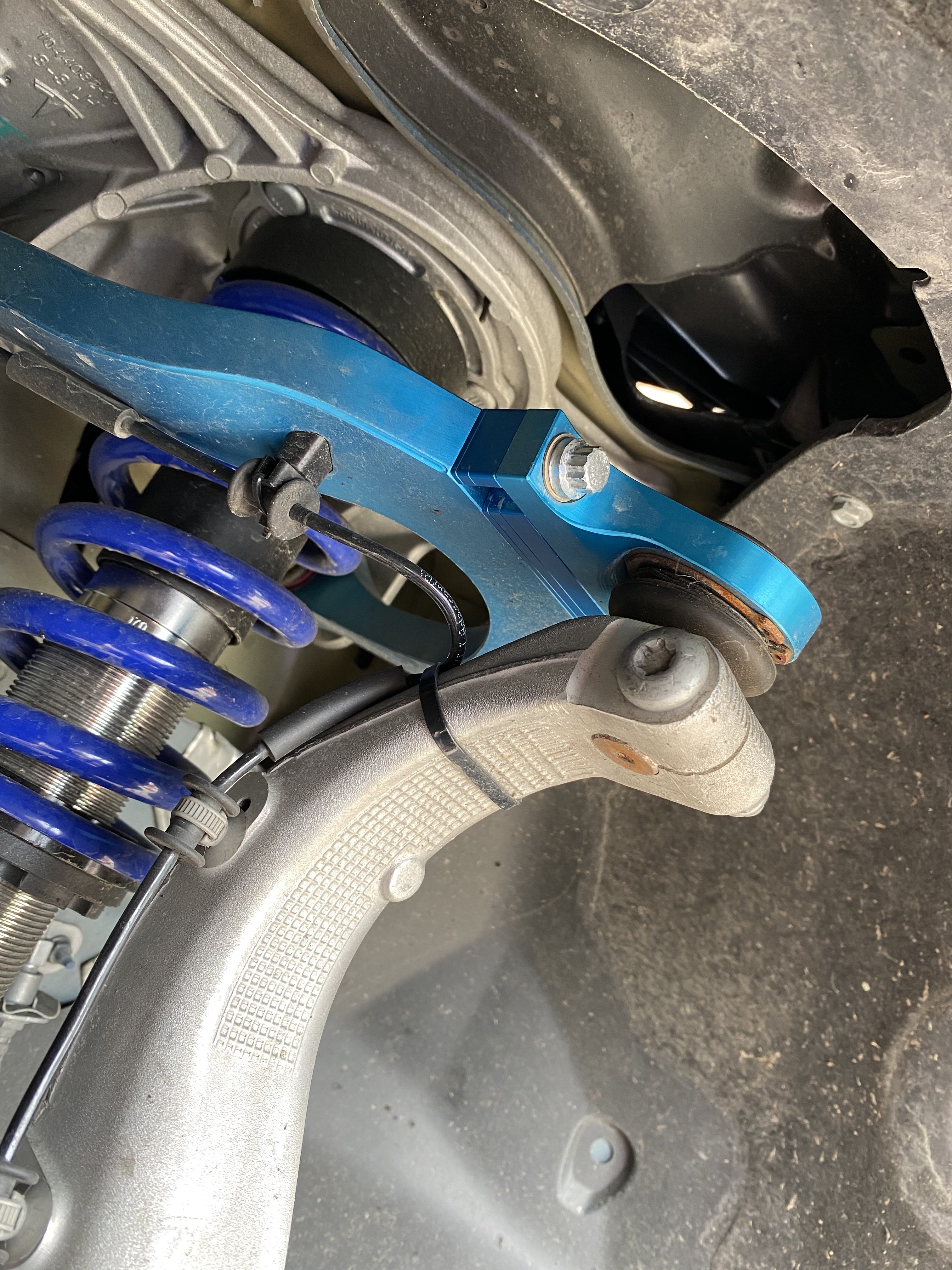 Oh hi… I happen to own a Model 3 Performance on proper suspension. Mountain Pass Performance coilovers (made by KW) and billet front upper control arms that get me -3° front camber, still on factory sway bars as I generally am not a fan of big bars on the street and this is my daily driver. On my AutoX setup (19x10 wheels wrapped in 265/35/19 RE71Rs) this car is an absolute monster and it has been fastest car on the property at 4 of our first 6 AutoCross events this season.]