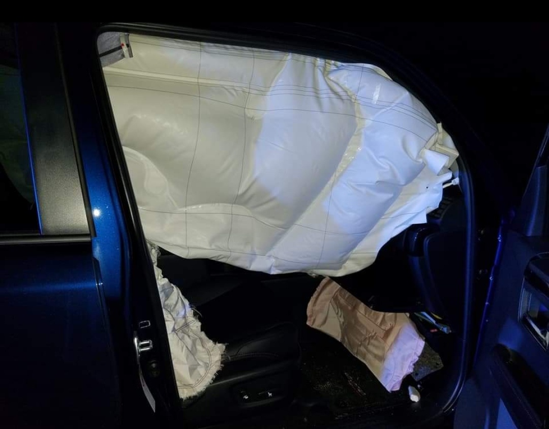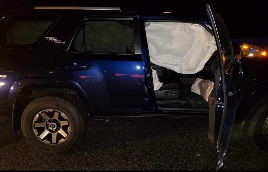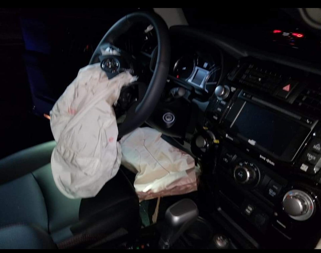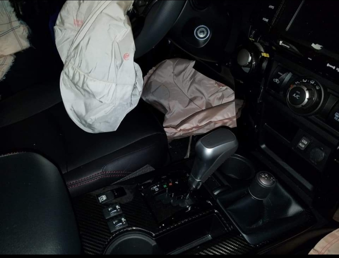 Dawns on me "Kill the engine Scott" so I do. Oddly too - I hit the Hazards. And then I more or less realized I was using the brand new Toyota key fob to try and stab the airbag to deflate it when my brain realized I had a small pocket knife on the keychain as well.