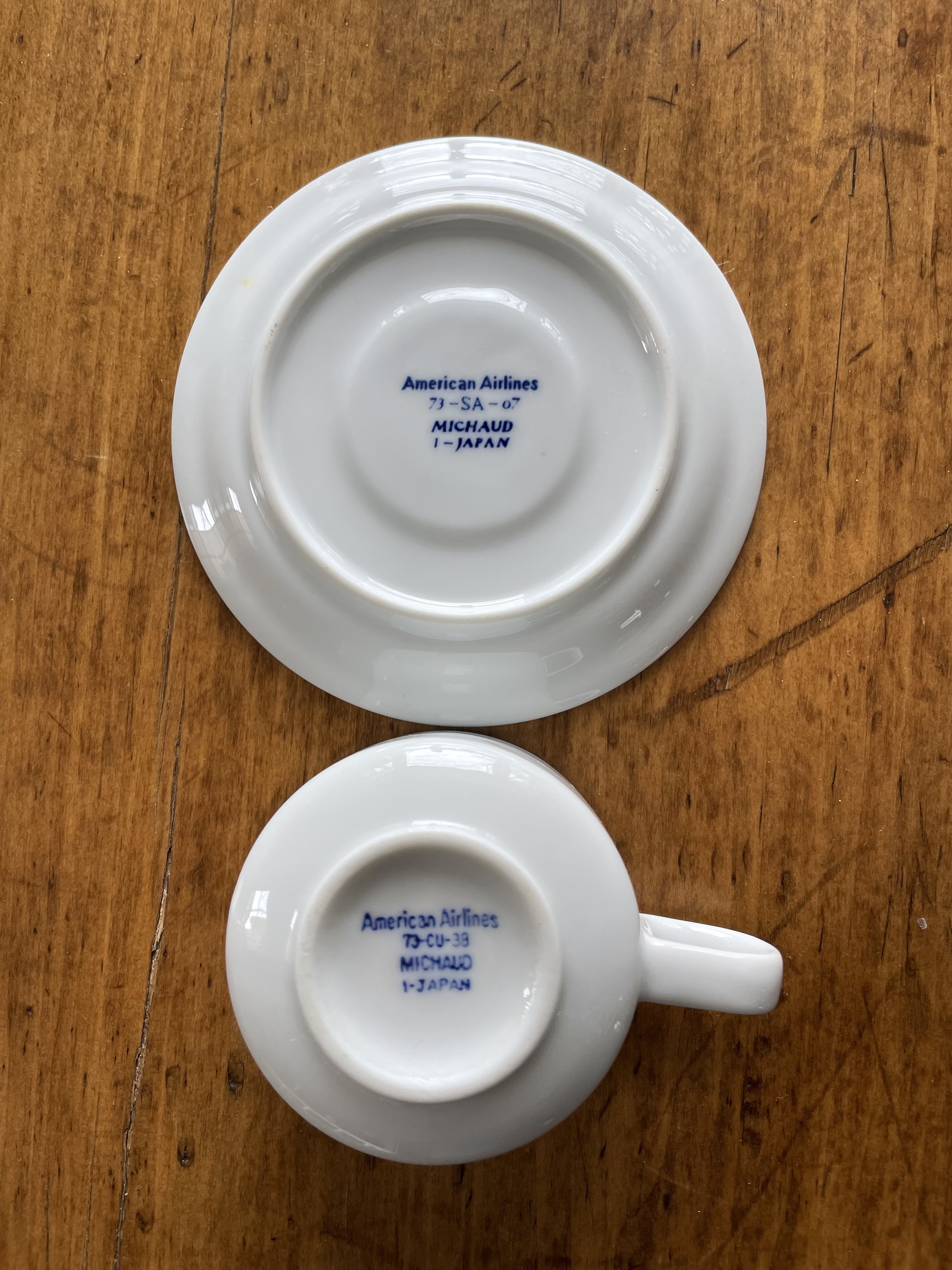 Yesterday my wife and I visited a local thrift store and she found a set of four cups and saucers marked « American Airlines ». Not super early I suppose, since old movies always featured BOAC or TWA but special nonetheless. Were these souvenirs or were they used in flight? The watch connection to this thread came as I was drawn to a box of shiny things and found another Rolex spoon - my third.