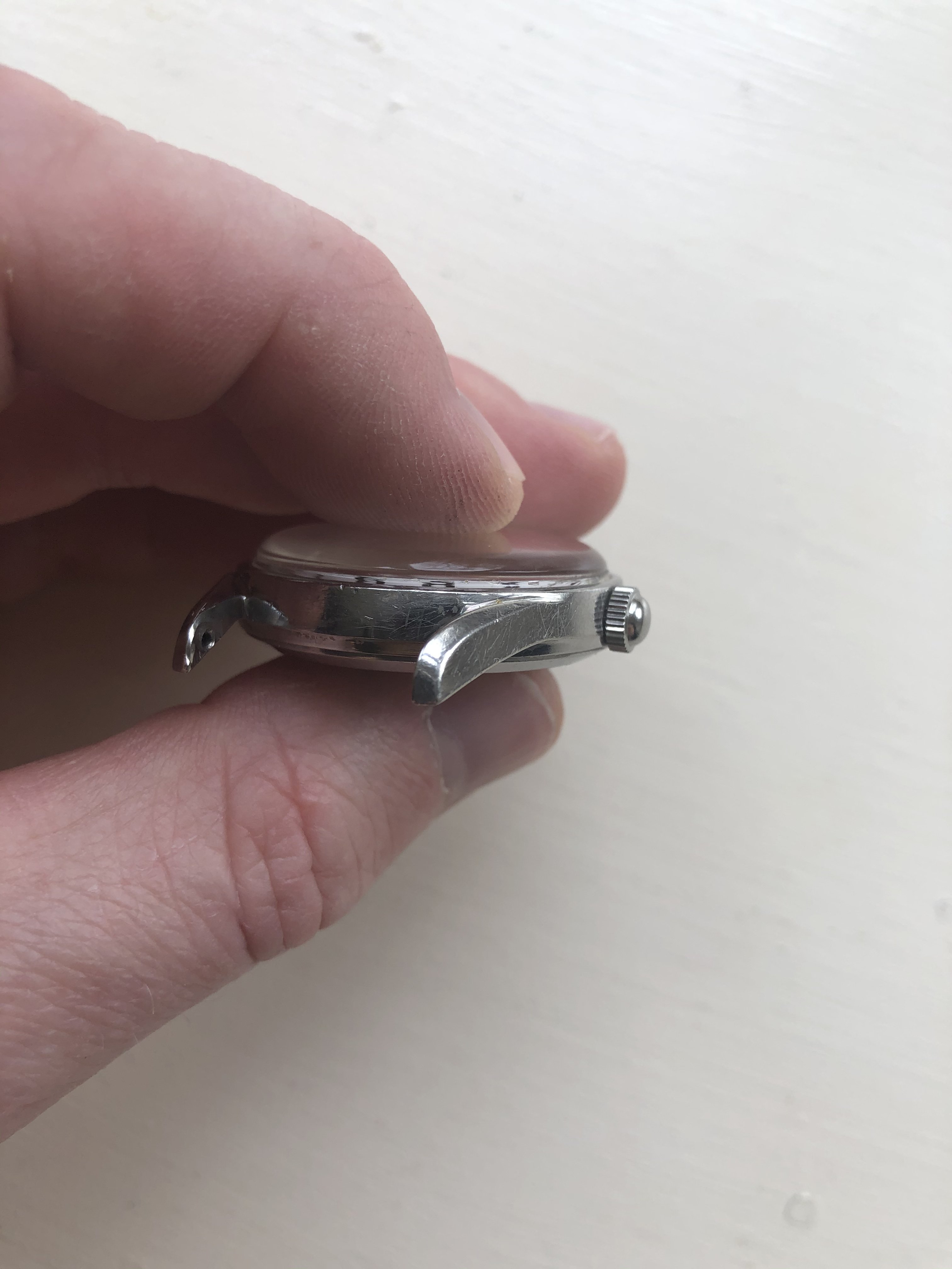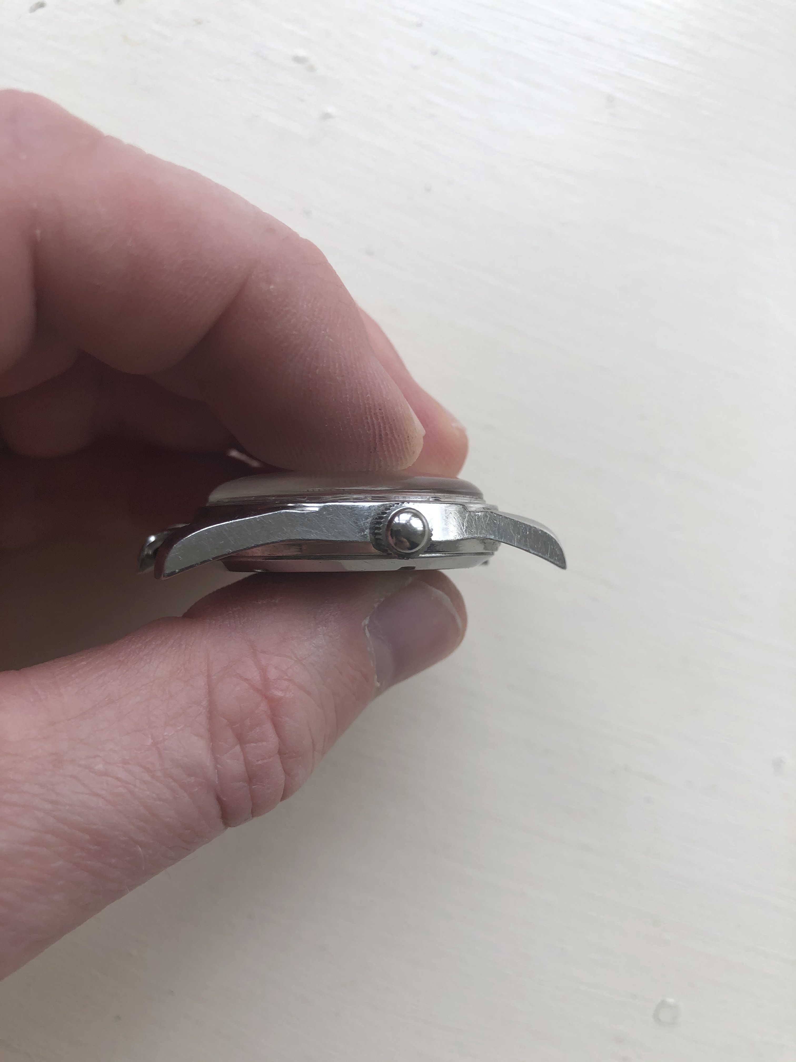 Dial: Original in very good condition with no chips or loss of paint. Two tiny black dots that be able to cleaned off, but I haven’t tried.