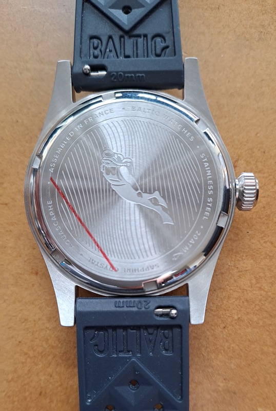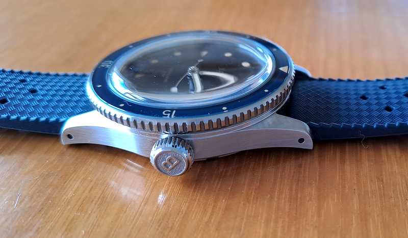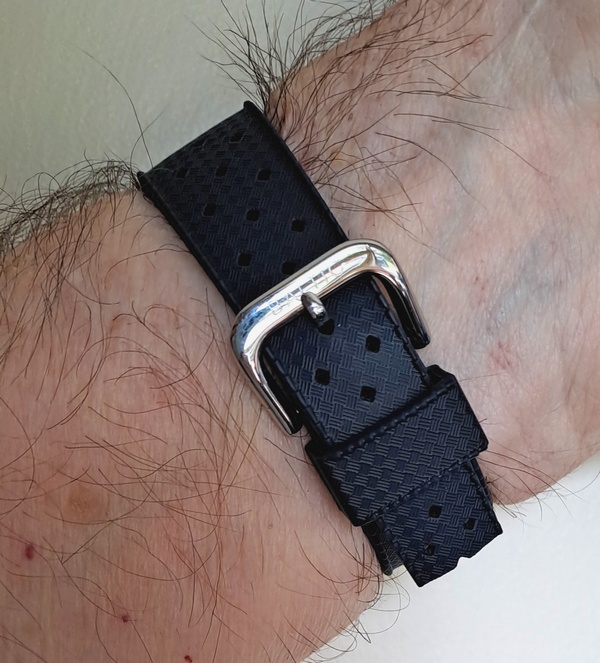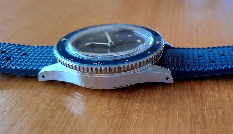 Eagle eyes will have noticed the shortened watchband, cut so as to fit my 6,3/4” wrist, so that the end of the strap doesn’t stick out - a pet peeve of mine. The watch has holes in the lugs so will easily accept other bands or bracelets. Quick release bands work really well with this.