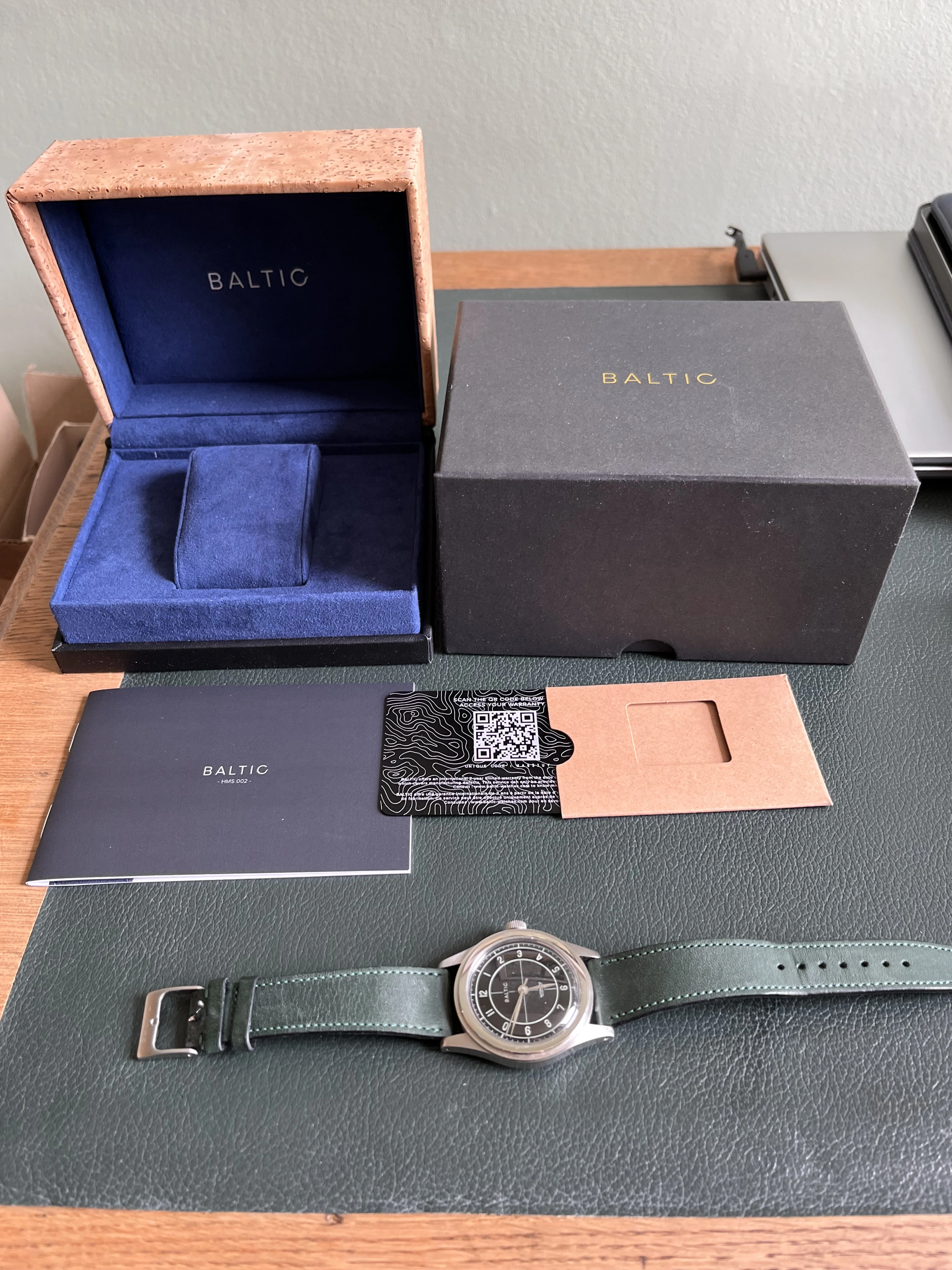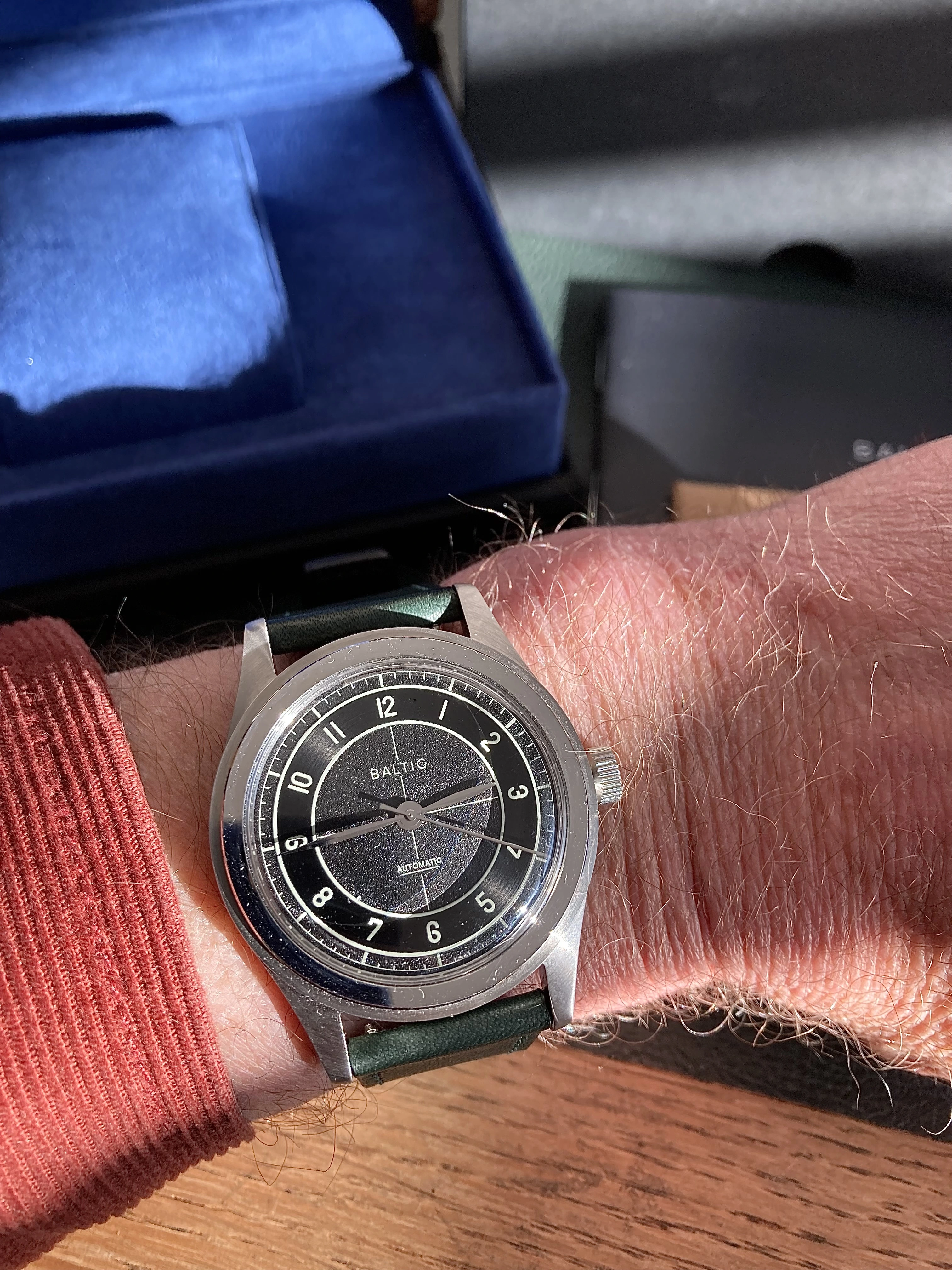Although I bought the watch with the original green leather strap, I generally wore it on different straps and I also bought a new BoR bracelet from Baltic, which I’m including in the price.