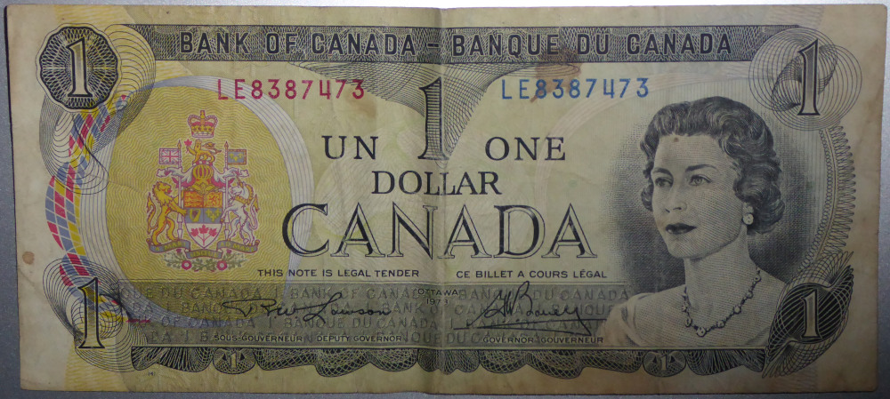 ·Does anyone collect banknotes? I have recently found a Canadian dollar bill which I would post to anyone who wants it. Condition is best described as "grubby" and I doubt it's worth more than CDN$1.00 so I won't bother insuring it, if it's lost in transit so be it. My visits to Canada were all between 1974 and 1980 and the note was phased out for a coin (a loonie) late '70s. I might also have some loonie coins because I always left any country with some change ready for the next visit, but of course all that is "in storage somewhere" (TM).