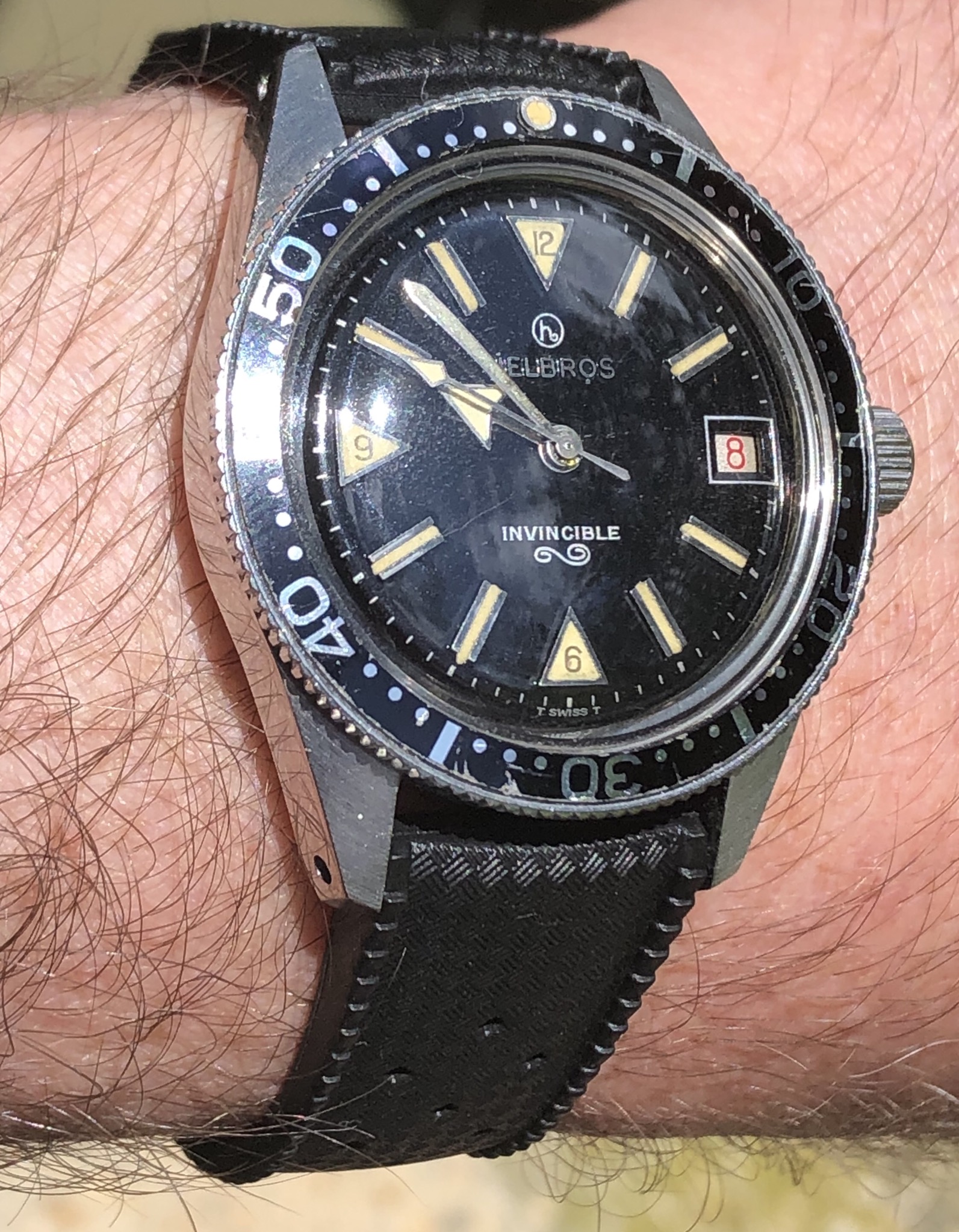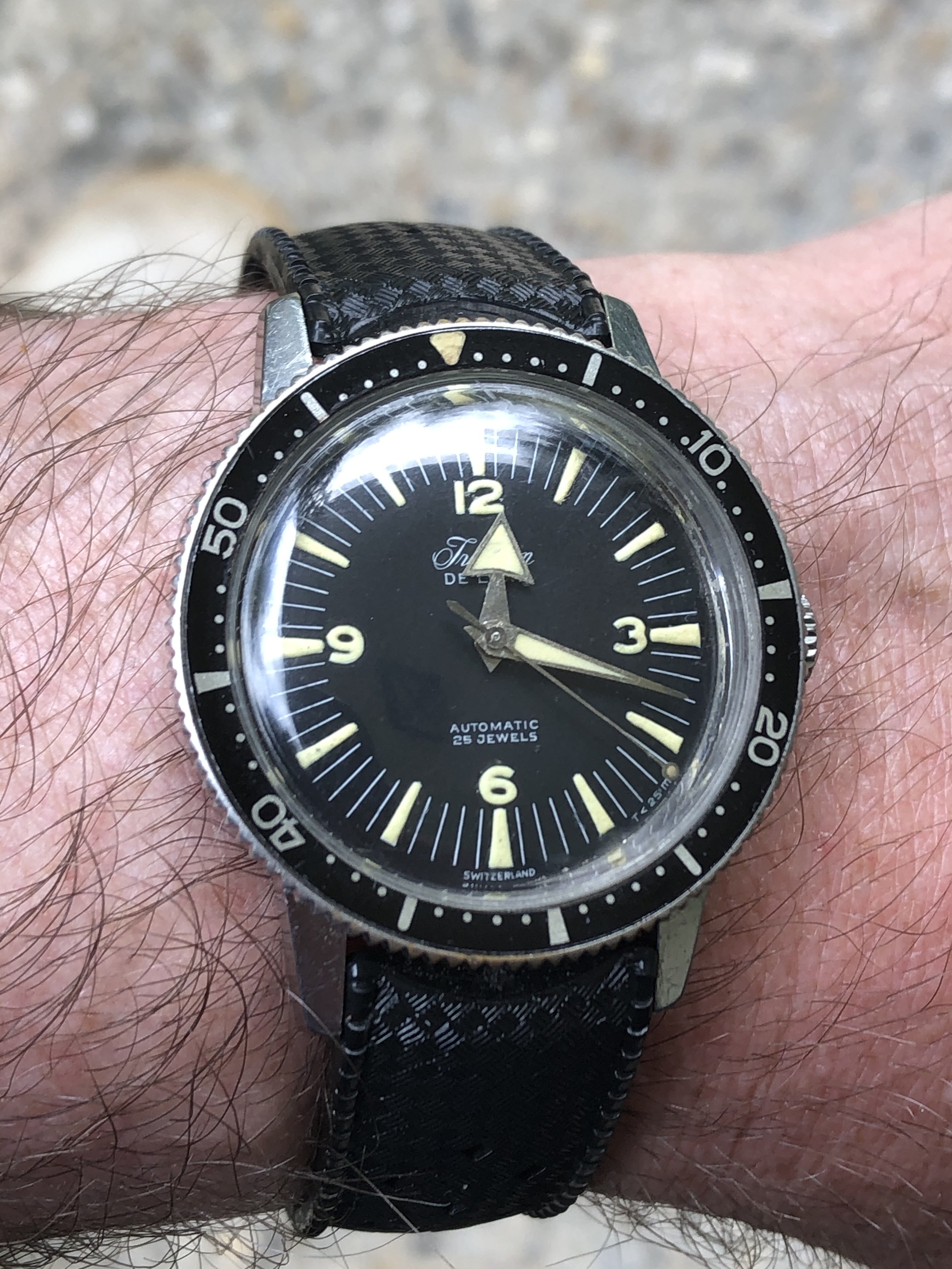 1944 USN Elgin, Underwater Demolition Team watch. Purchased from a watchmaker when the guy who bought it in refused to pay his bill and left it sitting at his shop for several months. I got it for the cost of the repair.