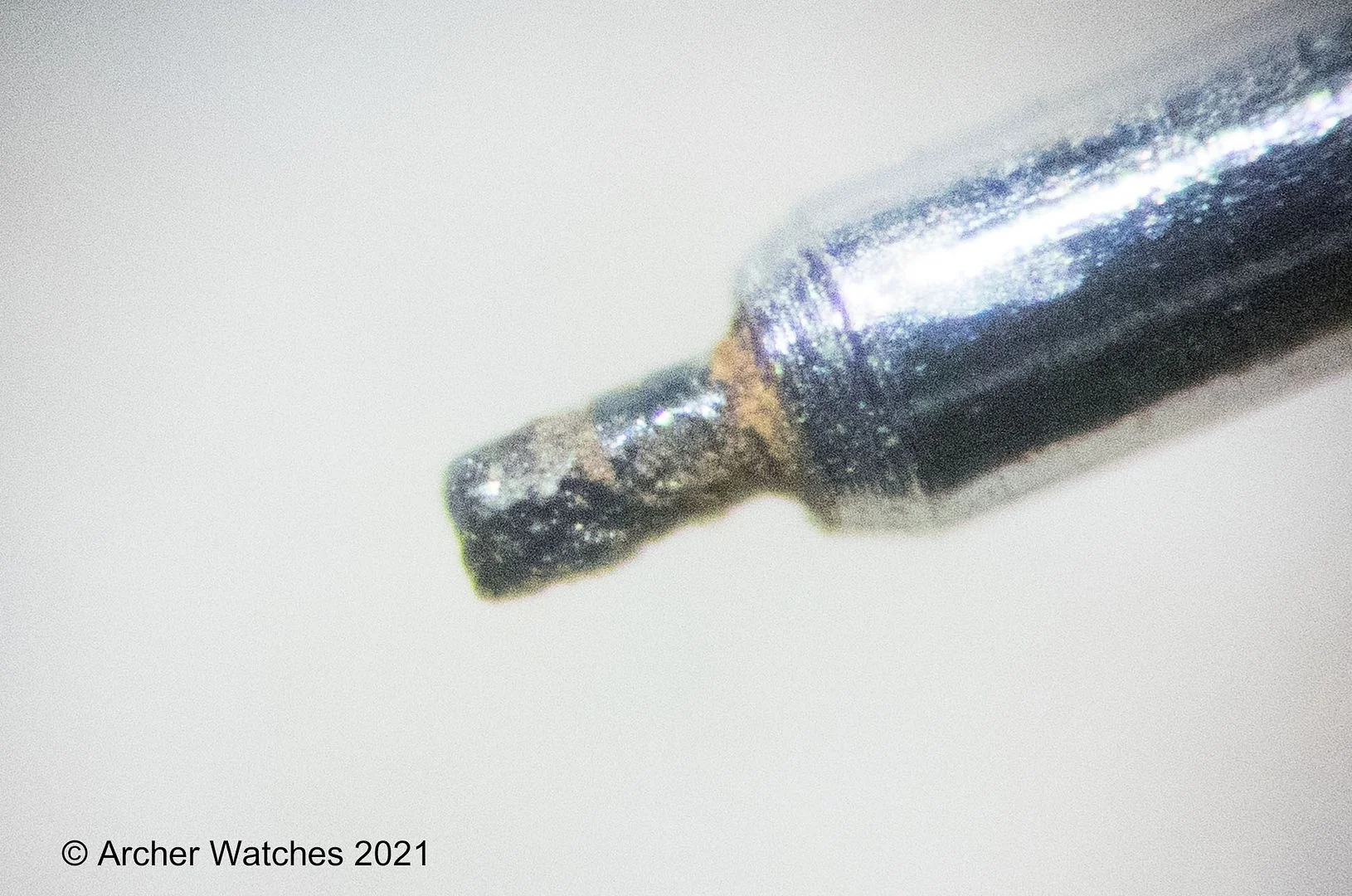 Even if a part is readily available, I will sometime repair it if it makes economic sense. This is a worn post on a 7750 based Omega movement: