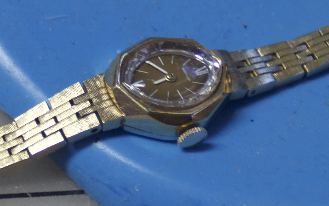 So what is in this thing. When we pop it open it is evident this was serviced a few times as there are marks inside the case. The case is also a nice Ross case. (Would like to know more about Ross. they also cased Omega watches.) The clasp is marked japan, so is probably a replacement as the band was shortened at some point.