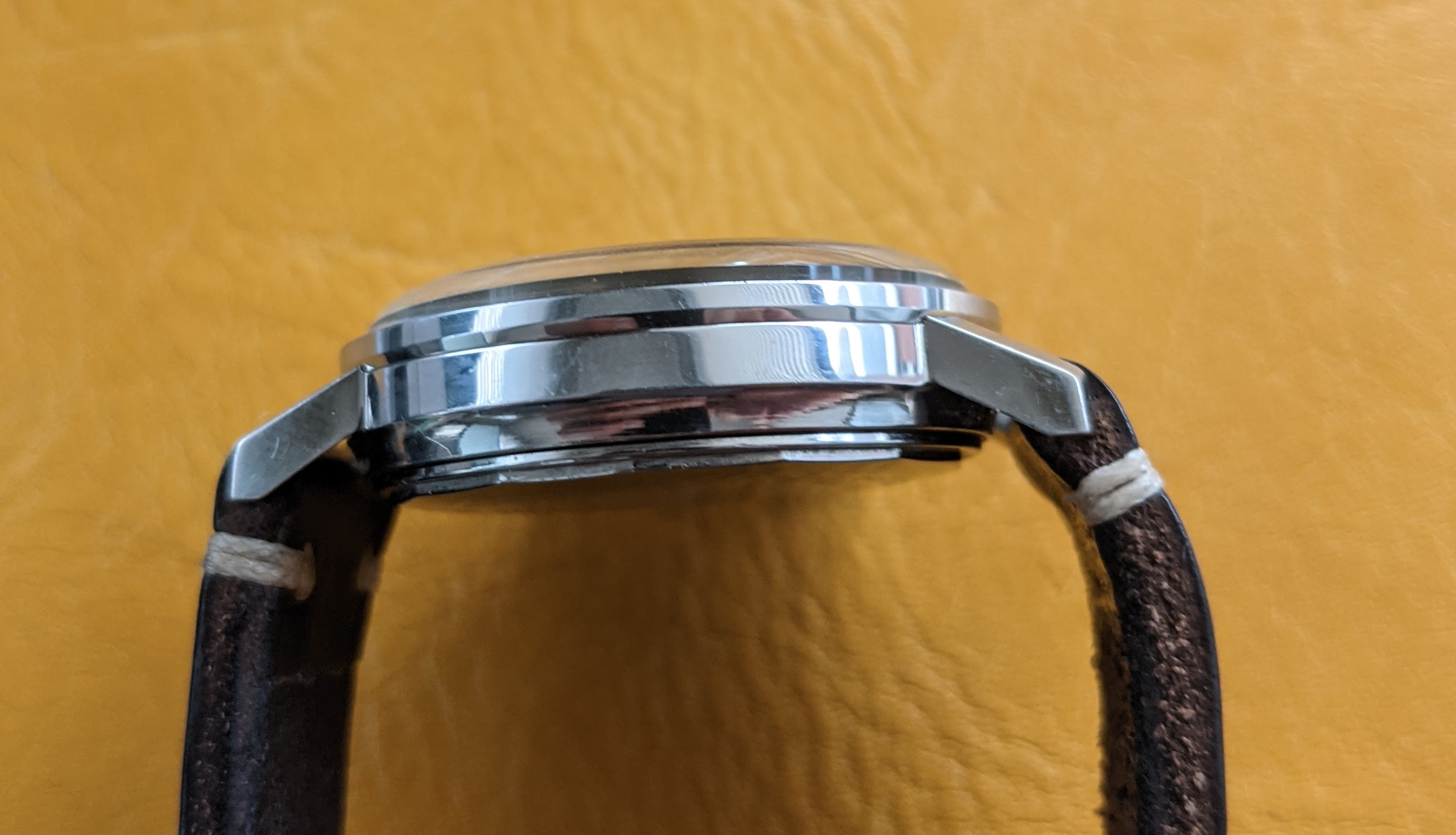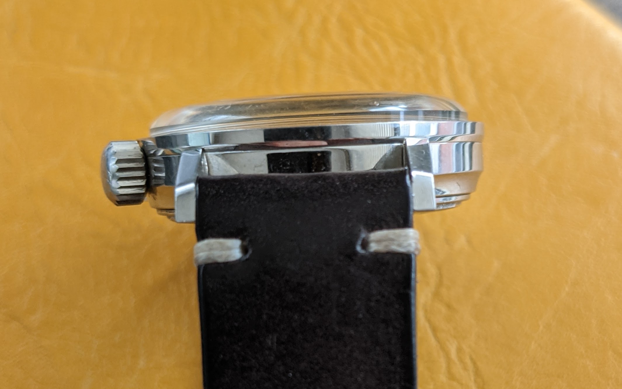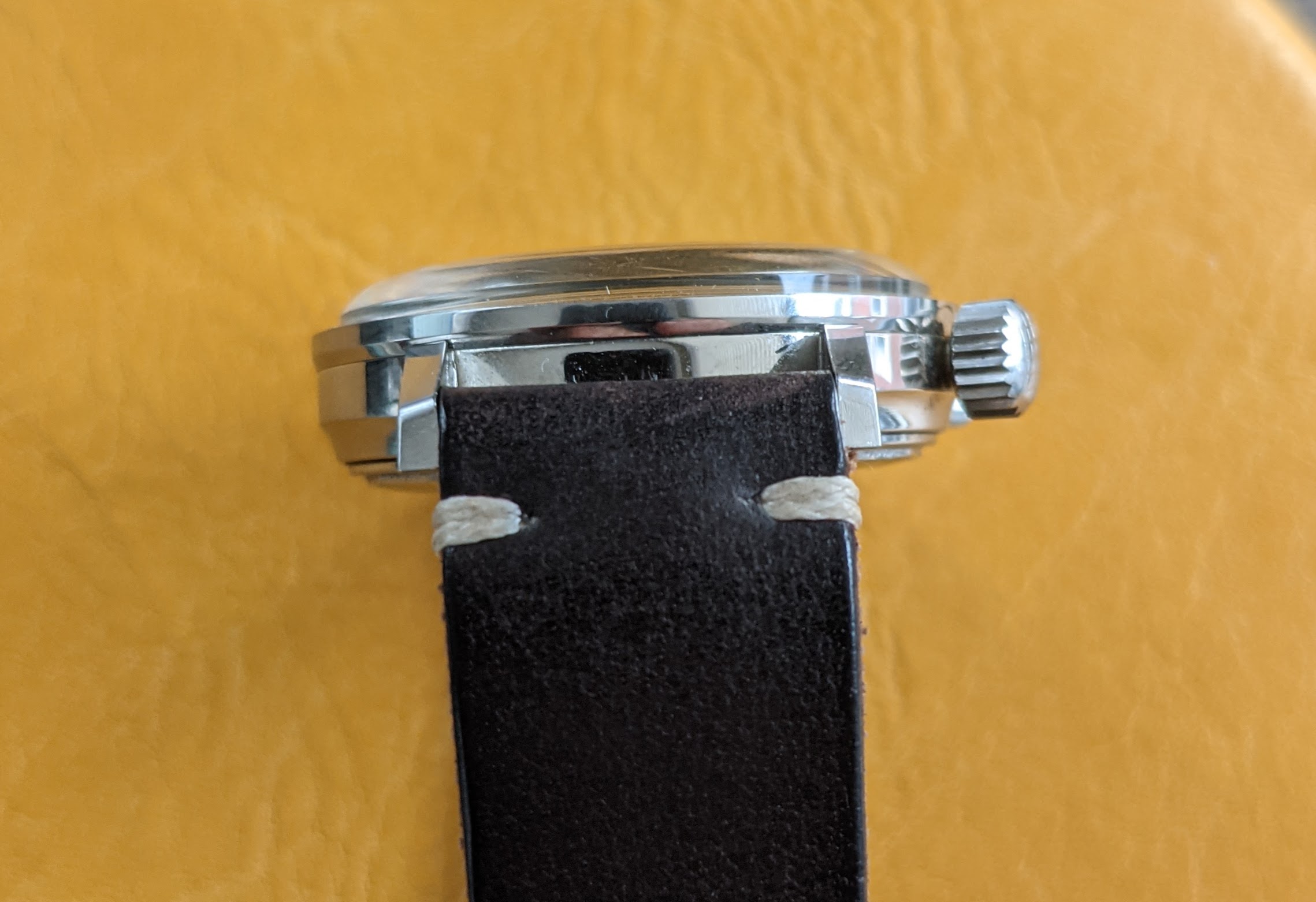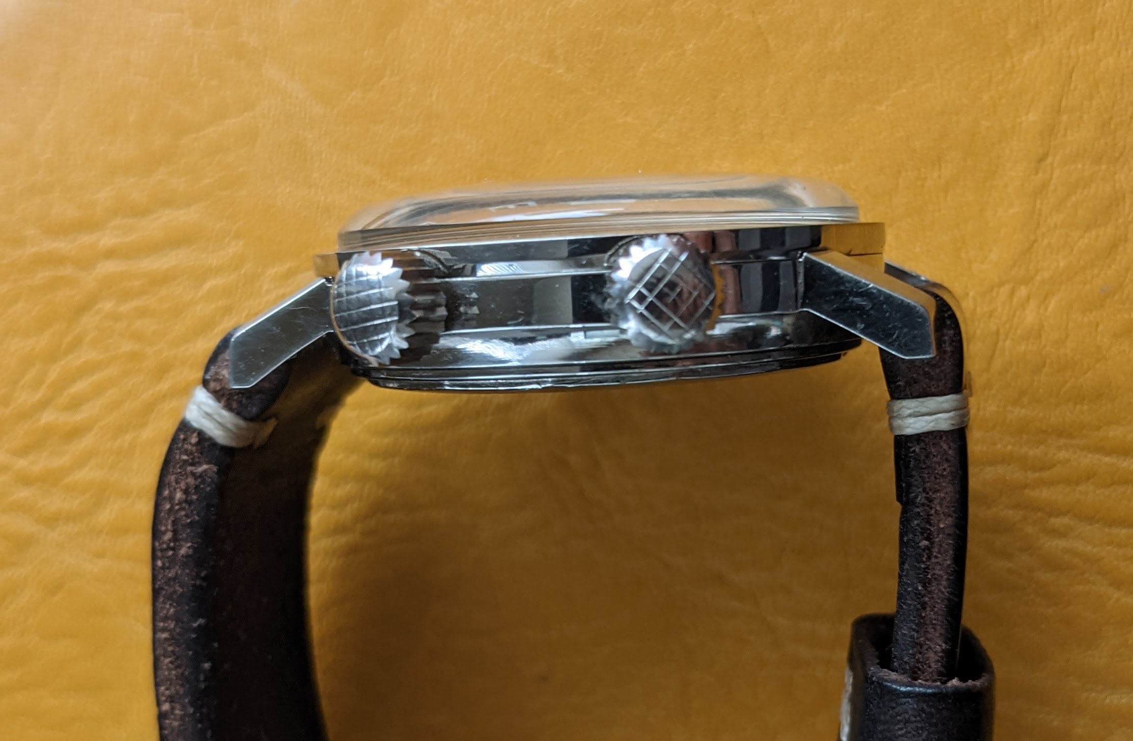 Case: 36 mm stainless steel, screwback Compressor, signed Gycine & Co. which is in great condition. You will see some swirl marks, but mainly on the caseback. Lug width is 18mm.