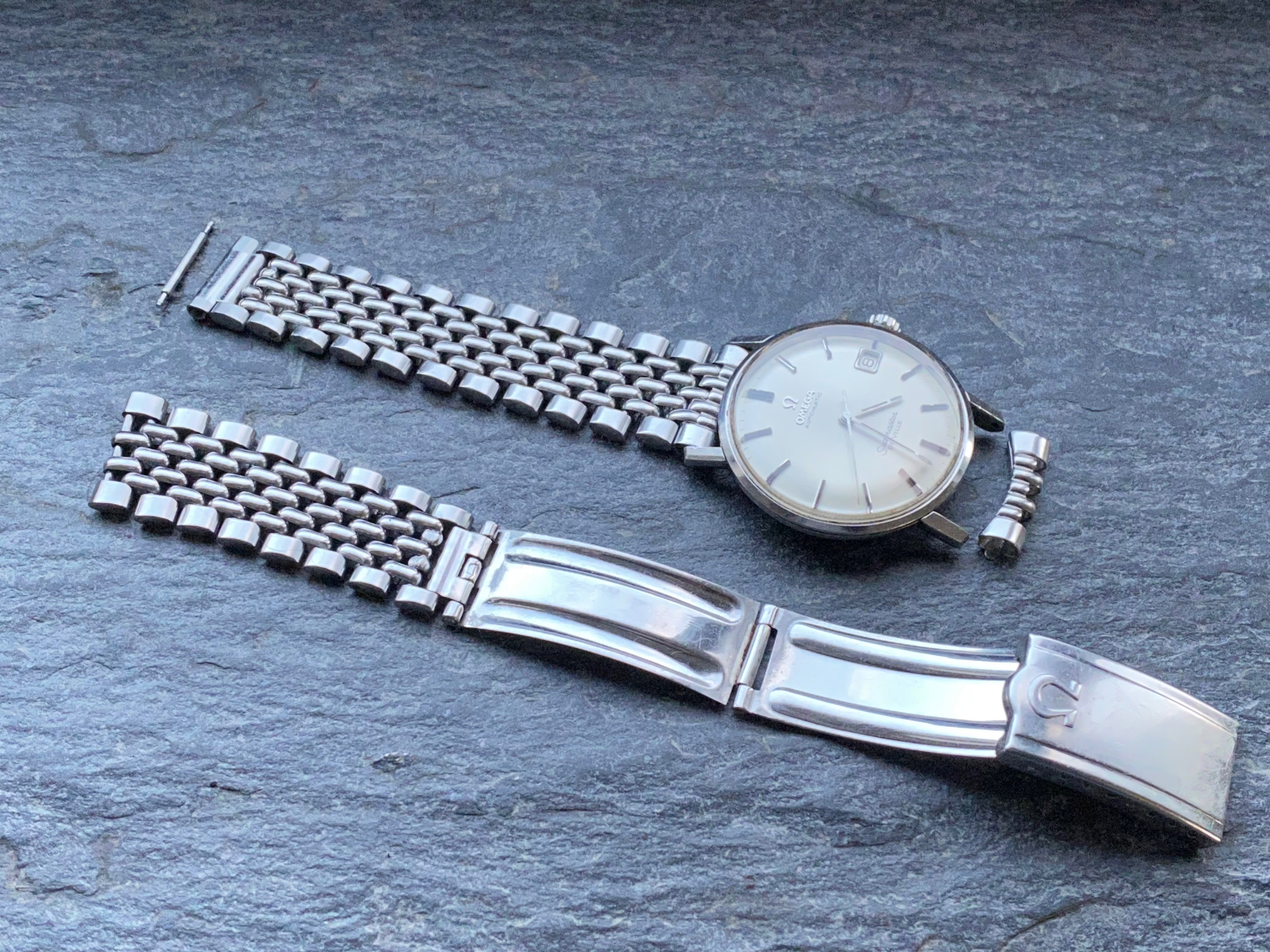unfortunately i destroyed the stainless bracelet of my vintage Seamster DeVille. It is stamped No.12 Omega 1502. Does anybody know where to get replacement beads or a complete bracelet. I did some research but only found several "reissues" on ebay. I'd like to keep it in original state as my father handed the watch down to me several years ago.