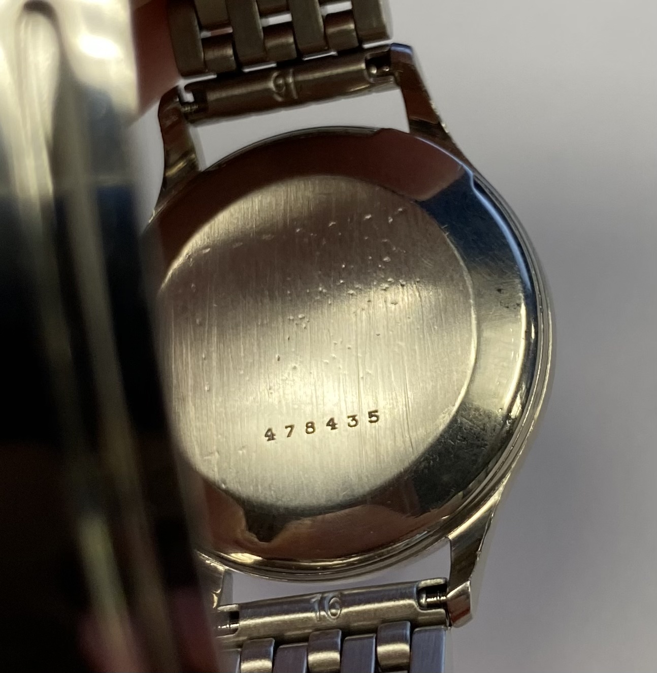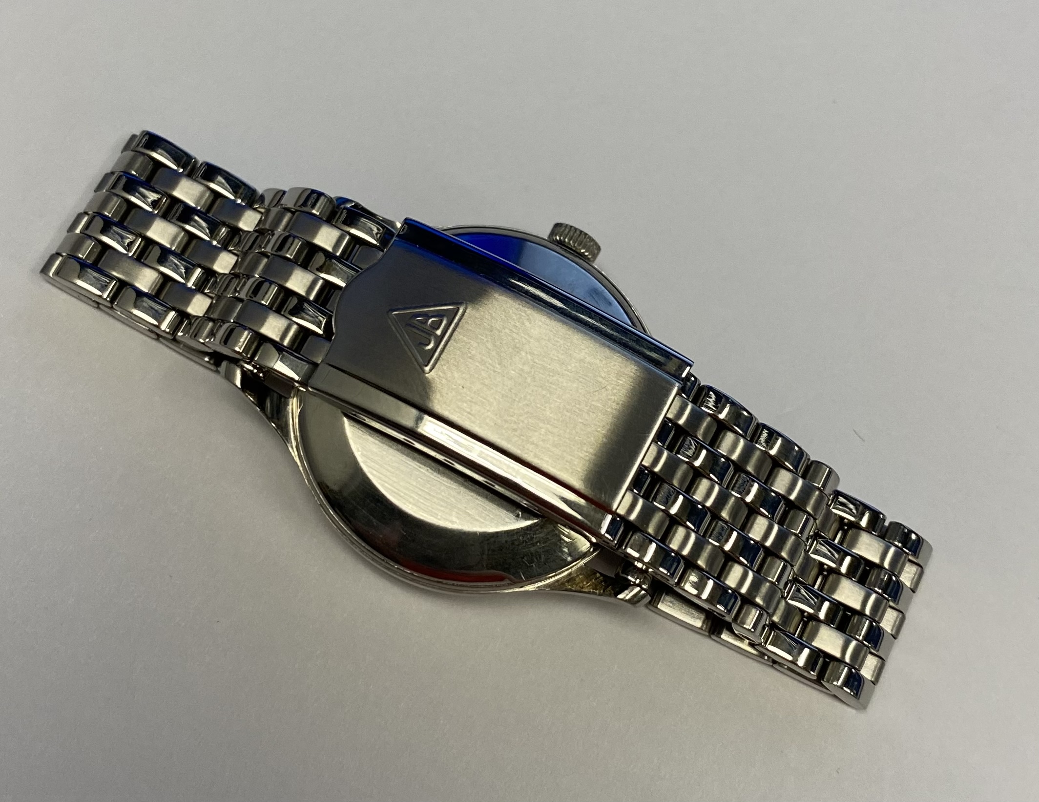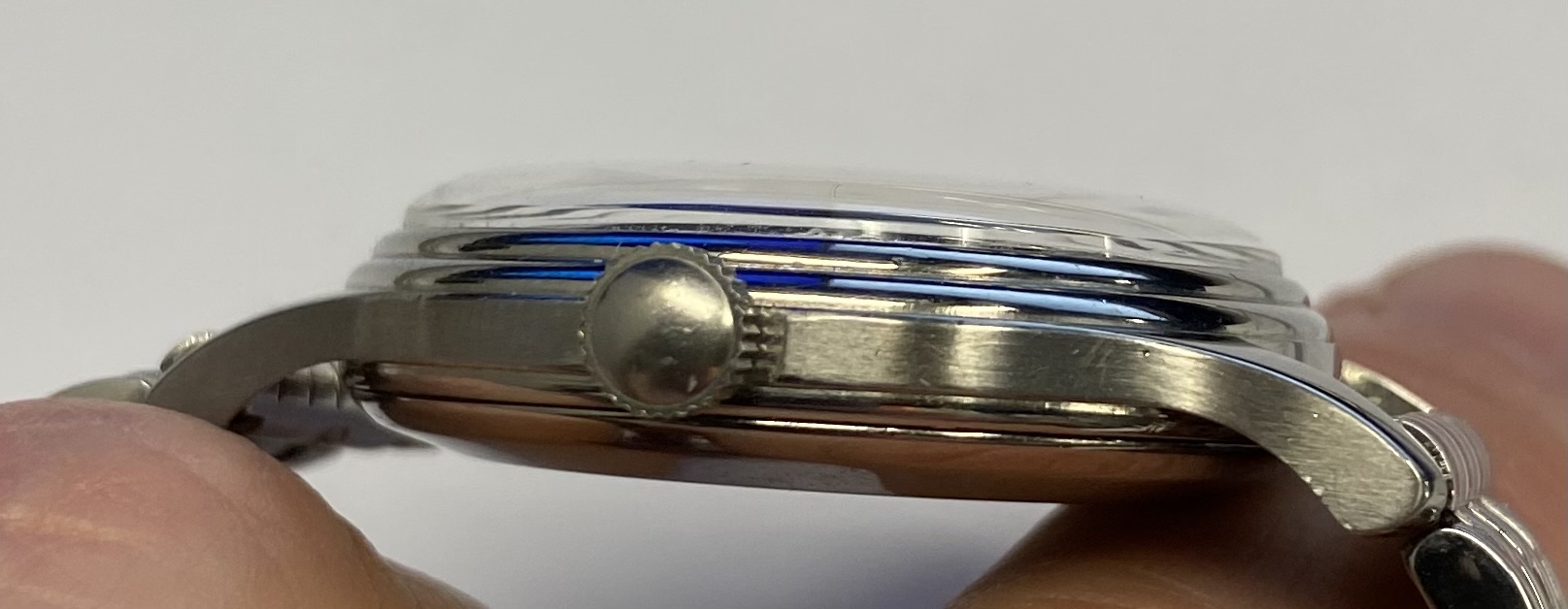 The movement is serviced (I can provide the details to a buyer) and keeps great time. All original dial and I believe the crown to be original as well (unsigned).