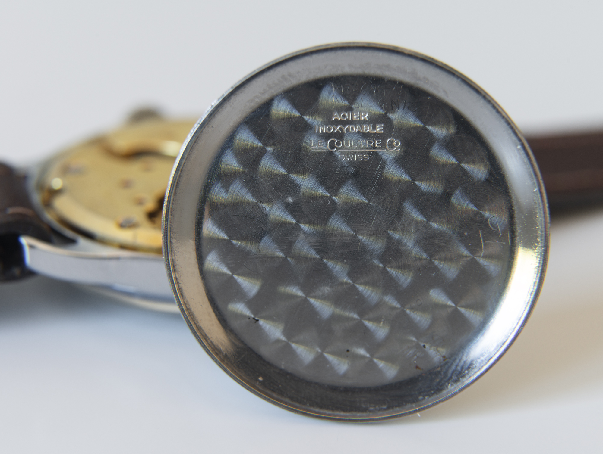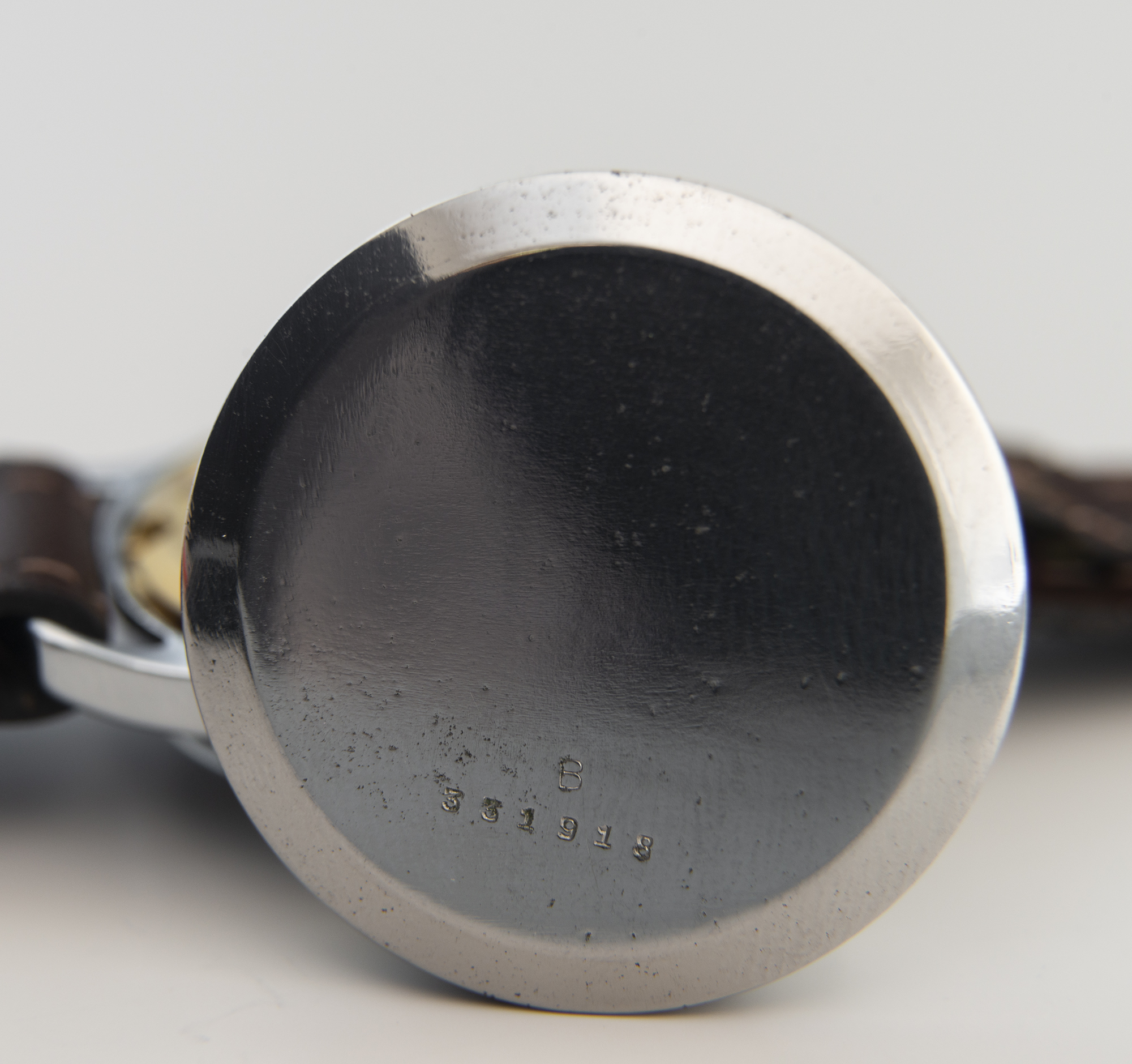 The case is chrome plated with minimal wear and measures just over 30mm. The caseback is stainless steel and has a serial number stamped on the back along with the letter B which is correct for the chrome plated case.