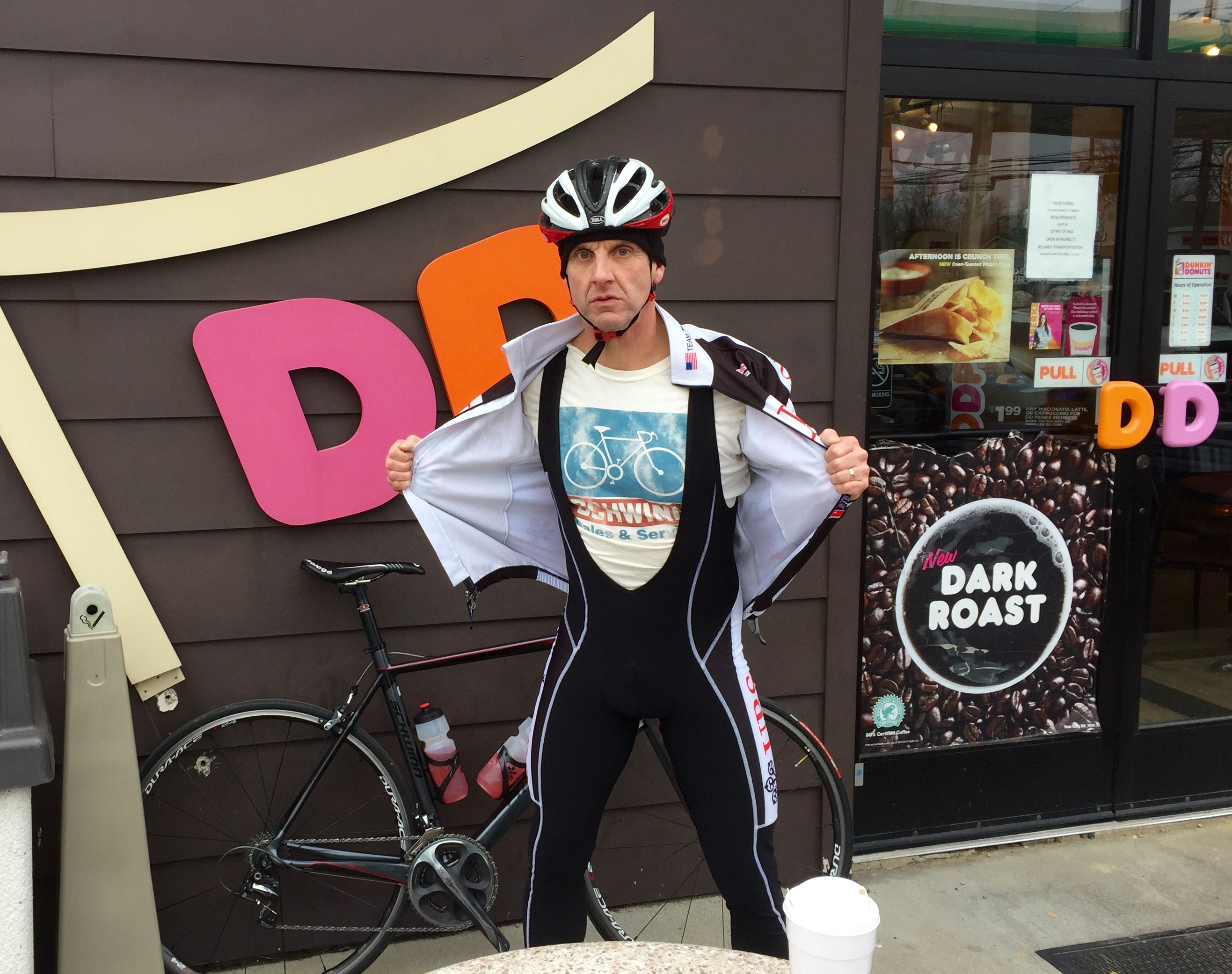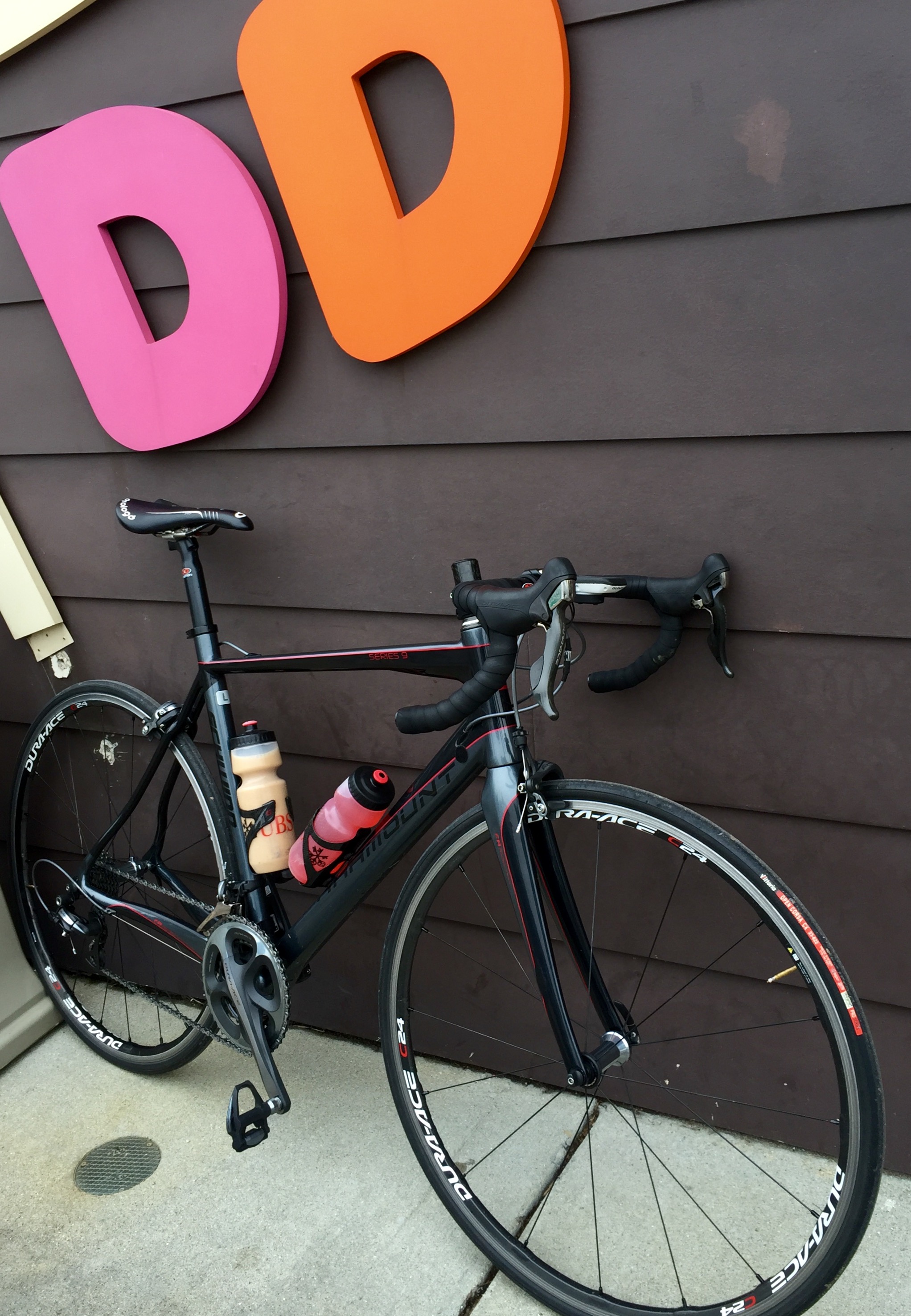 Did a team training ride today...we stopped at Dunkin' for a piss break...YAY! Rode my trusty '11 Schwinn Paramount Series 9 road race bike...and of course I wore my Schwinn Sales & Service t-shirt. We did about 50 miles with some good pace lining, climbs and sprint signs...