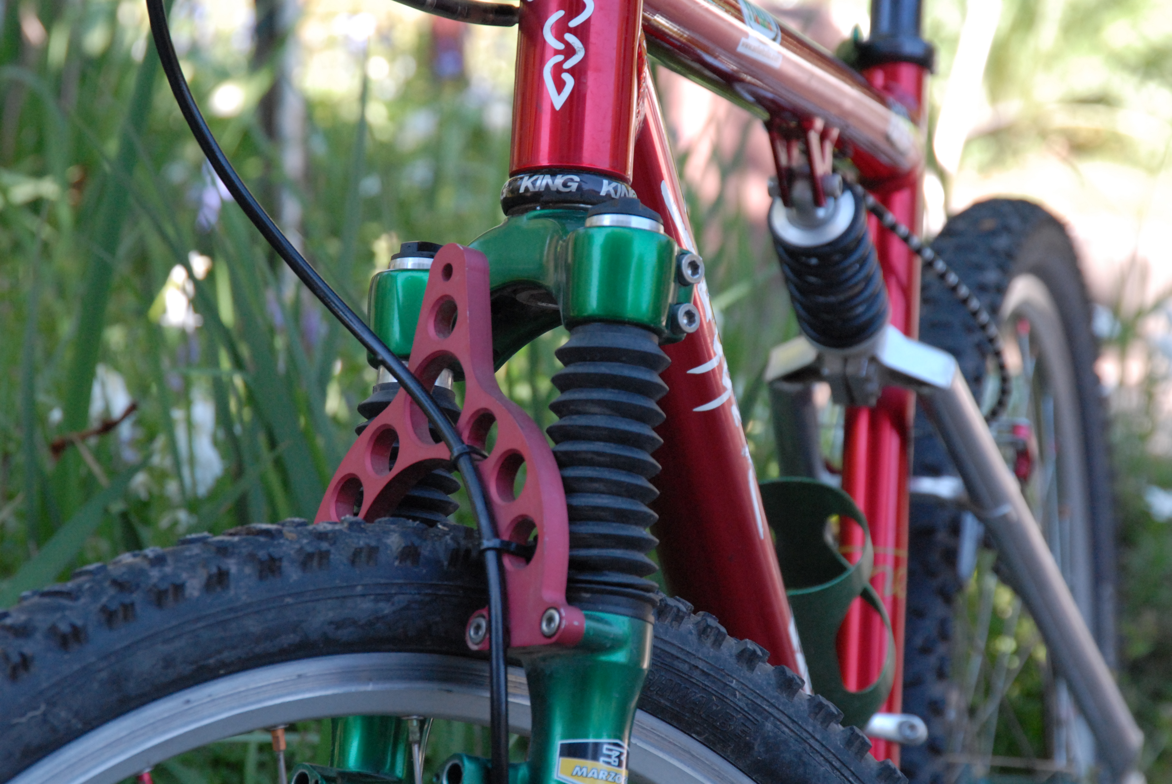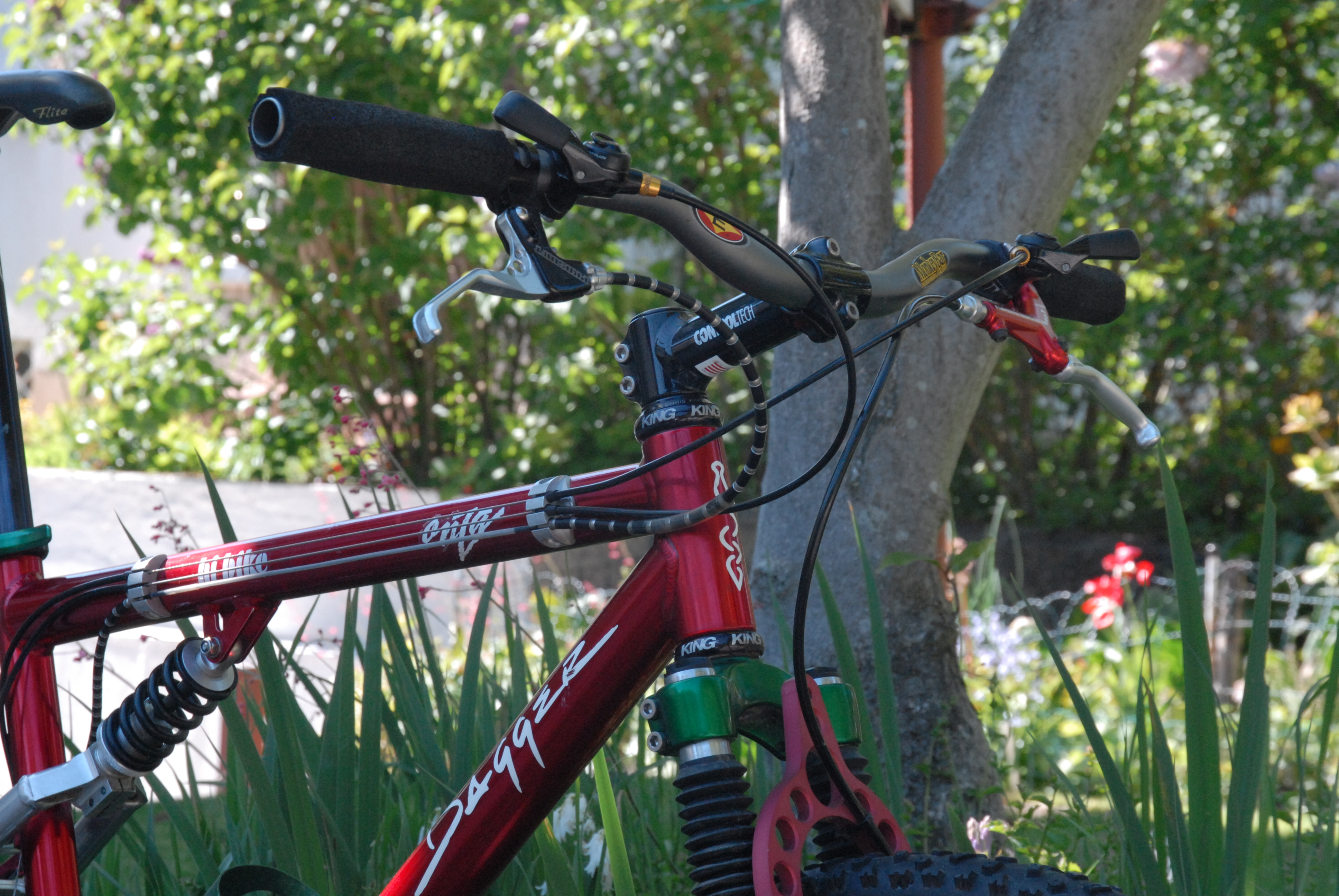 A 10V conversion to downtube shifters. Fiddled with some parts that I had to be able to have 10V indexed shifting mated to the old Syncro II choice of going friction if needed.
