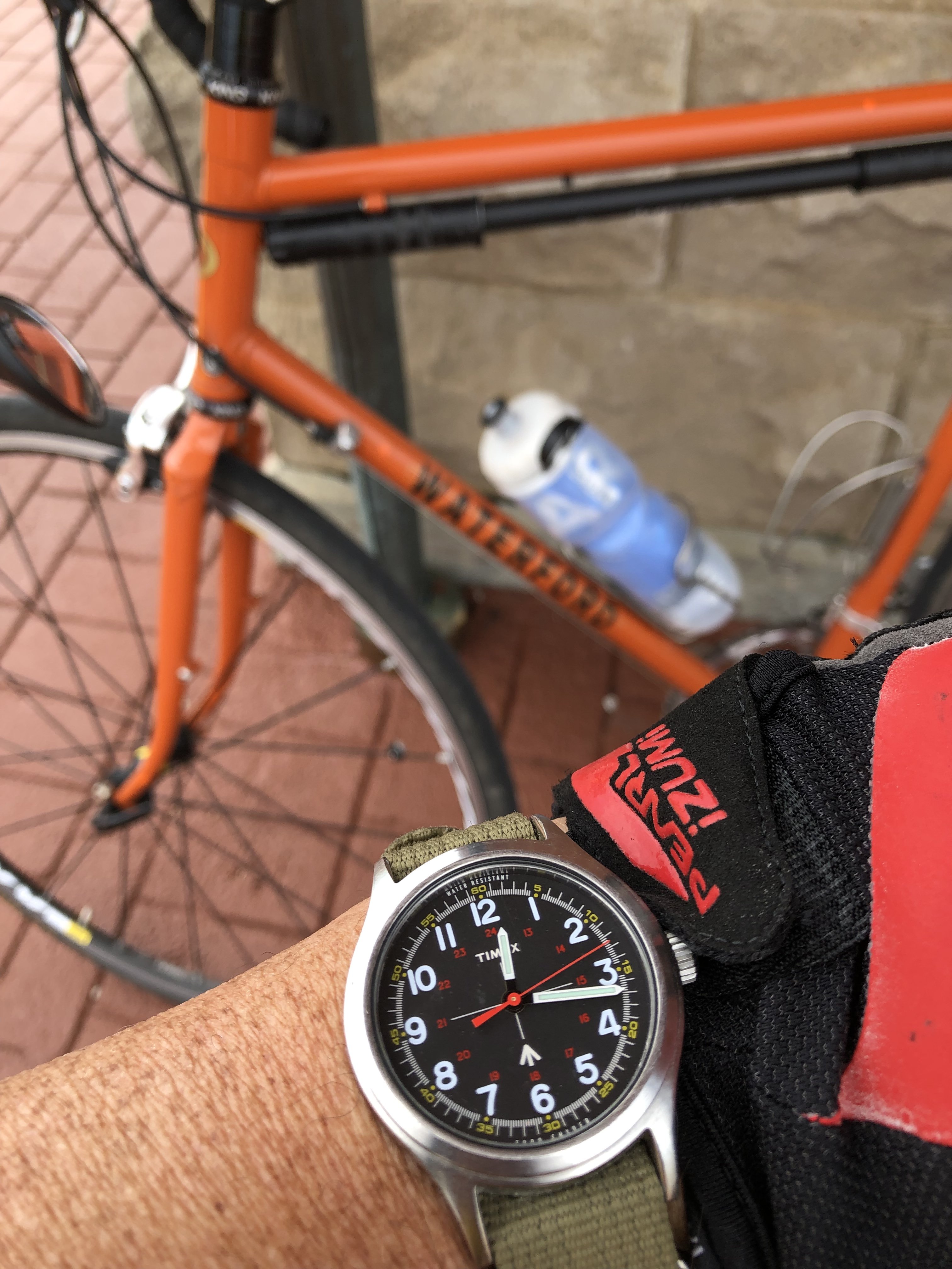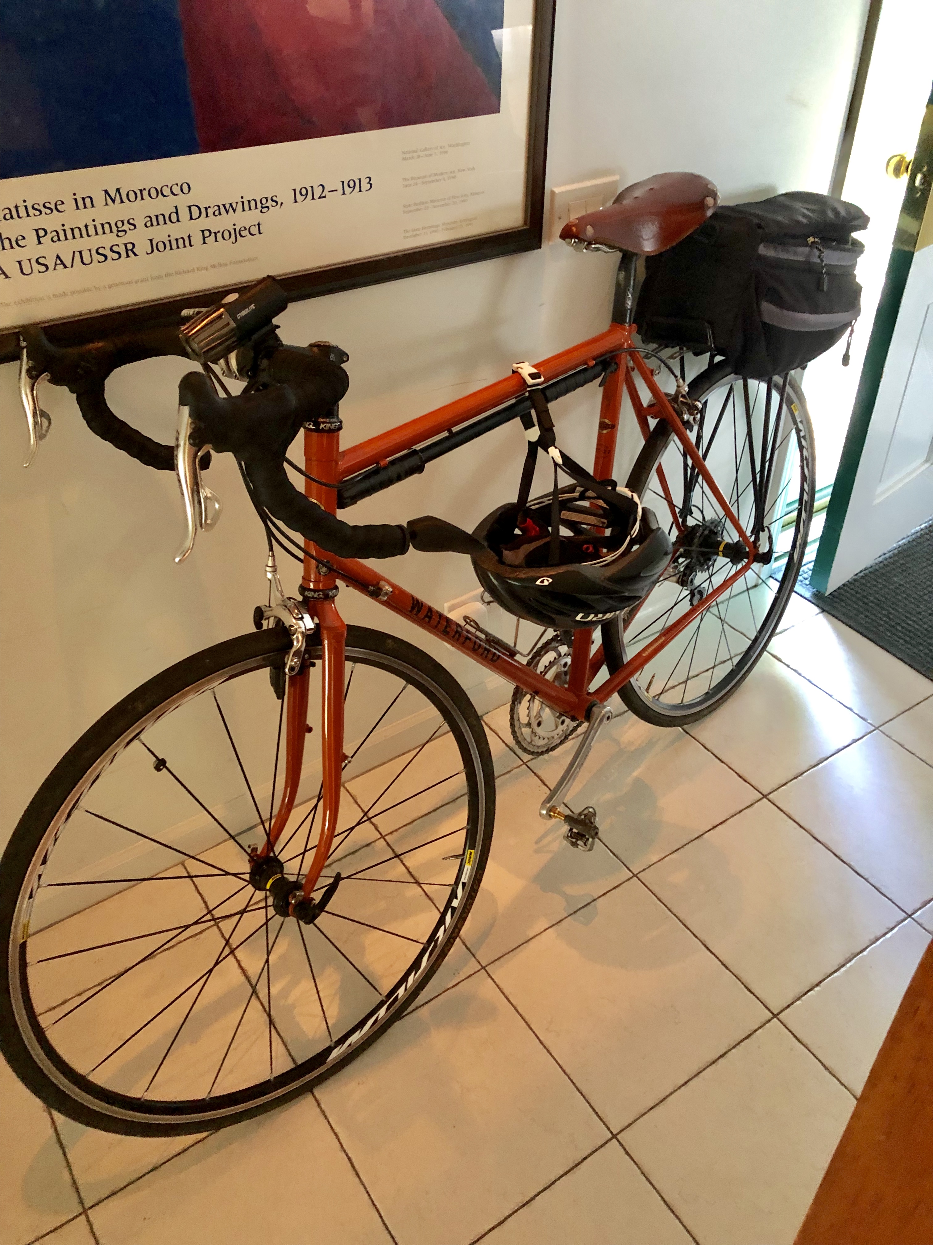 Old school for sure but .....Custom build circa 2006. RST22..Sport Touring ... Campi Centaur. Brooks saddle, Mavic Axium ( second set ) ... Waterford is a frame maker in Waterloo Wisconsin. Richard Schwinn is the owner. This is the former Paramount factory so they still service those. They build for a lot of folks like Shinola and Rivendell.