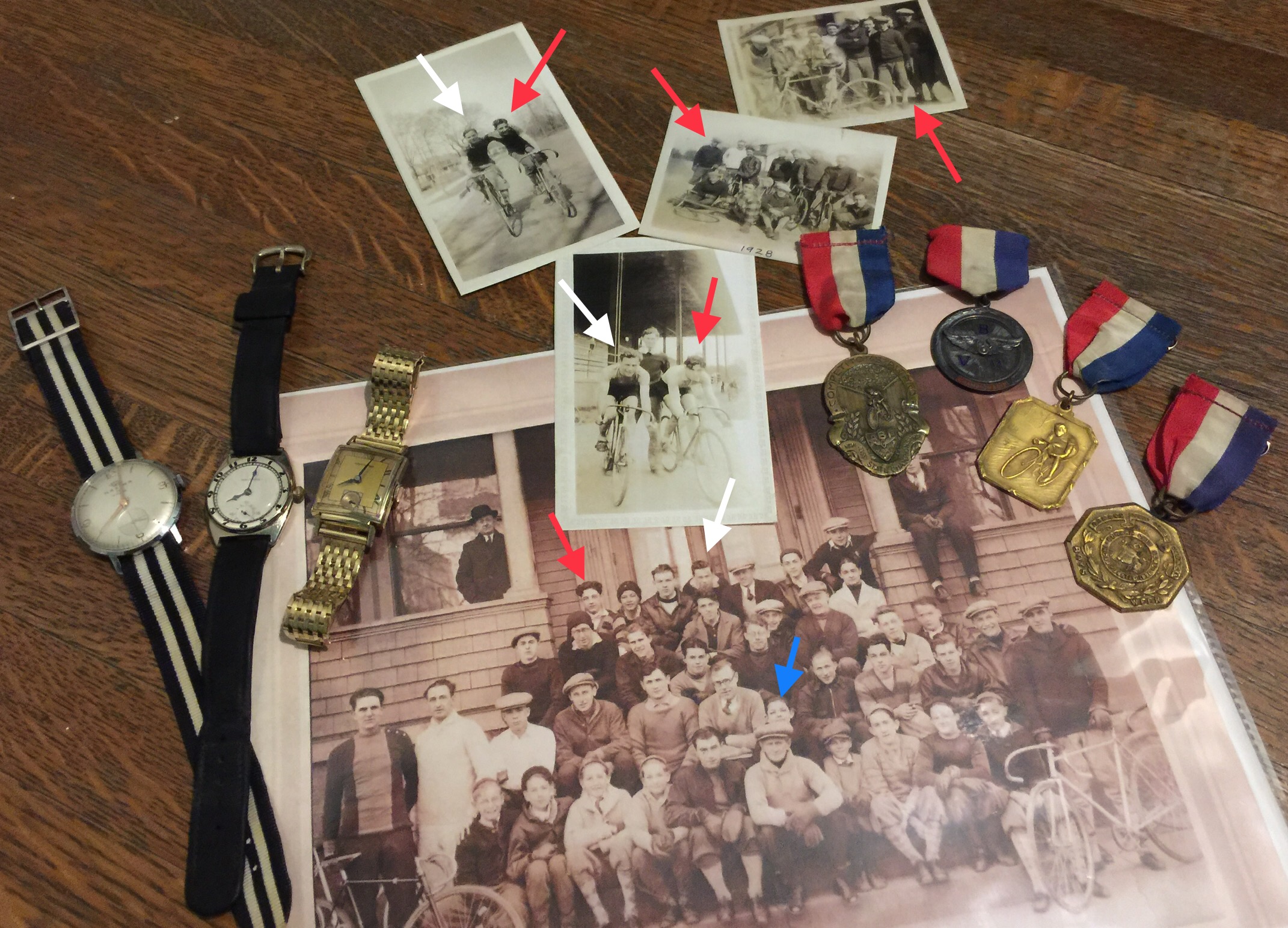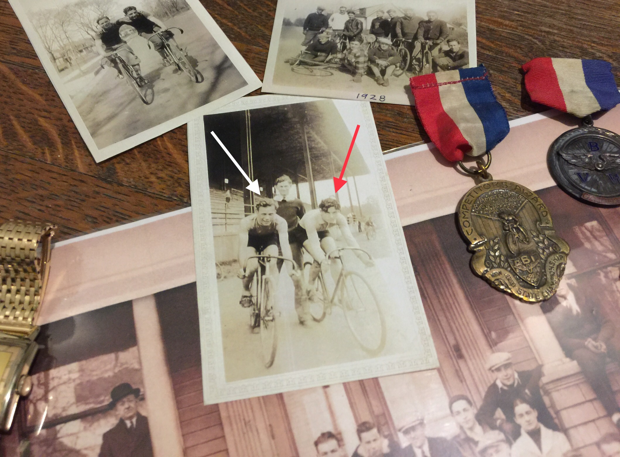No...but Dad did back in the 1920s and 1930s...see second pic below...I believe that’s the Newark (NJ) velodrome. Dad used to talk quite a bit about his track racing days when I was growing up. Dad is indicated by the red arrows, Uncle Bob (who became a pro track racer) is indicated by the white arrows and Uncle Harry is indicated by the blue arrow. They were on an amateur team/club called the Bay View Wheelmen out of Newark, NJ. Also, it came out at one of our family reunions in the 1980s that Dad was a “dirty racer”...win at all costs...you can see that his lower right leg is somewhat mangled in the second pic below...makes sense...you race dirty and you’re gonna get dirty. 😁