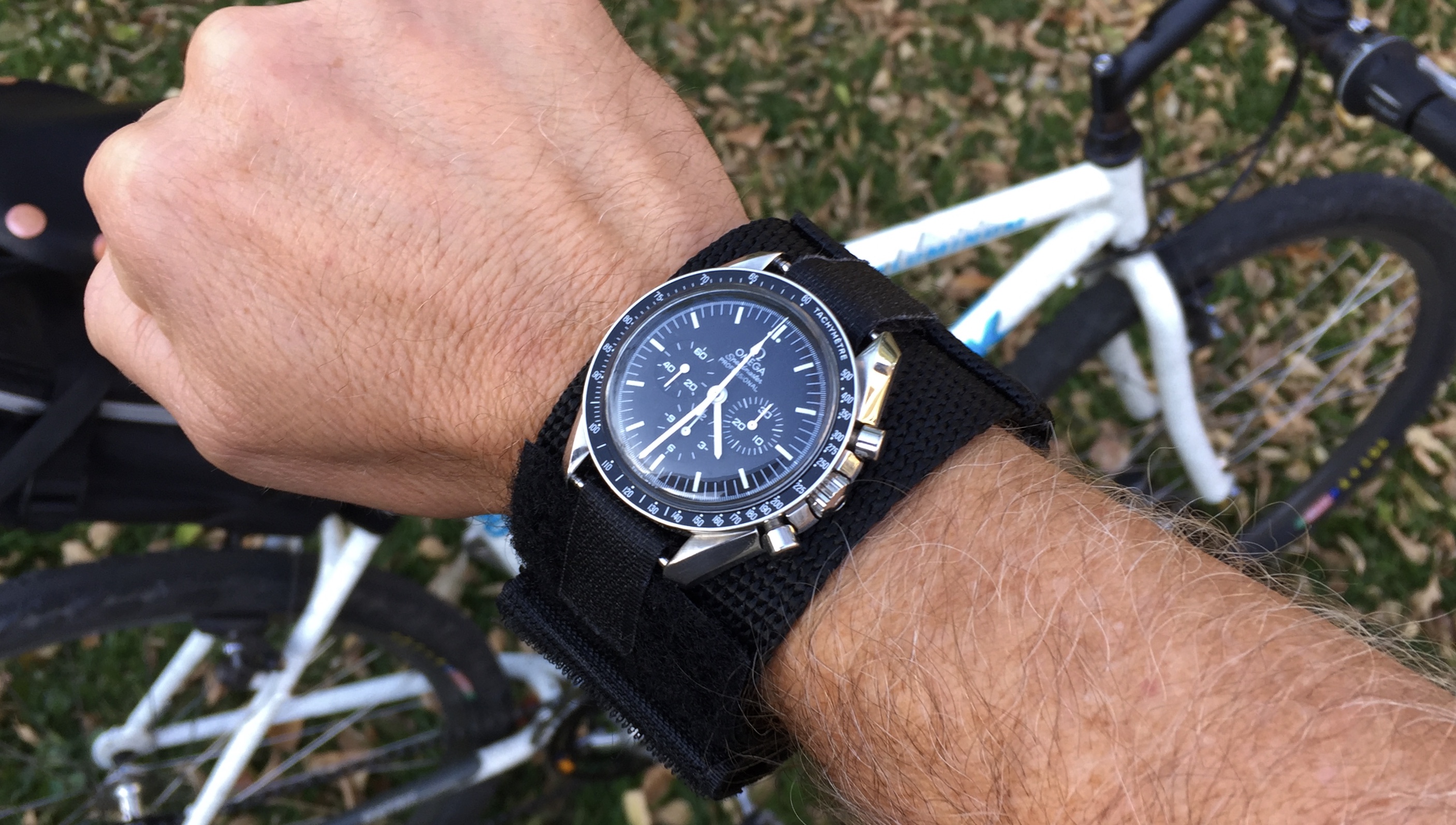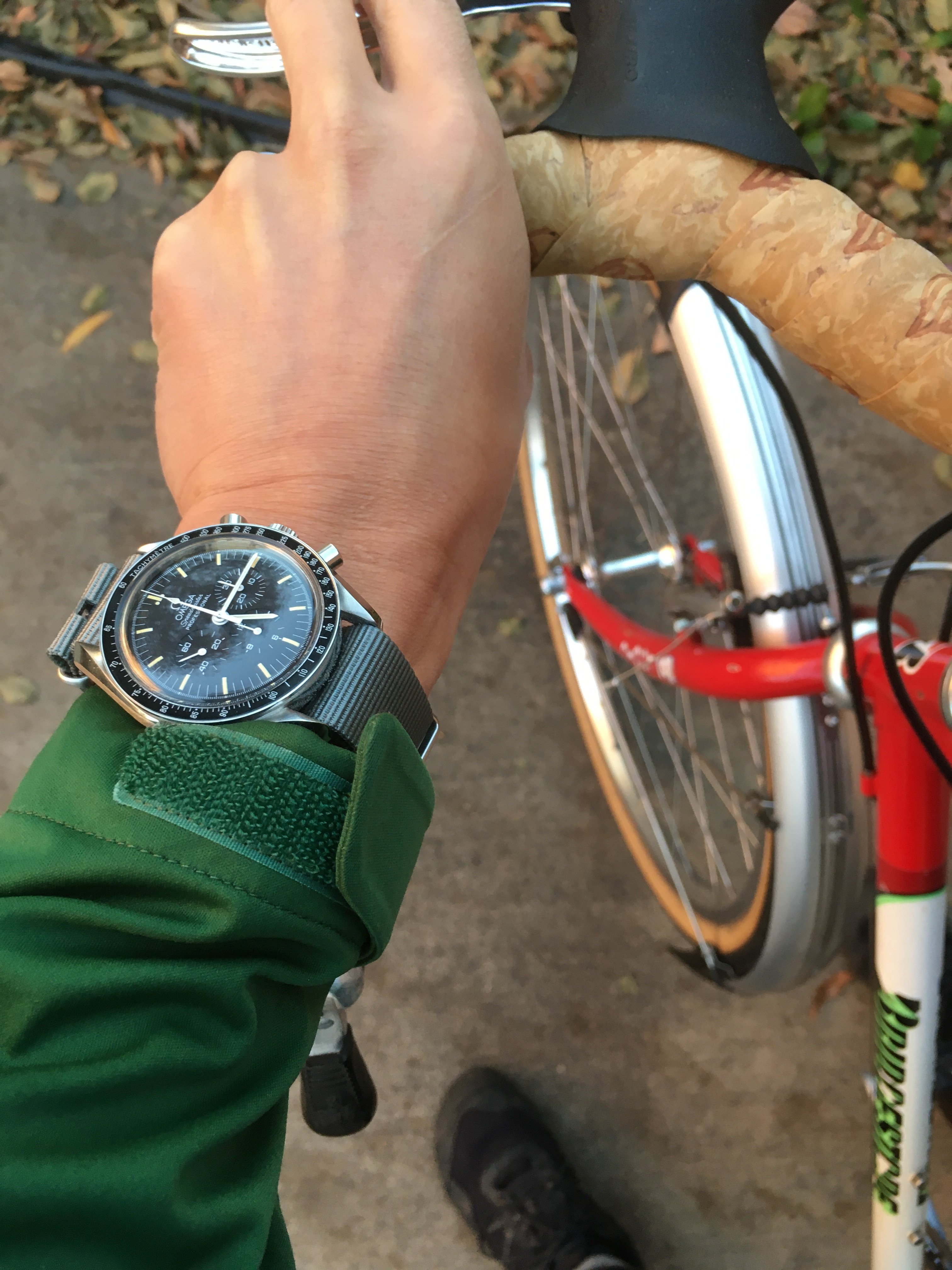 Headed out on my almost 30 year old Trek 8000 ATB...wearing my almost 5 year old Speedy Gonzales Moonwatch on an almost 5 year old Raine Inc. protective band [protective flap retracted]...