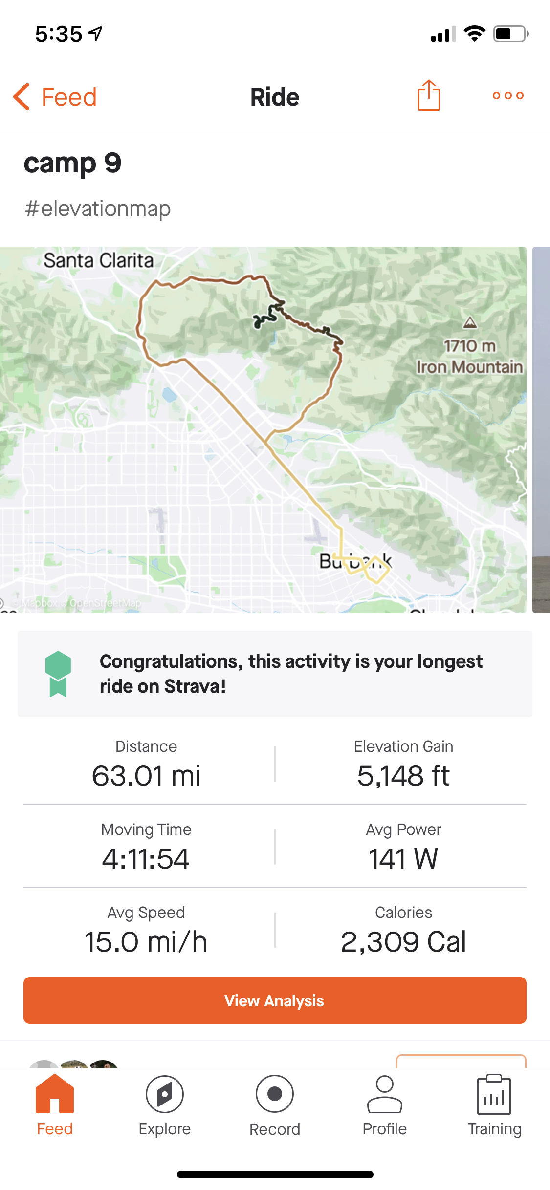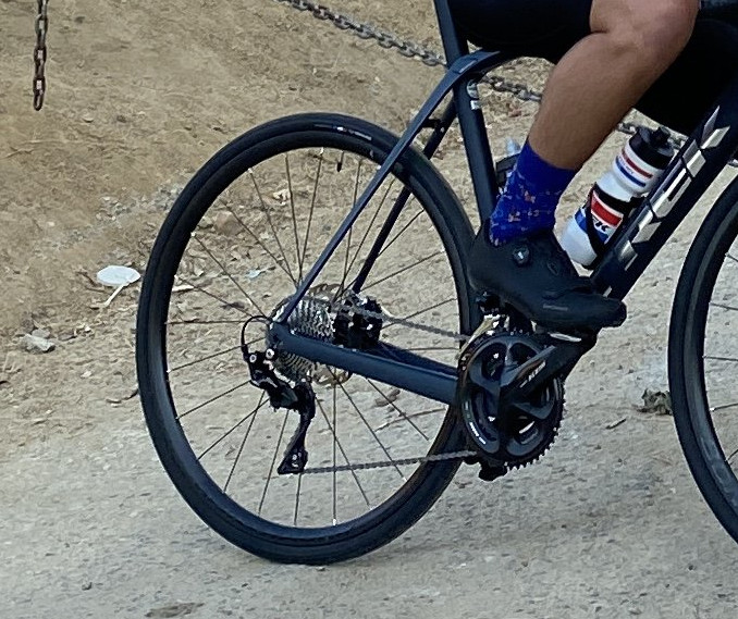 Good eye. Definitely got some climbing in, just short of 3500 ft. Unfortunately for Rocky, he fell shortly after this picture was taken as there鈥檚 a section of sand/gravel that made it difficult for him to clip in. The road to the top of the sign is actually above and behind it. Sign has been fenced in for years. Not able to go right up to it anymore.