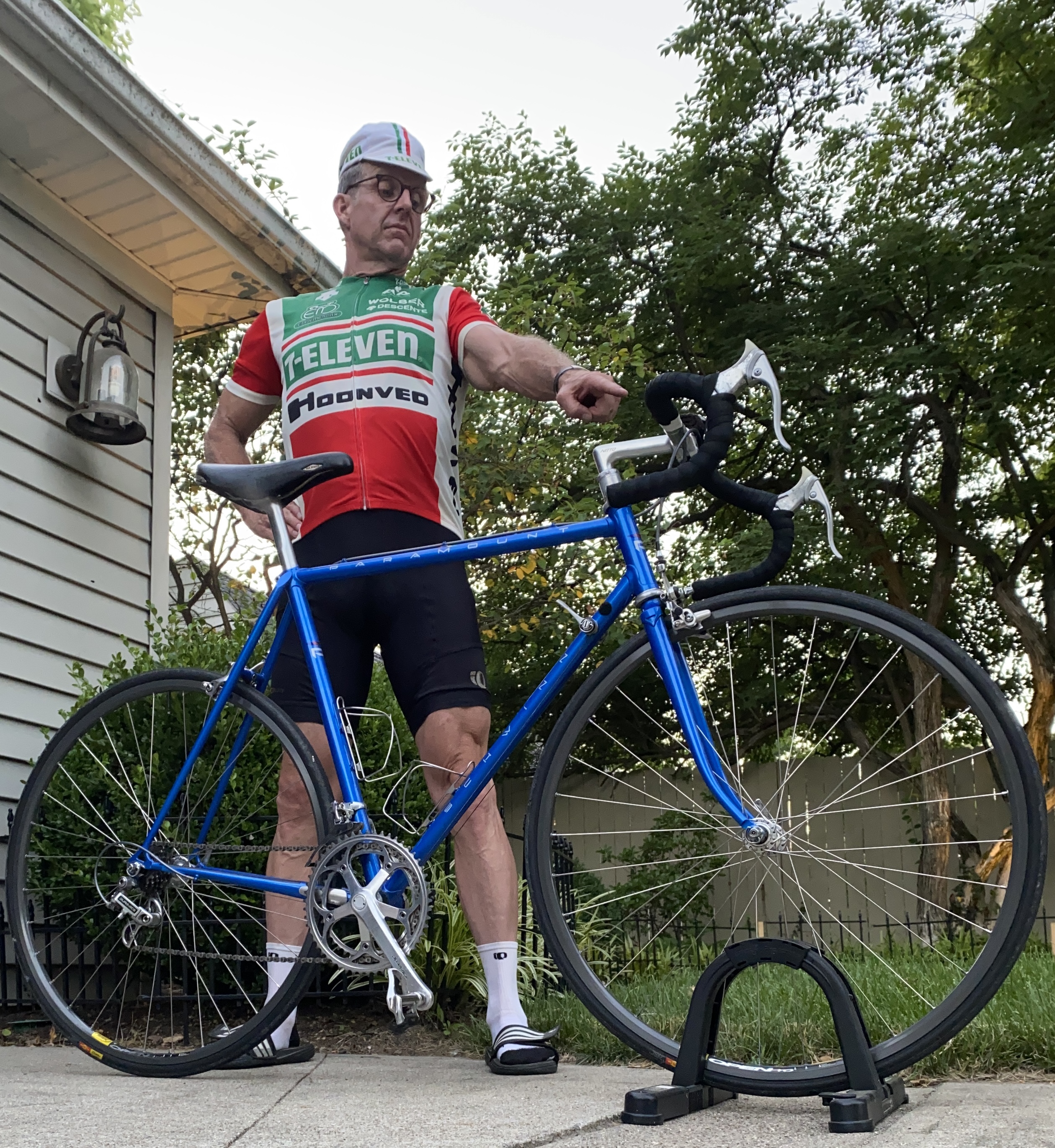 Yeah…beautiful [FREAKING HOT] day to ride a bike [1989 Schwinn Waterford Paramount]…went on a local group social ride…started leg cramping at about the 1.5 hour point…luckily, I didn’t get dropped…because if you’re wearing a 7-ELEVEN kit, that would look really, really bad. Anyway, nobody was impressed with my manual wind [3861] cycling computer mounted via an Omega Velcro strap…
