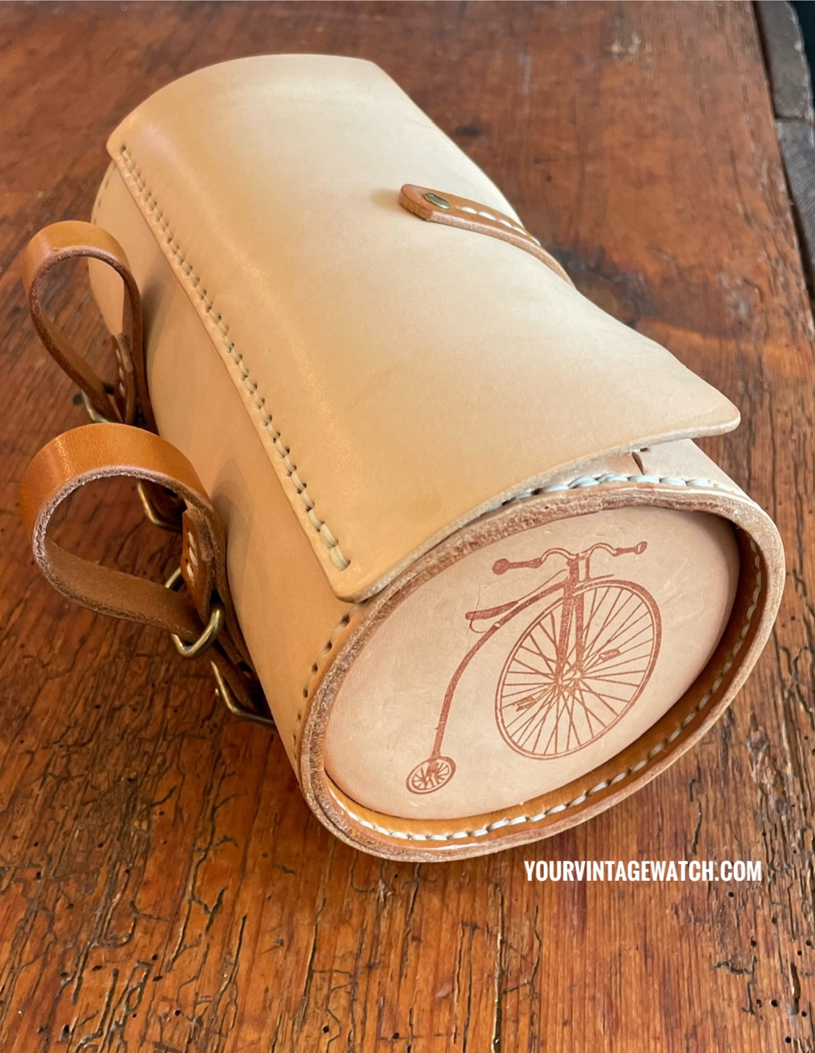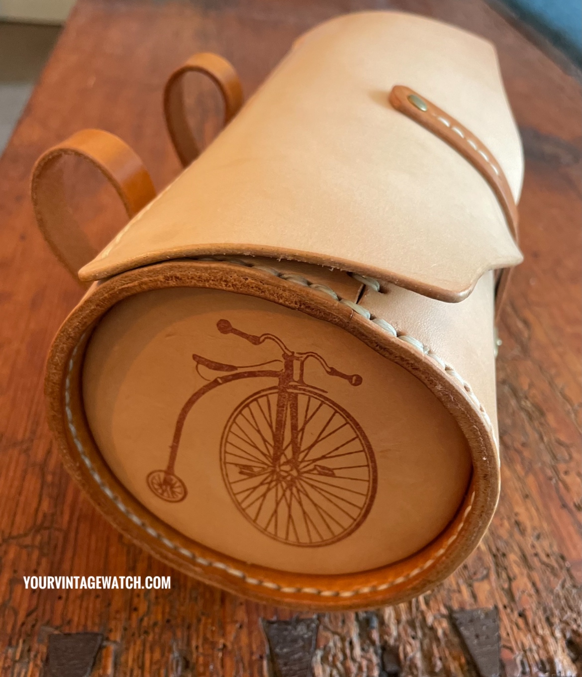 Finished making my handlebar bag today. 🥳🥳🥳 All hand cut and hand sewn in vegetable-tanned leather. I had a Pennyfarthing ink stamp made up on Etsy, and applied it with archival ink, which is nice and stable on leather. There are days when you need to bring along all your house keys & bike keys, a wallet and a snack and…and…. This will be handy.