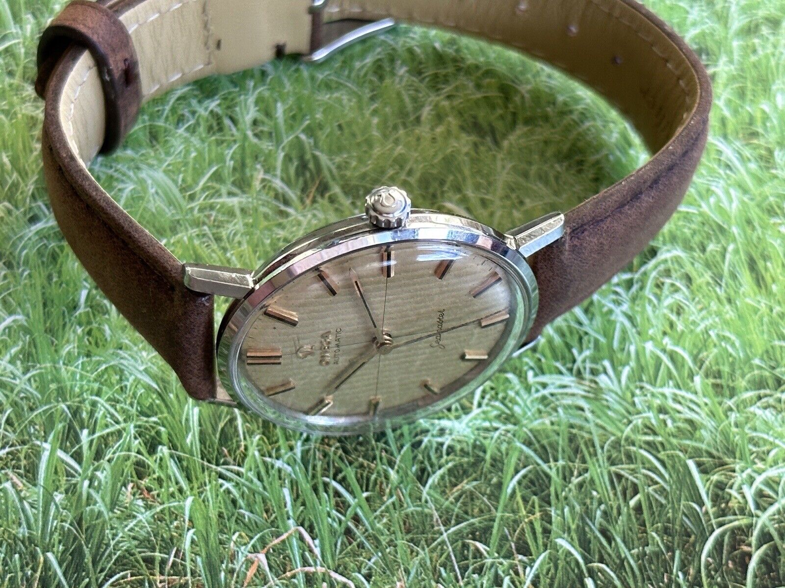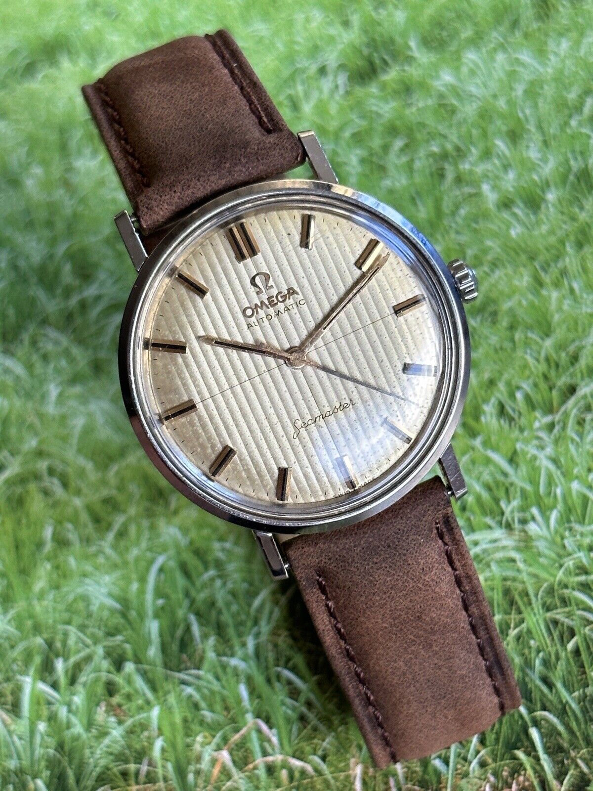 I have heard the ribbon/ tapestry dial especially with the cross hair though not the rarest, is much sought after. Though I am not a collector it looks beautiful to me with even patina. But I feel the ribbon is thinner that most other examples here and thicker than the pinstripe variation. Is this dial authenic? Seller asking 900$ or best offer. Case looks okay to me. Movement photos not included and have requested the same.