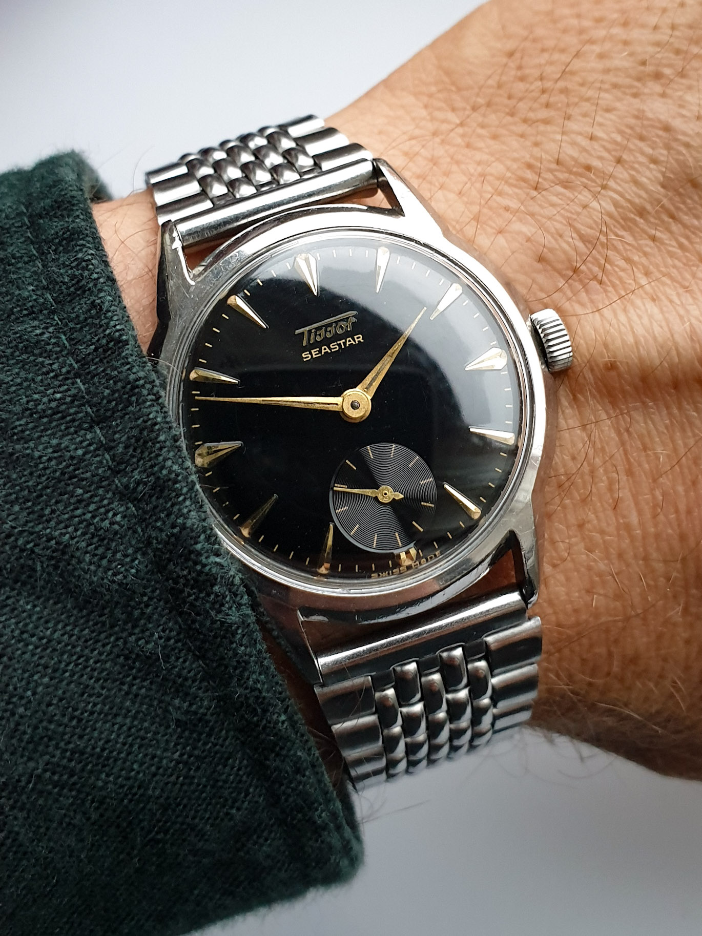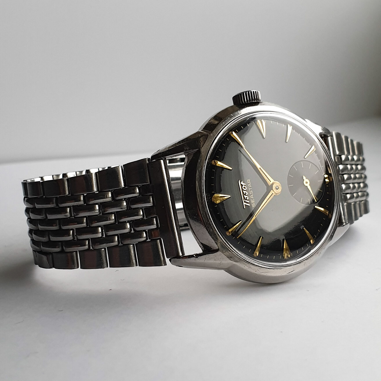 For sale is this gorgeous looking vintage Tissot with stunning original Black glossy dial from 1959. The movement was serviced less than a year ago and it's running well and keeping time.