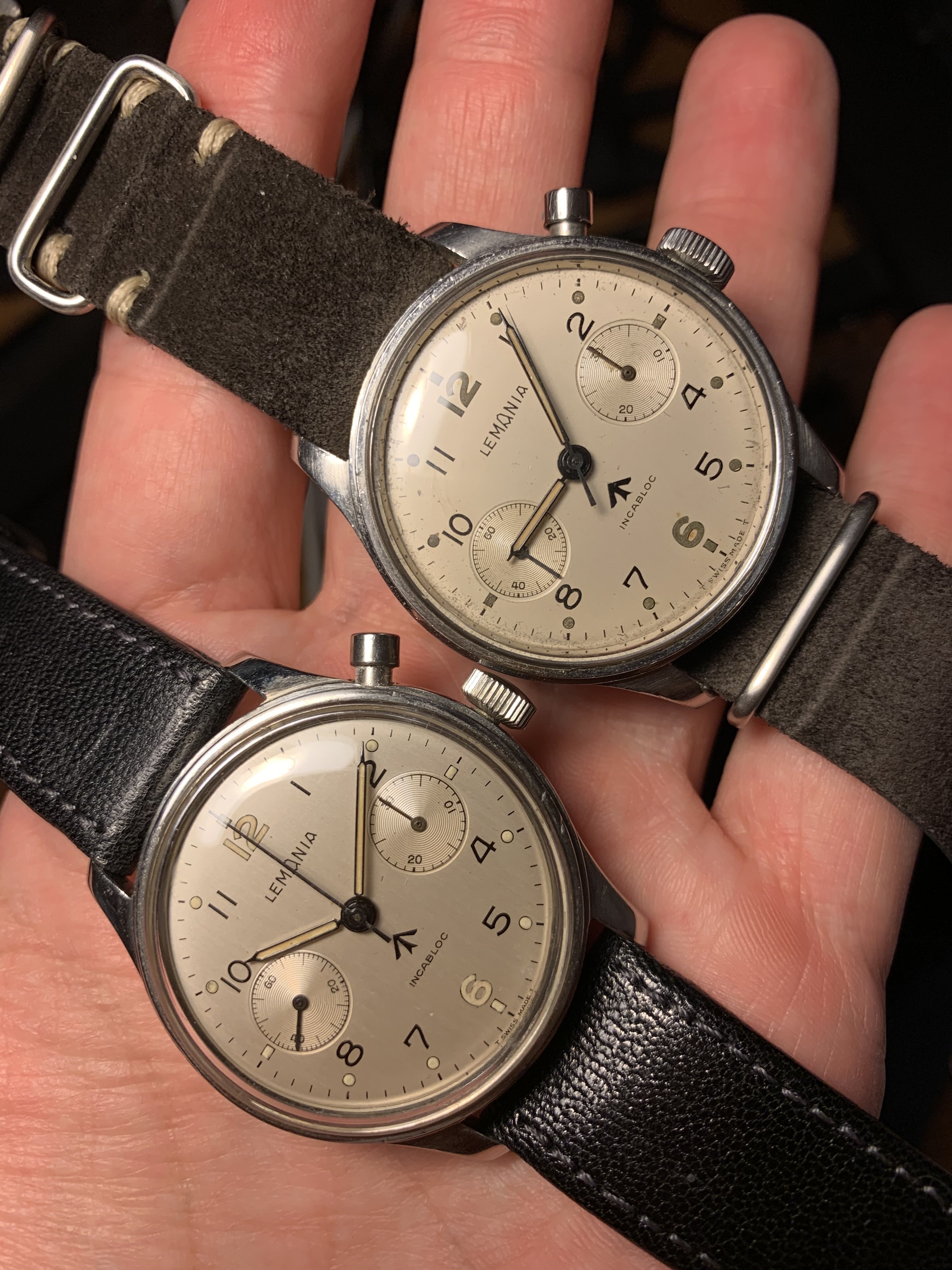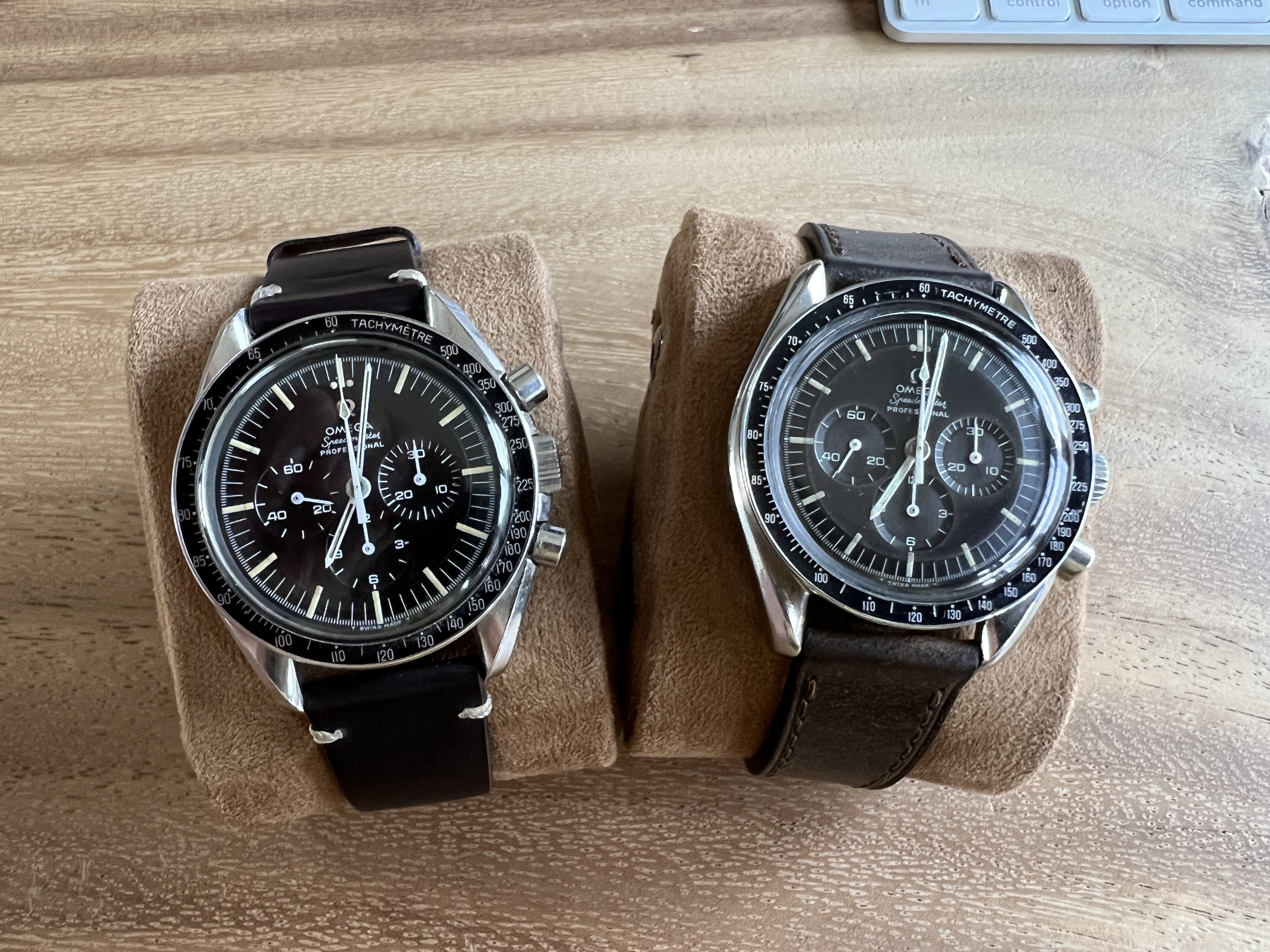 Two vintage Seamasters. On the left a 1962 14389 with a clean dial. On the right a 1954 2759 with dial spotting and patina (still kinda charming though!).
