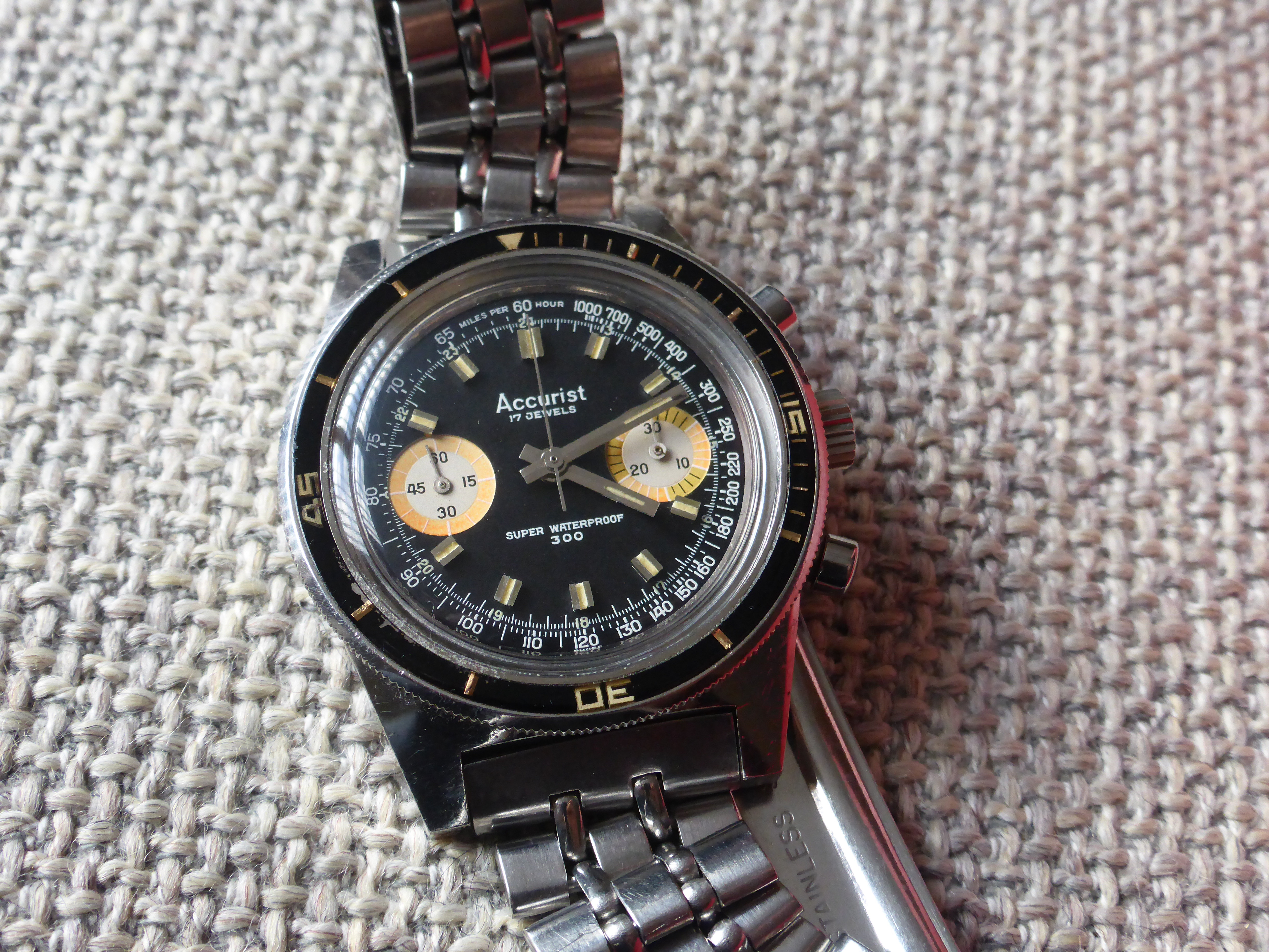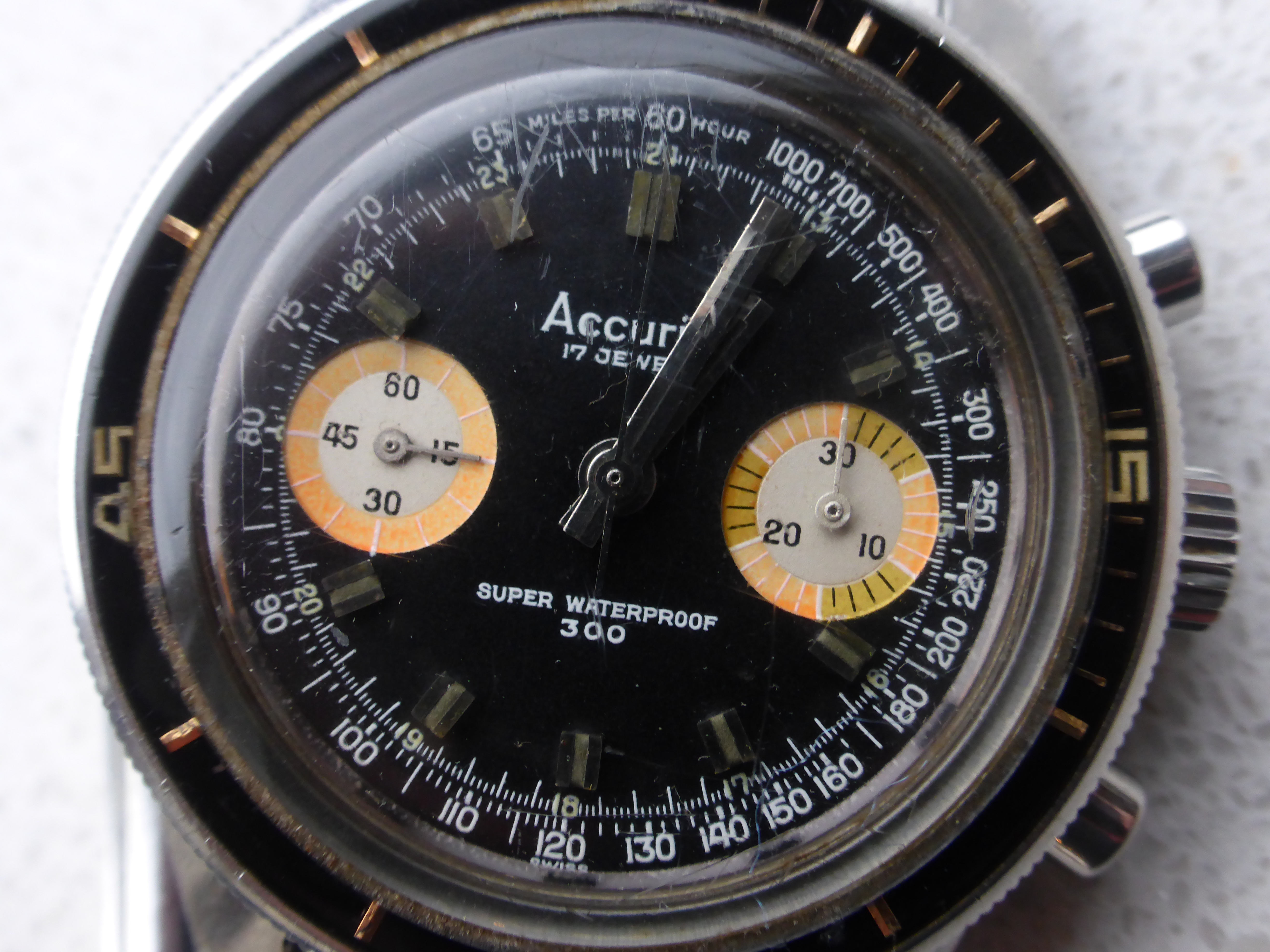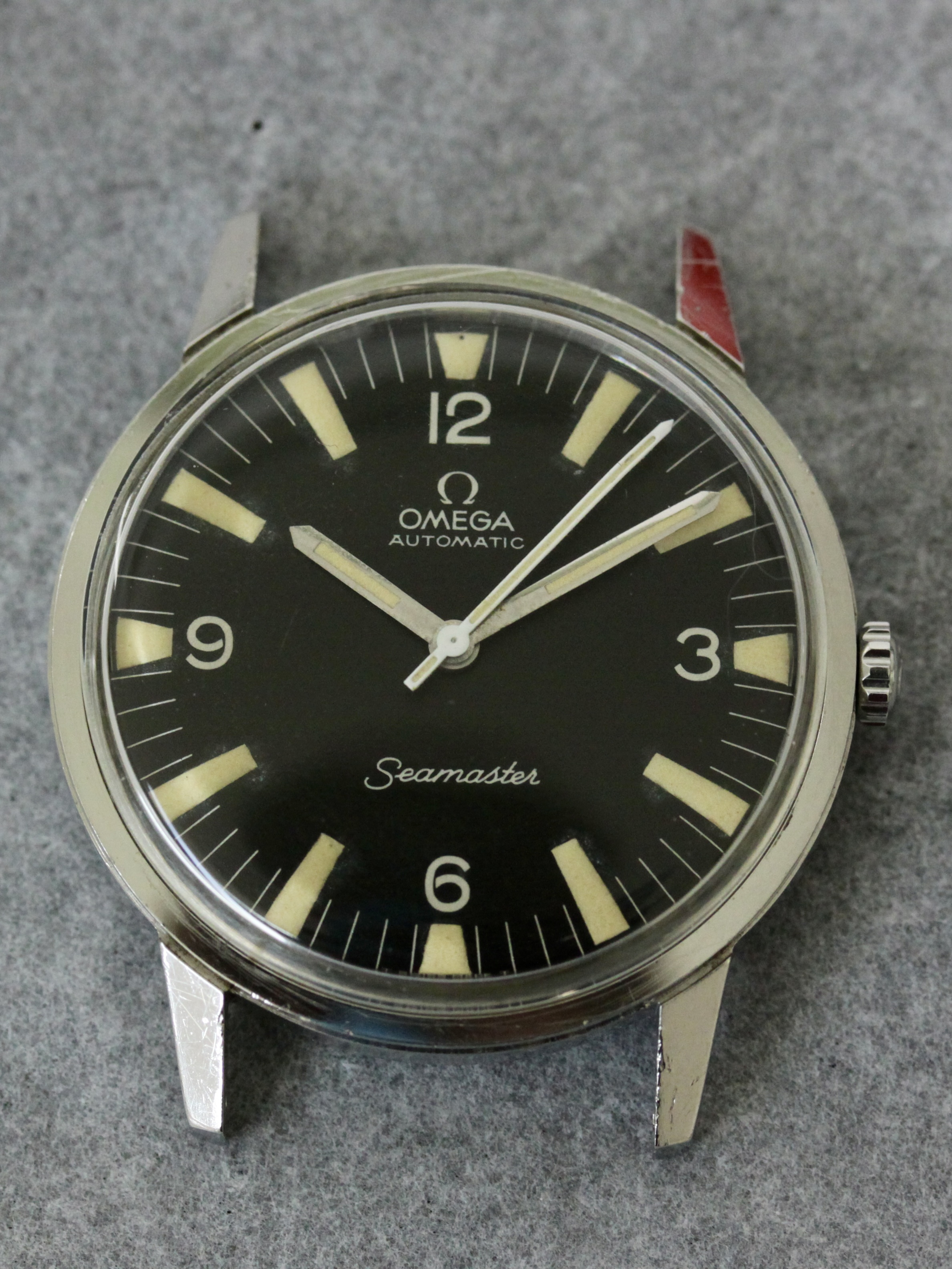 Before. The handset was in bad shape. There was no tritium left on the minute hand, but the original lume blibs on the dial were intact with a lovely old-tritium hue.