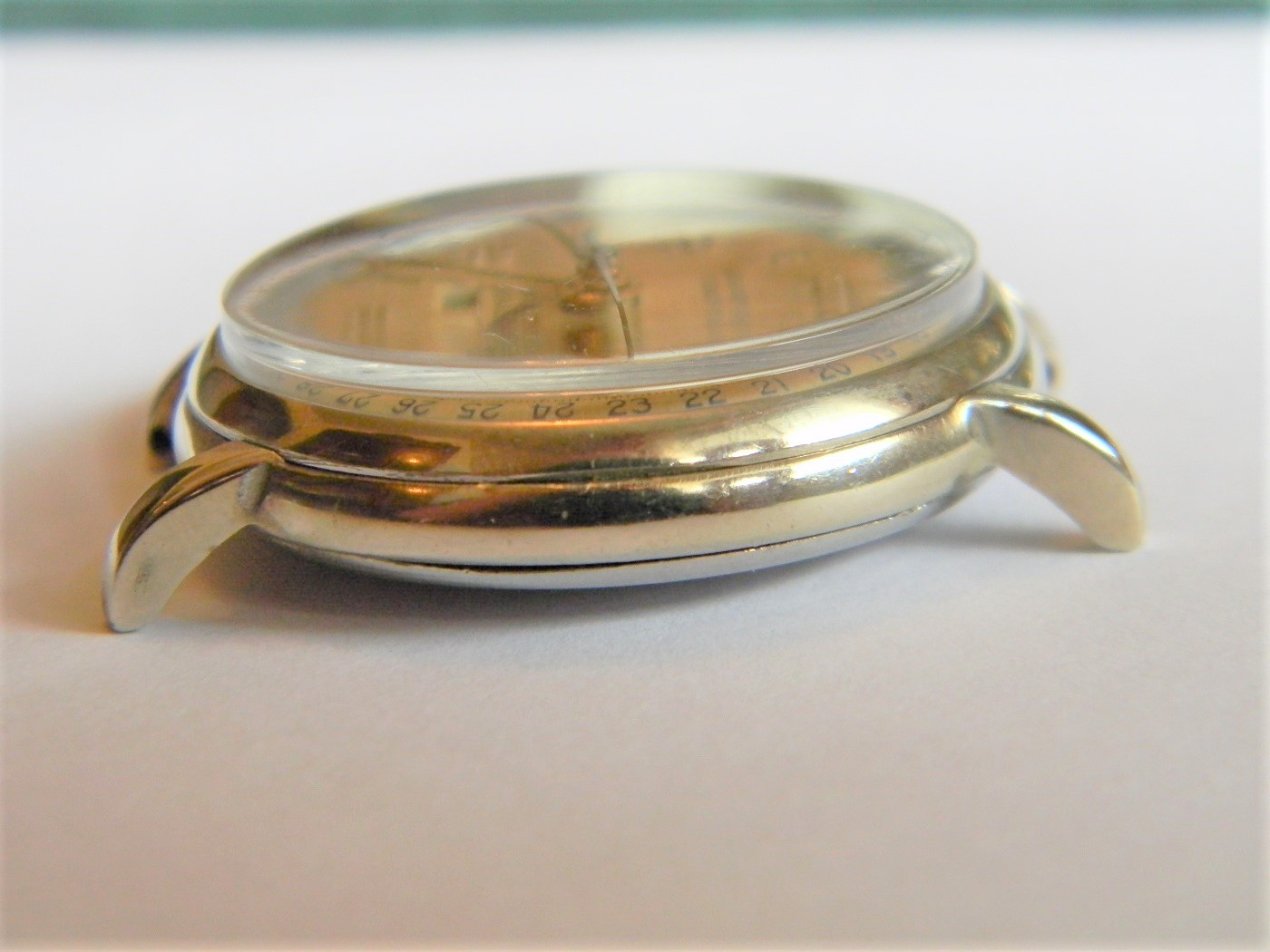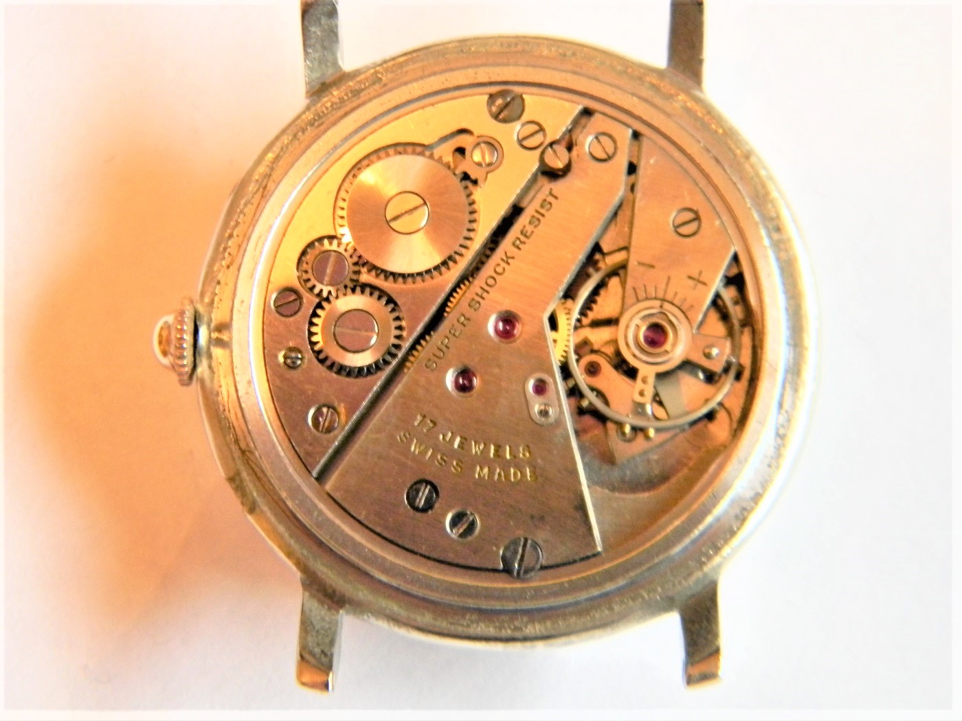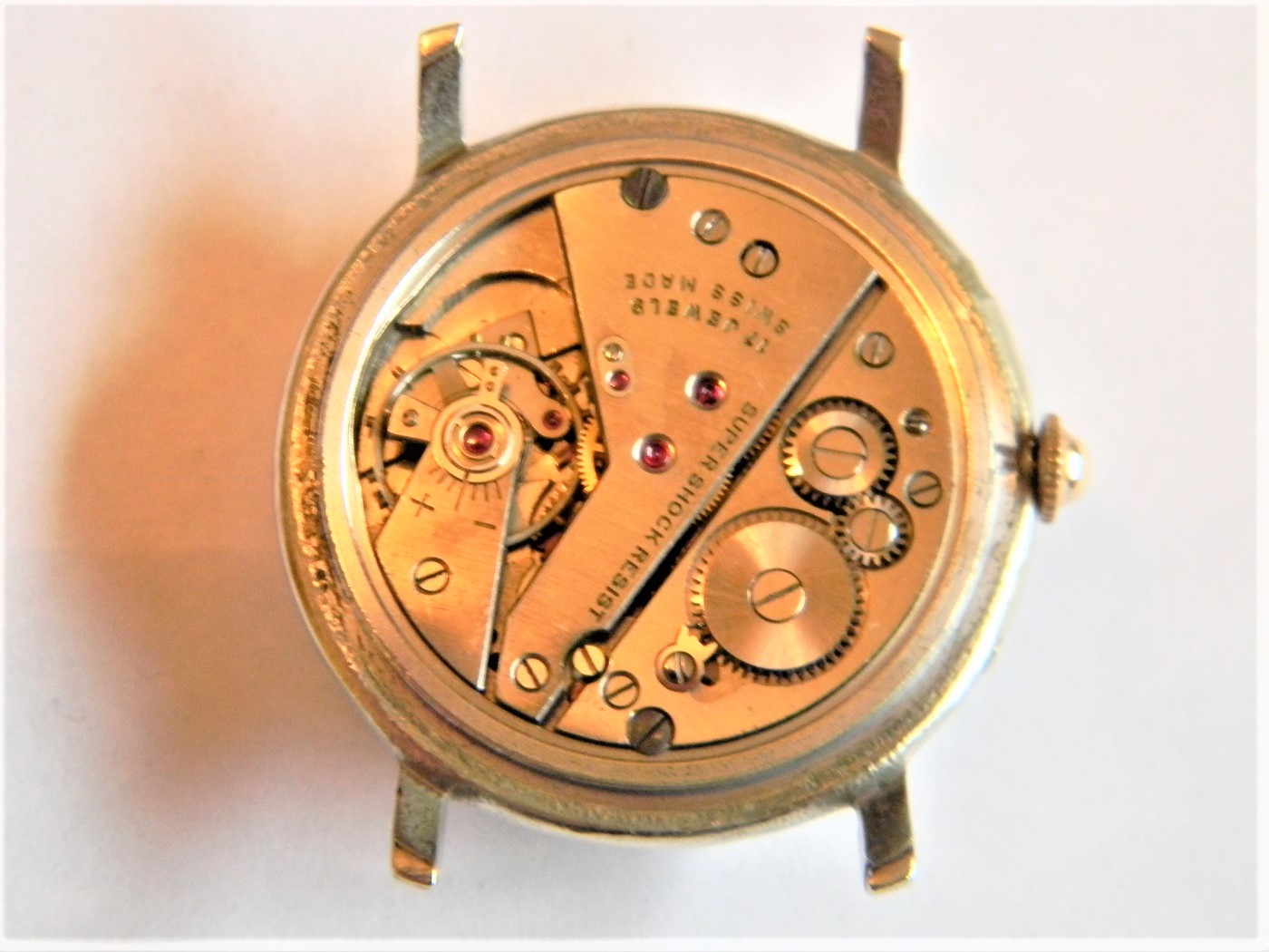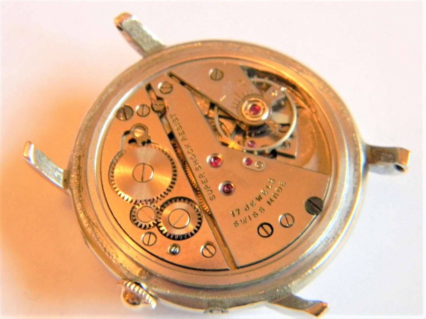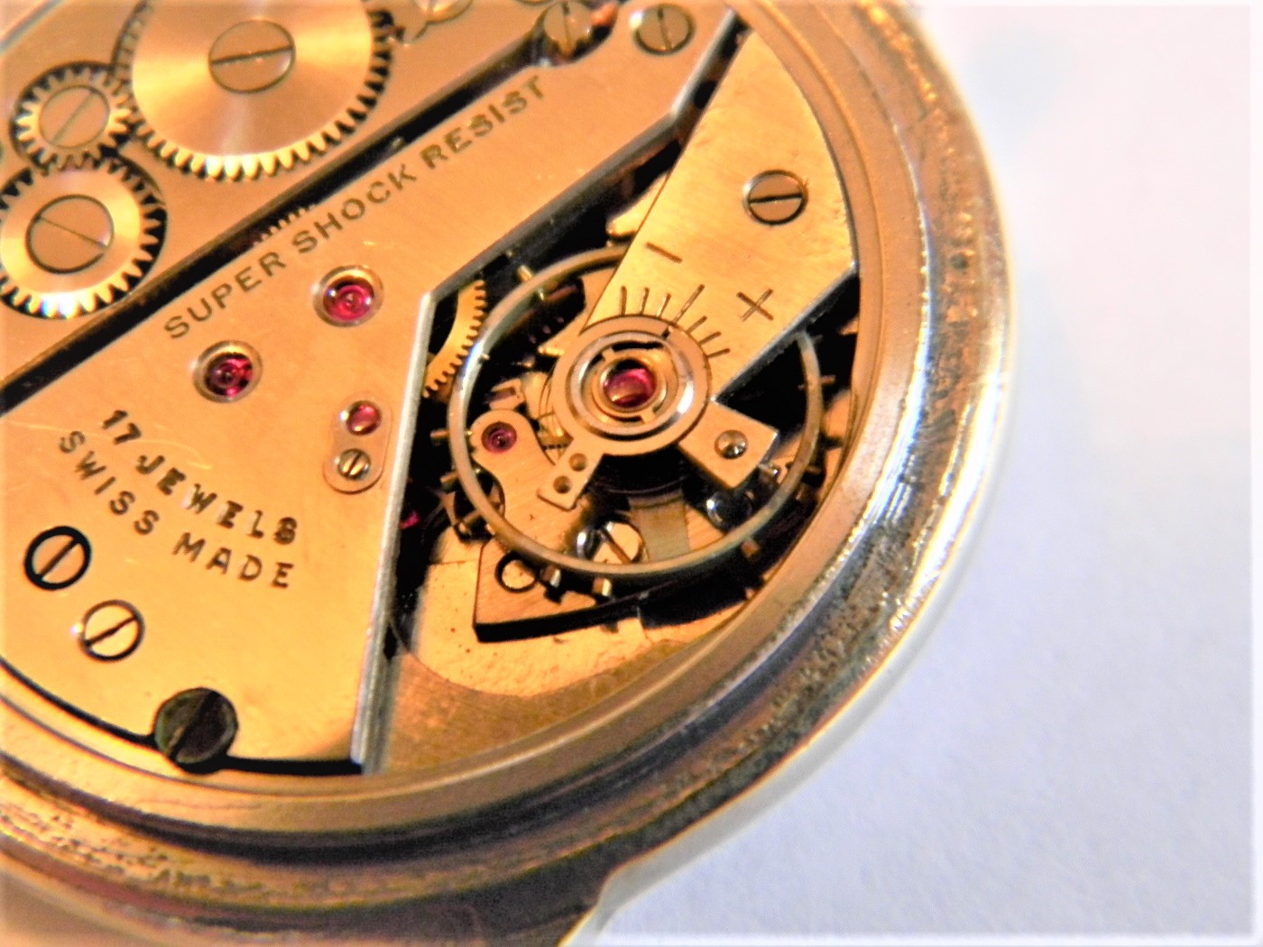 Movement winds sets and runs minus (-) 2 seconds dial up over 24 hours