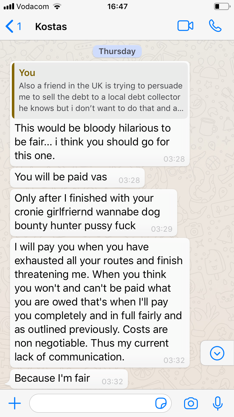 @Vasigan - although the reputation of Kostas is well known in this community as being shady, do you have a paper trail showing that he commited a crime or that you entered into an agreement with him by which he didn't fulfill his end? Not trying to cast any doubt on your side of the story, but if this community is going to pile on- the claims need be substantiated.