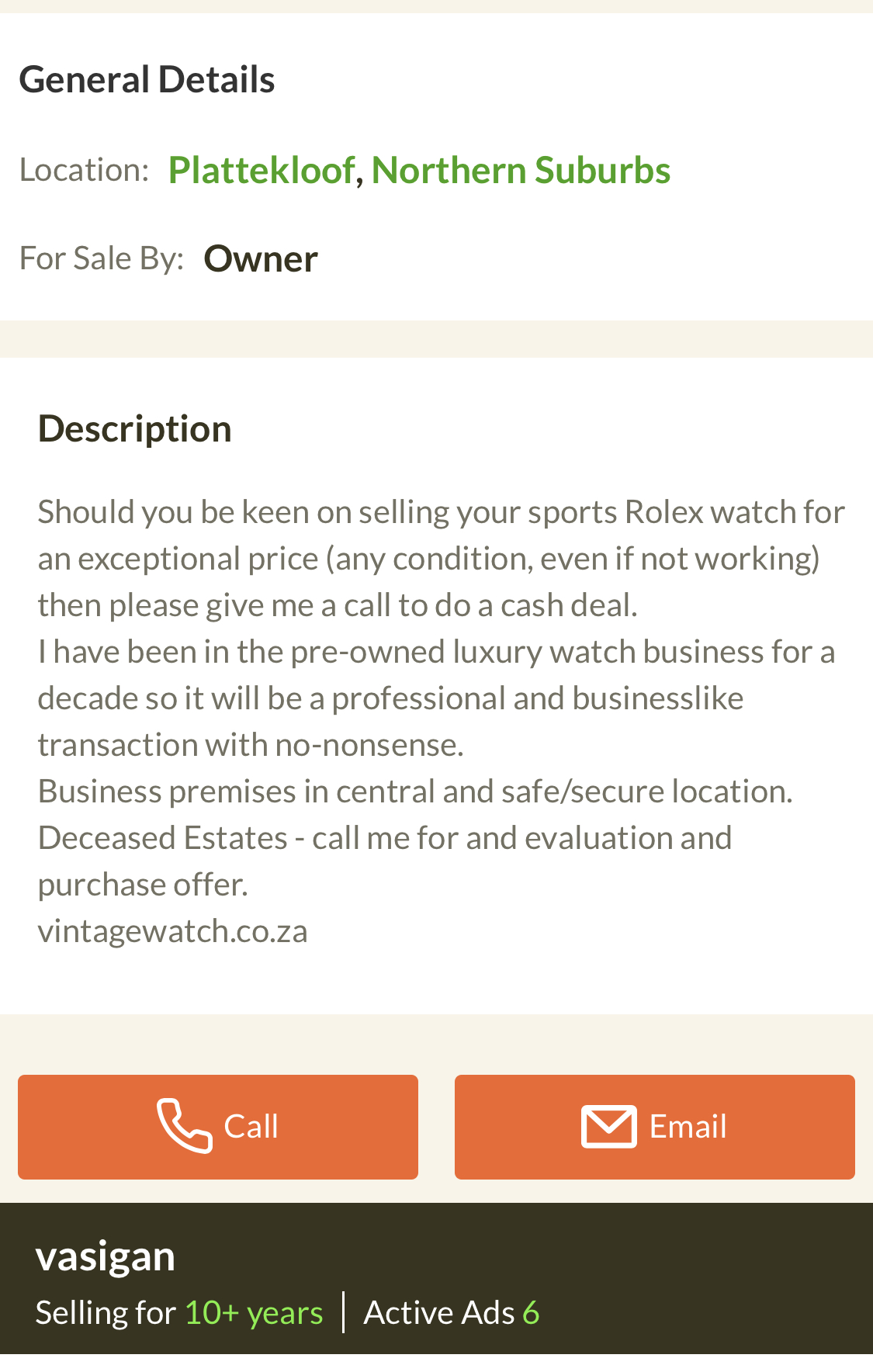2) someone who presents himself as a dealer, with a dealer website, in order to 'attract would be sellers' regardless of whether or not there are currently any watches in his 'Sell' section (your website follows a regular dealer template) is