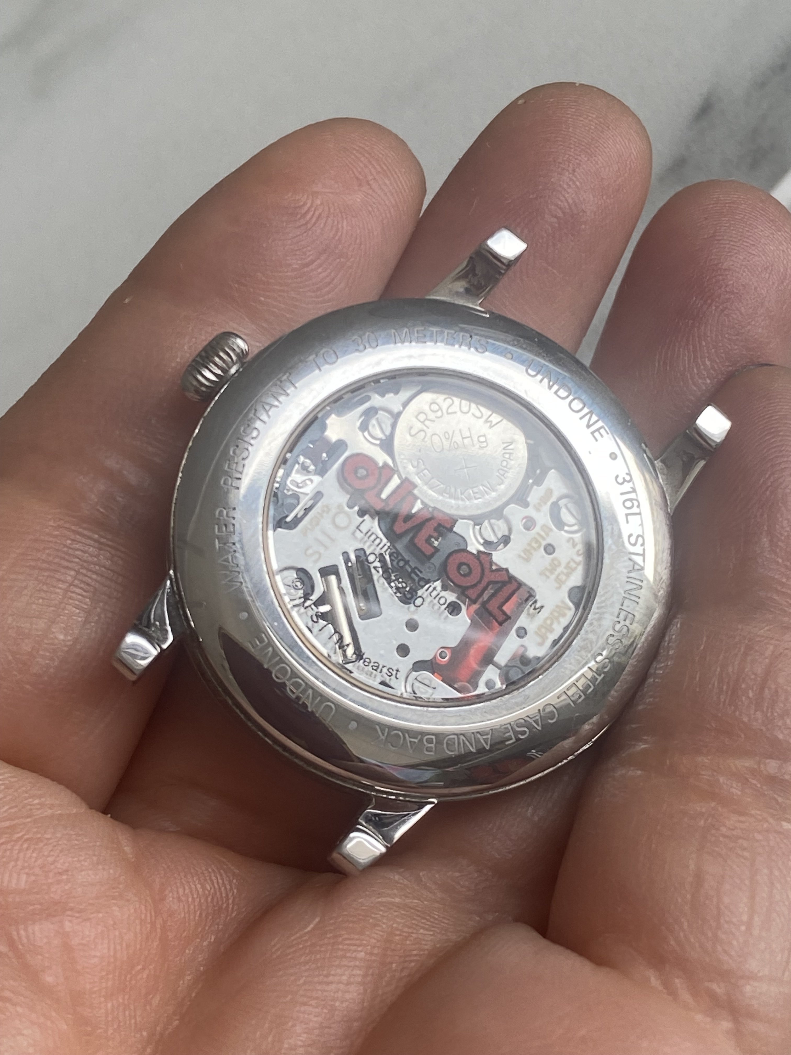 While my own watchmaker is on vacation, I contacted Undone asking for help.