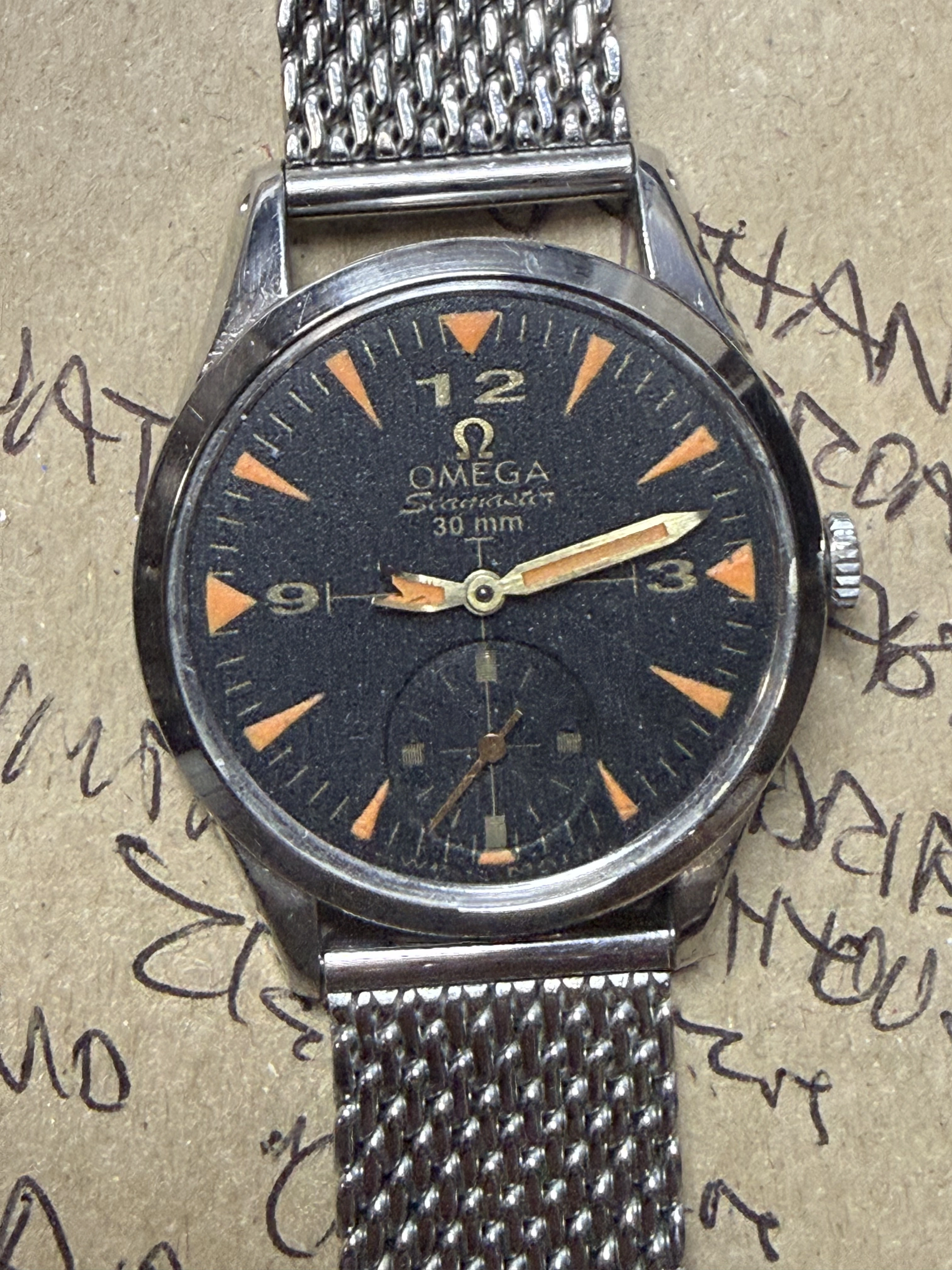 However, there are now multiple listings by multiples sellers (although i think it’s one seller with multiple accounts). These watches have taken the Homers car approach, using redials with black dial bodies, crosshairs, Arabic 3, 9, 12, triangular hour markers, applied logo and rich orange lume. Obviously the seller makes no mention of this in their listing. I asked if the dial was original and the reply was “it looks original but hard to tell with vintage dials”.