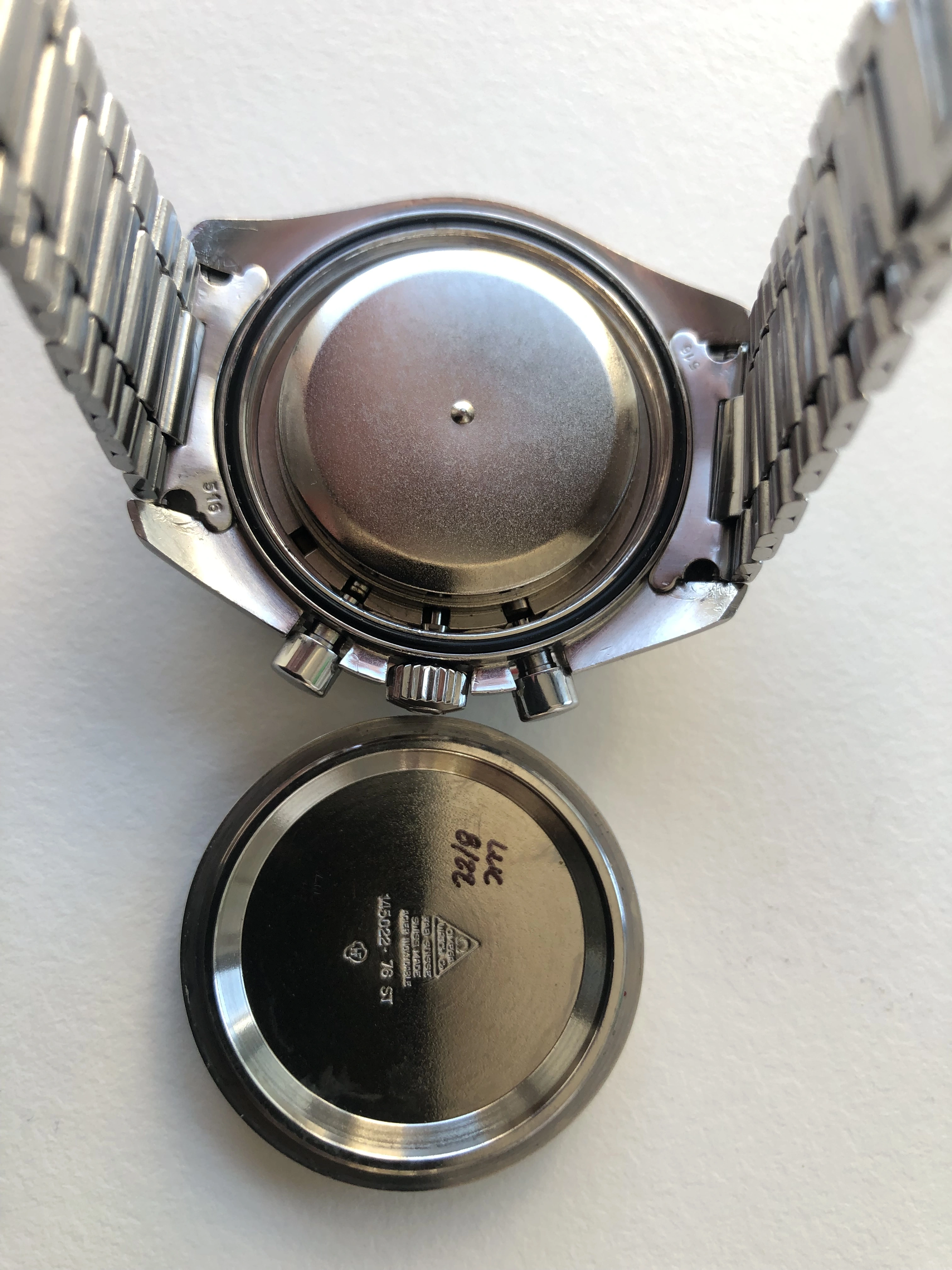 What could be a concern though, is the dial. That dial, if it is in fact not a stepped dial (better photos would be needed), IIRC it looks to be what should be on -74 or very early -76 examples. If the case back is a -78, I may be suspect of it, or it could be as simple as the case back is a service replacement or even the dial was replaced at some point. Hard to tell without more photos and with many of these old Speedmasters, knowing more about watch's story can help understand what may or may not be bogus replacement components.