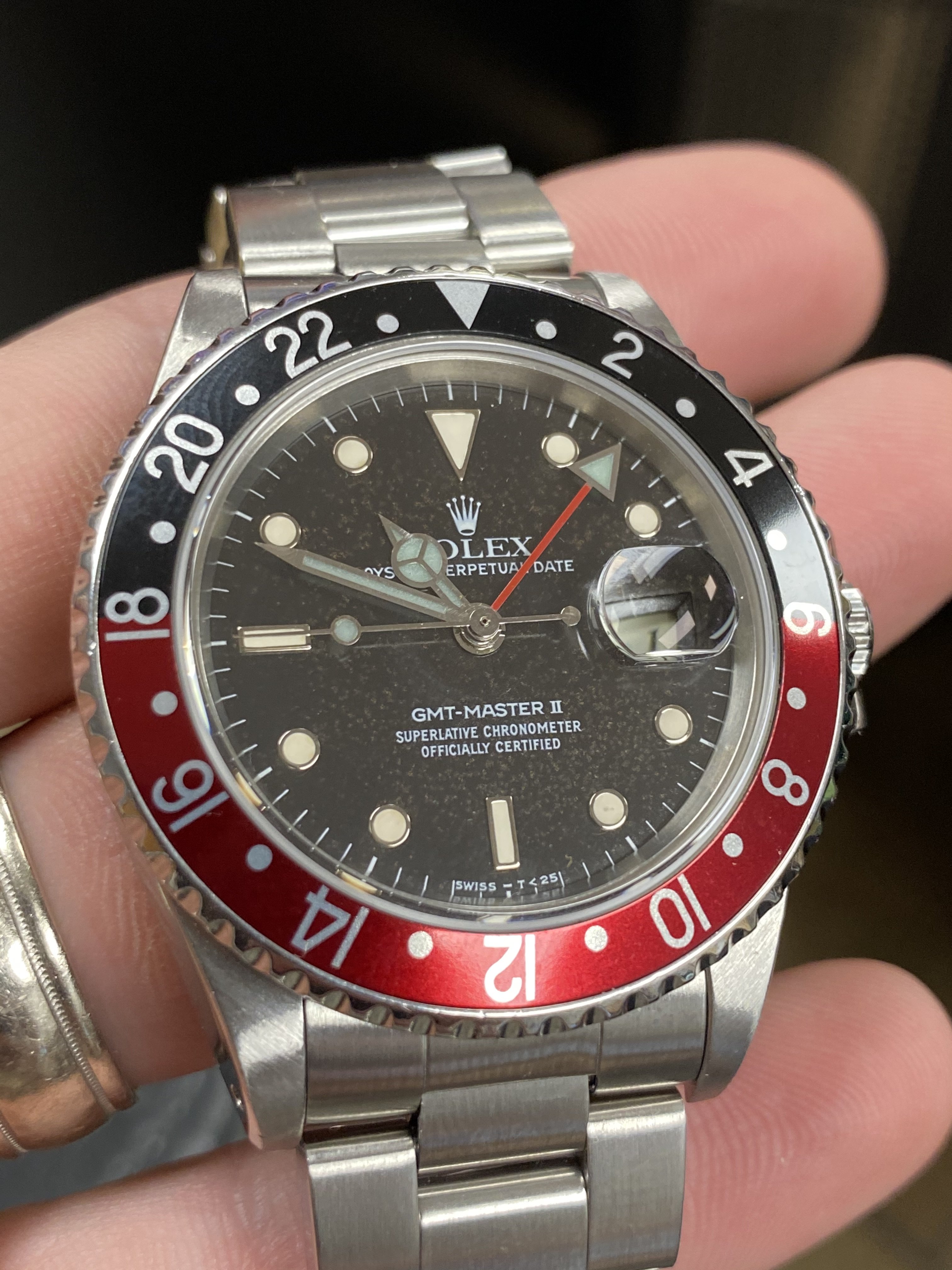 Then, last week, I was talking to one of my best friends back home (who got my into luxury watches a few years ago) and he just got a 1985 16760 coke gmt master 2 in. It is at his watch guy having the crown tube replaced now. It comes with the full set and will be ready in about 6 weeks.