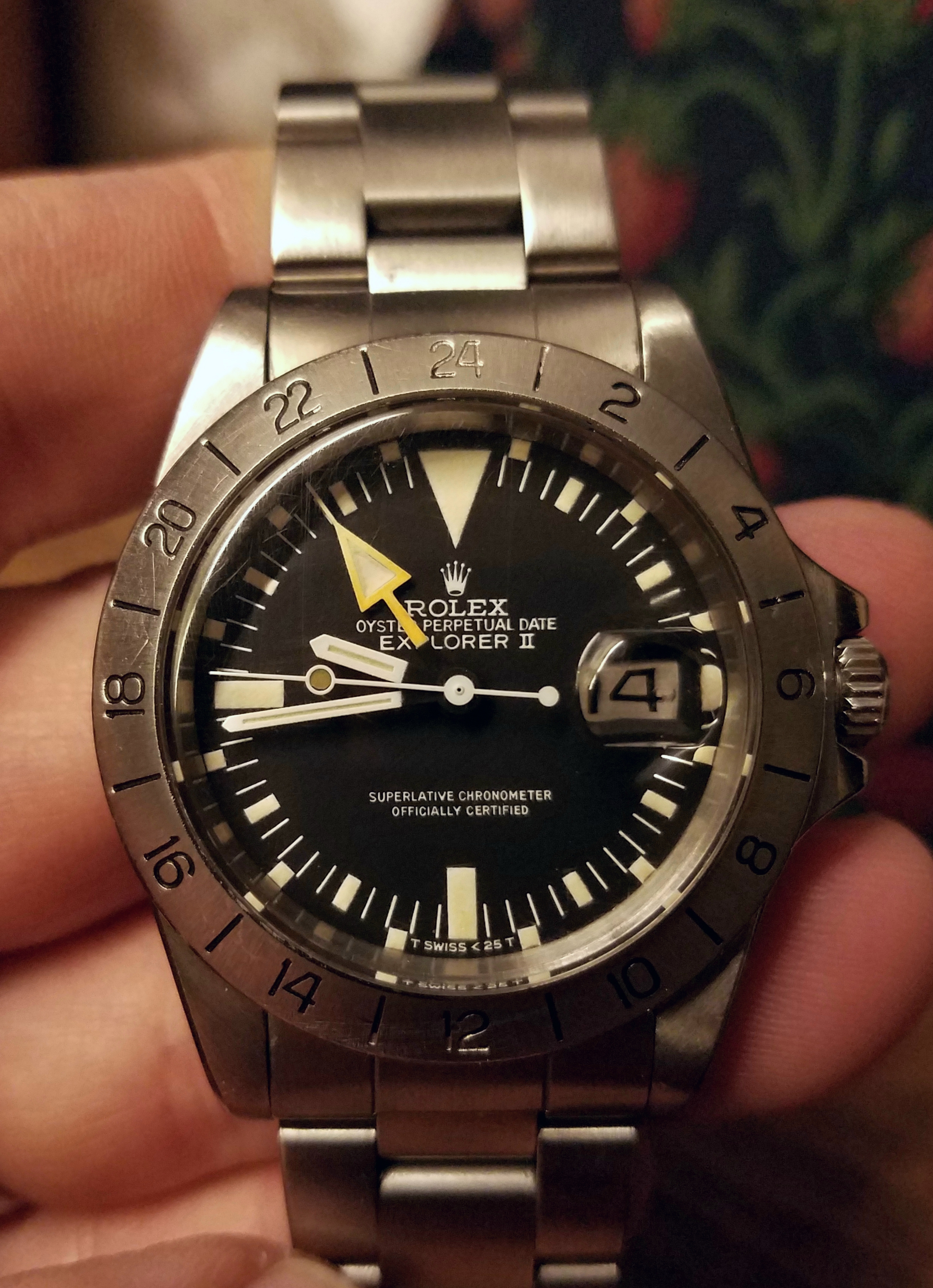 I had seen a watch on ebay that had been on there forever. The pics were just awful, but I thought I spied a case bevel as well as brush marks on the tops of the lugs. They were a brick and mortar store, so I gave them a ring, and asked for them to send more pics...they did...and shortly thereafter we worked a deal.