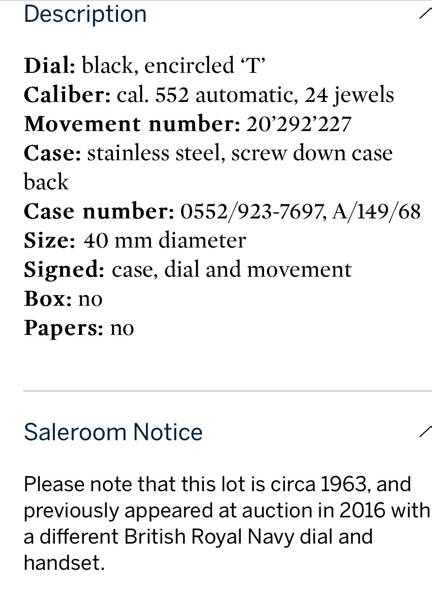 Edit, added note, “sold previously with a different dial”