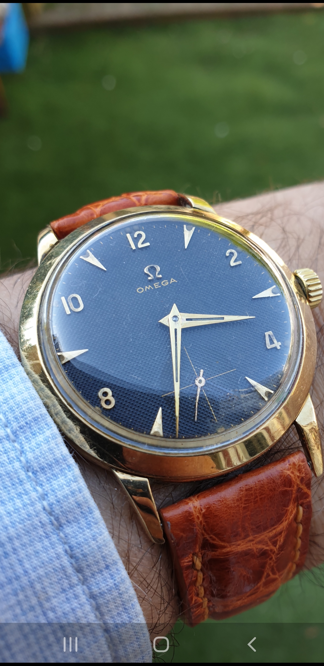 I've sold a watch with the description original dial. I really thought it was a original dial because - as we know - textured dials are hard to refinish. But the applied logo is a bit wonky so maybe he has a point. Anyway, because he thinks it's a redial he wants to send it back. Of course that is not a problem. But what do you think? Redial or original?