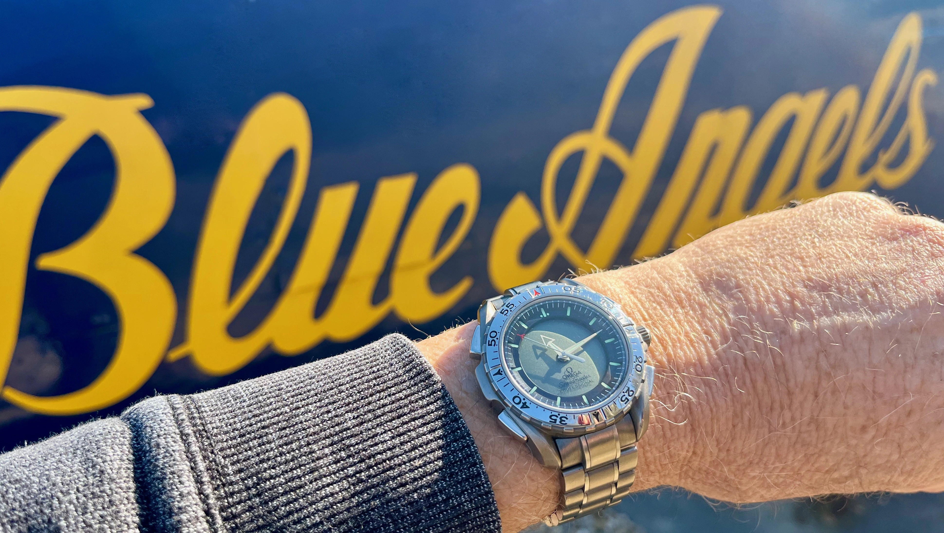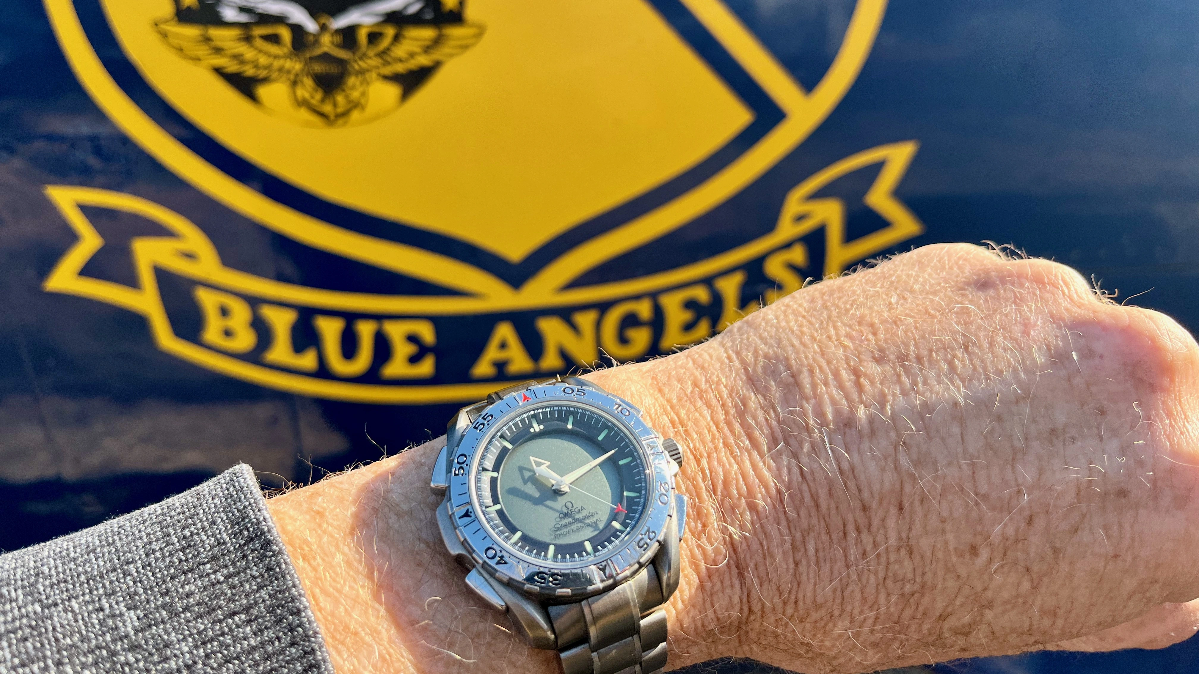 This watch was worn by the Blue Angels pilot testing the functions and durability of the watch during the 1997 practice and air show season.