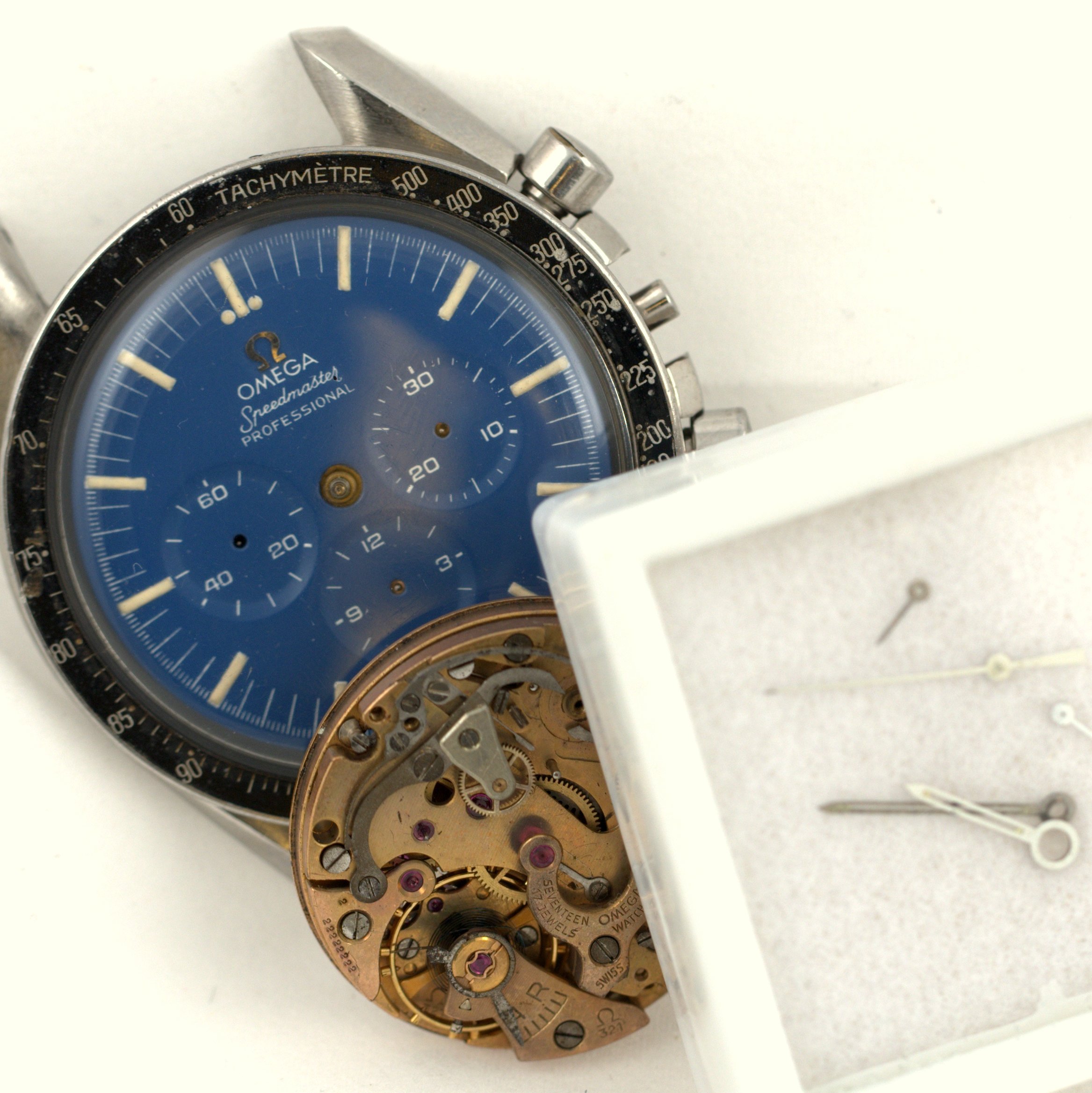 I have seen several pictures in Omega books of a brighter blue speedmaster, though not seen an original. I took the print pictures to my dial maker and got this: