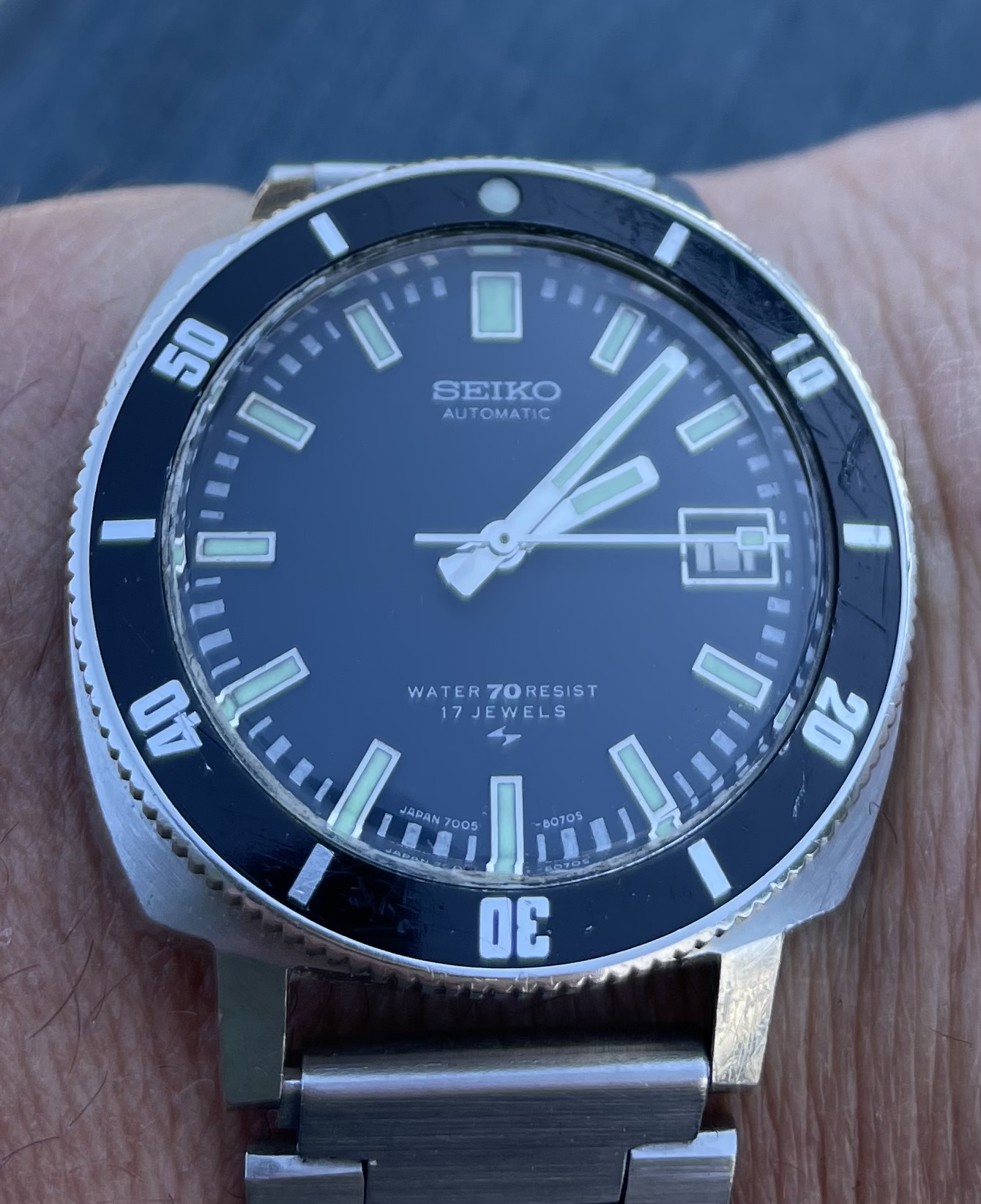 The Seiko 7005-8052 is available on Ebay, but blue dial ones seem to be rare. I was not sure how to price it. If I priced it too low, hurry! If I priced it too high, I am keeping it.