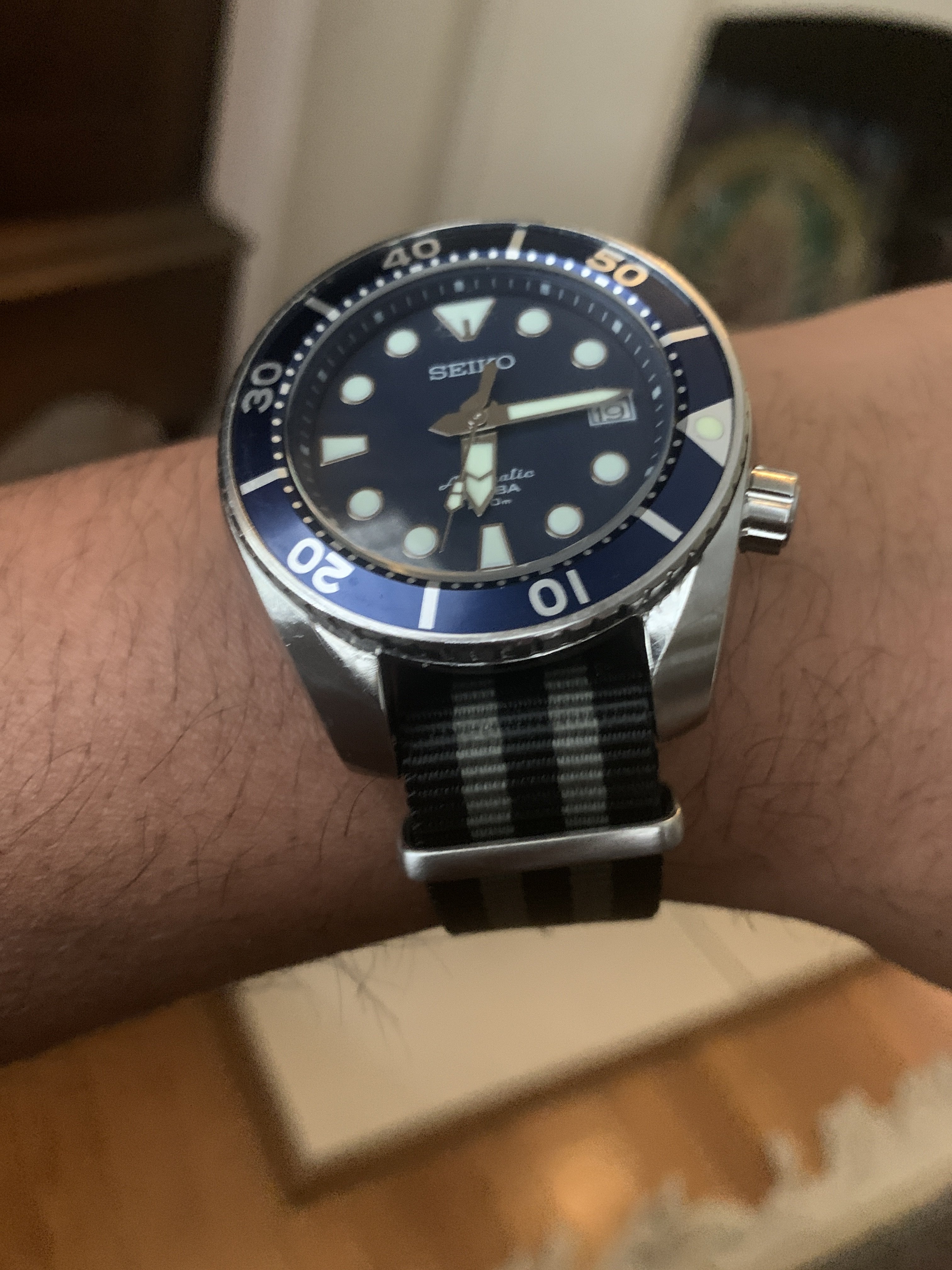 After a long search and with great assistance from browsing around this forum I finally pulled the trigger today on my first real piece (blue AT) - still trying to find the most comfortable size of the bracelet though 馃榾. Detail of the picture: greenish building in the background is Rolex' HQ. Despite looking at the illuminated crown every night it did not convince me to get one of those instead though.
