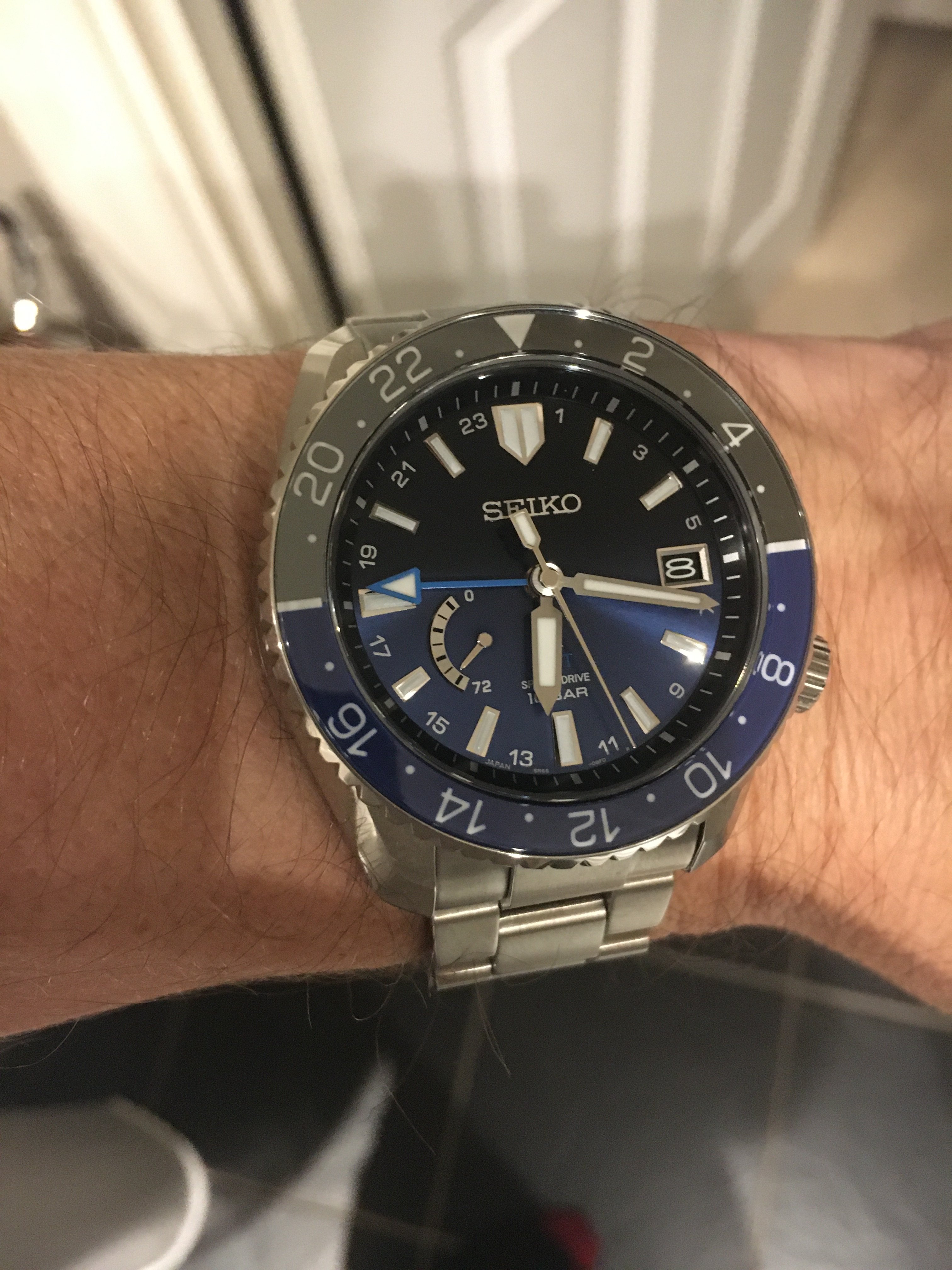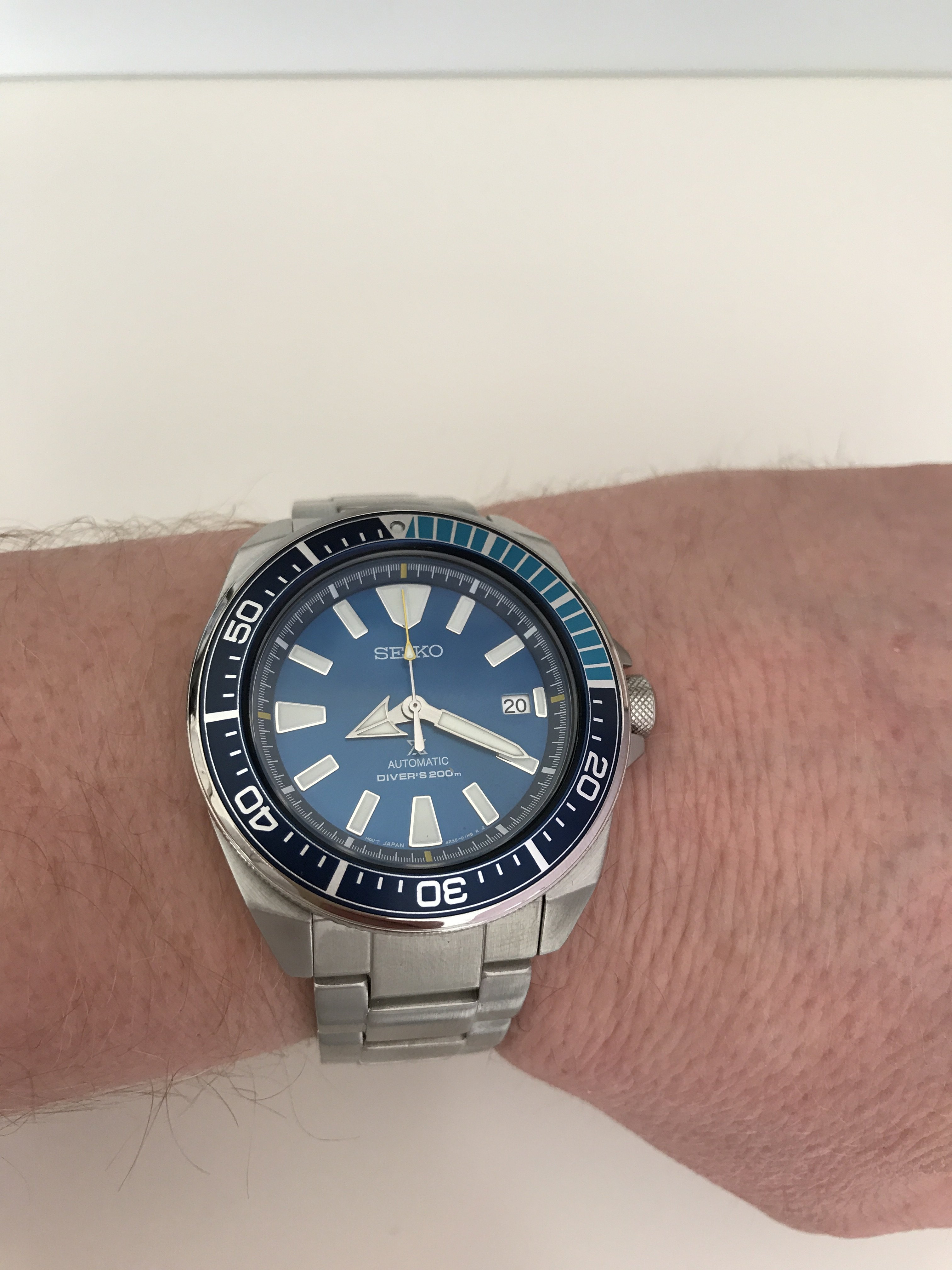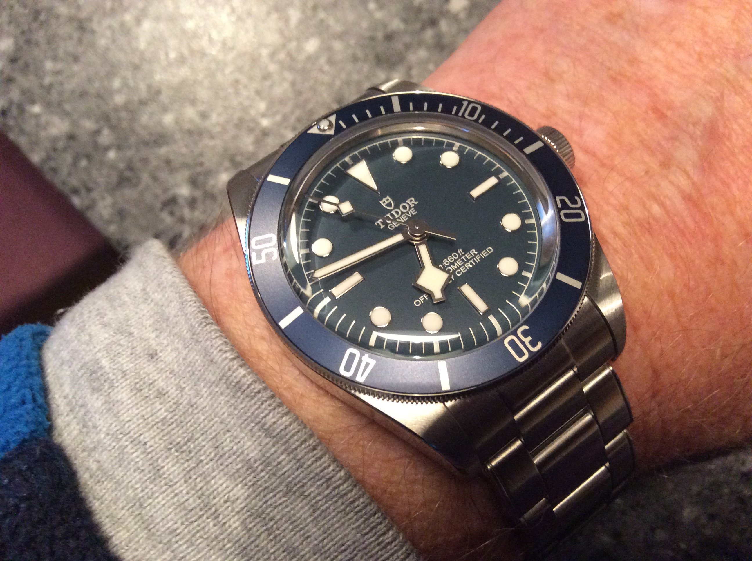 Bought new from my local AD on Saturday , was walking past & the blue bay 58 just shouted out to me from behind the toughened glass . “Buy me ,buy me ,make me yours , I’ll look so good on your wrist “ or I think that’s what I heard . Anyway I went in & asked if I could try it on , no problem at all I’ll just get it for you , then I heard “ oh this is a display model only & doesn’t work but you can be added to our waiting list if you want to be . Slightly disappointed by that ,I said I’ll still try it on please & check out the fit . Then the Manager came over & said that’s a lovely watch , I said yes it is but you haven’t any for sale as I would have bought it , He then said that they had just took delivery of 3 that morning and did I want one . Yes I do ,thank you very much & the deal was done .And think it compliments my 79090 nicely .