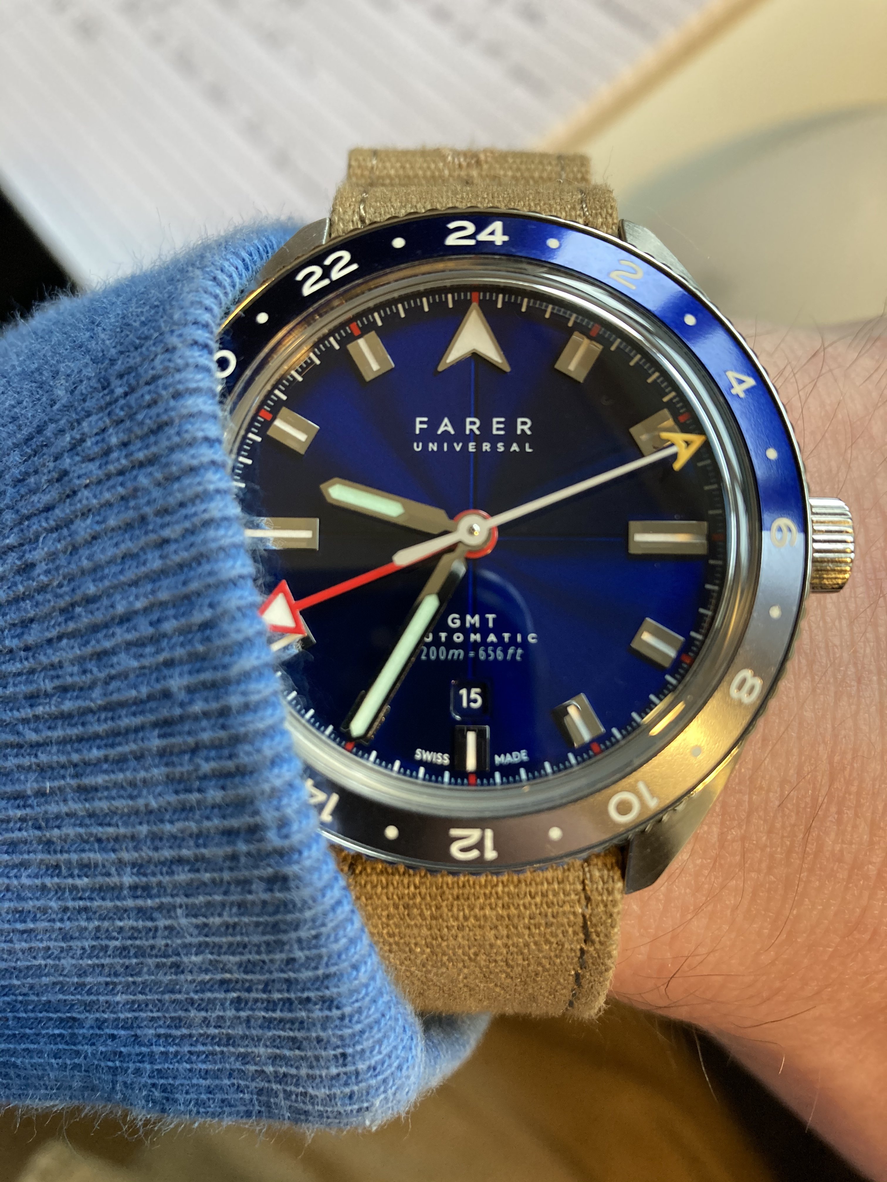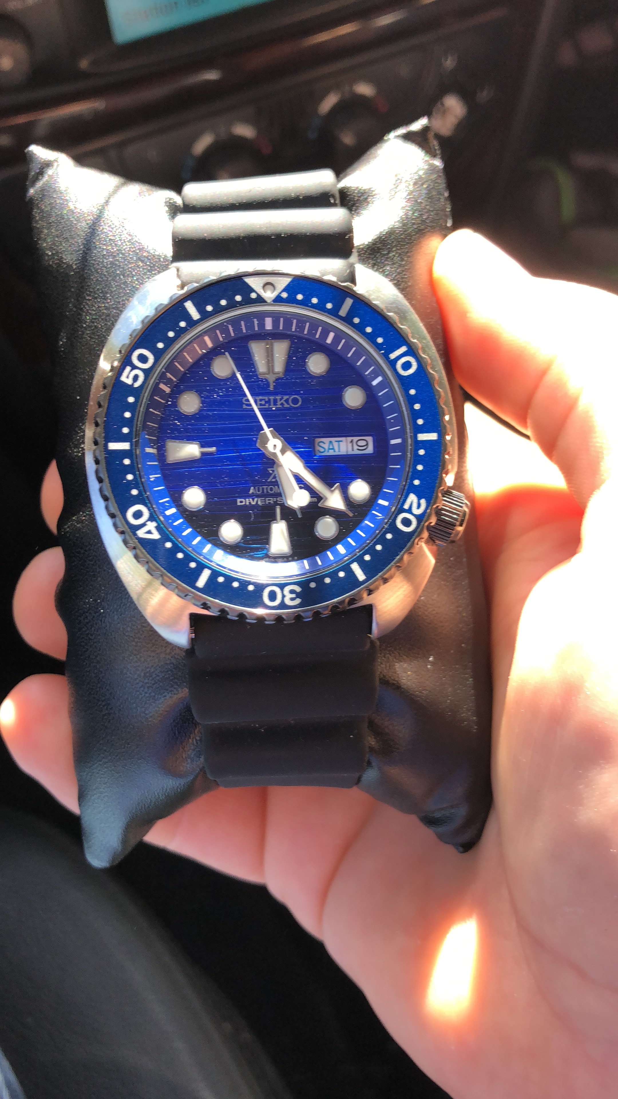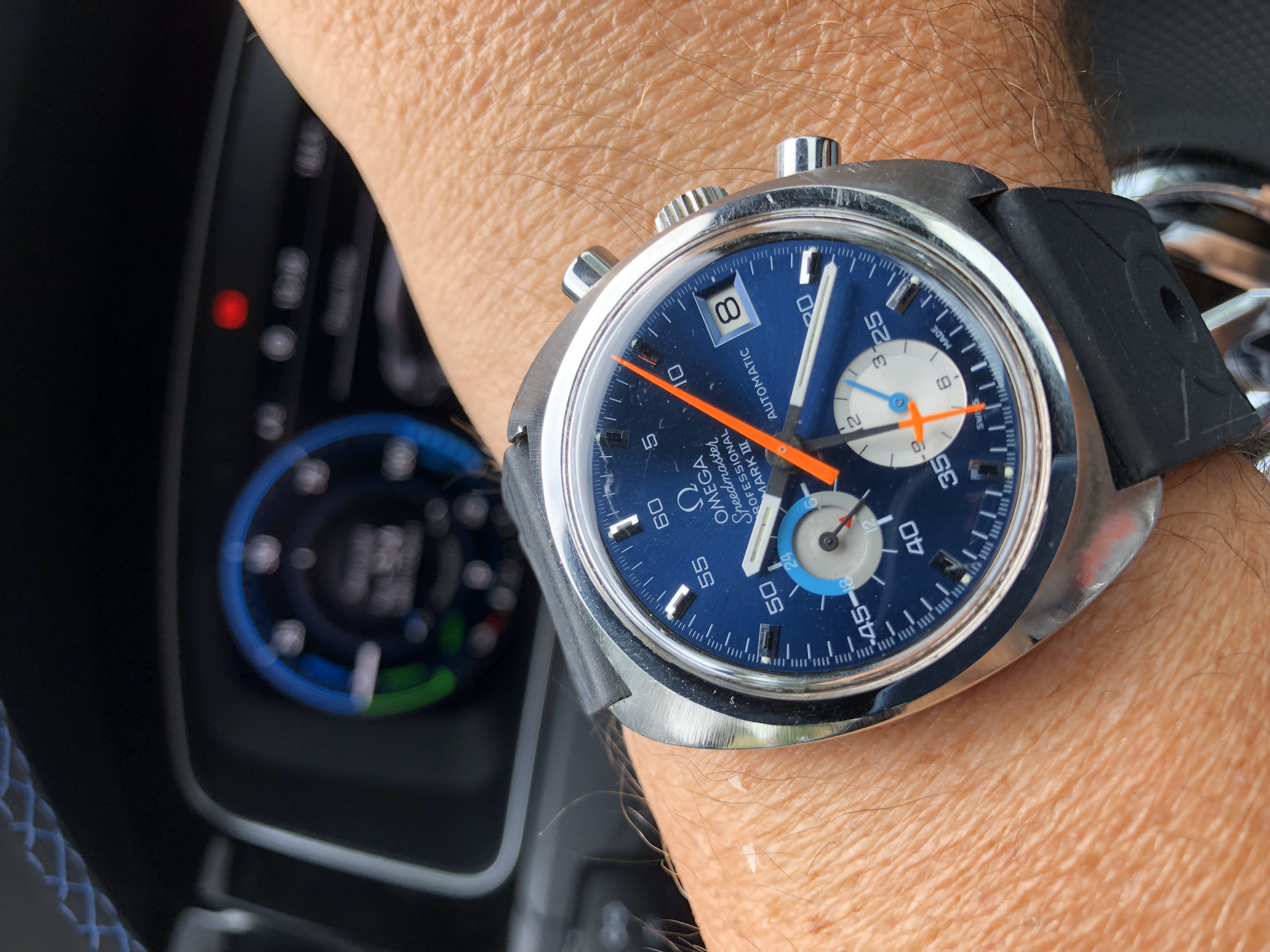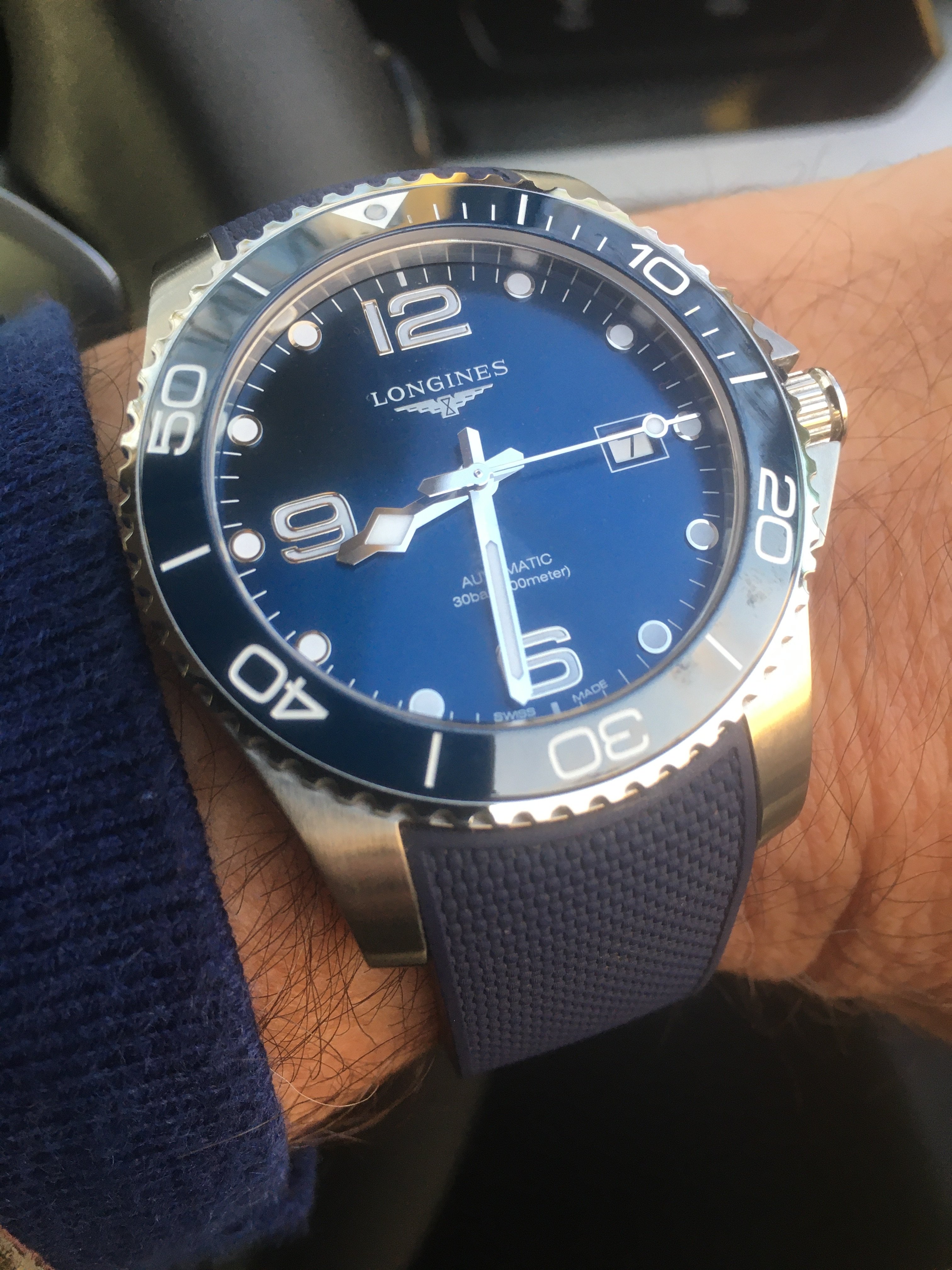 Bought new from my local AD on Saturday , was walking past & the blue bay 58 just shouted out to me from behind the toughened glass . “Buy me ,buy me ,make me yours , I’ll look so good on your wrist “ or I think that’s what I heard . Anyway I went in & asked if I could try it on , no problem at all I’ll just get it for you , then I heard “ oh this is a display model only & doesn’t work but you can be added to our waiting list if you want to be . Slightly disappointed by that ,I said I’ll still try it on please & check out the fit . Then the Manager came over & said that’s a lovely watch , I said yes it is but you haven’t any for sale as I would have bought it , He then said that they had just took delivery of 3 that morning and did I want one . Yes I do ,thank you very much & the deal was done .And think it compliments my 79090 nicely .