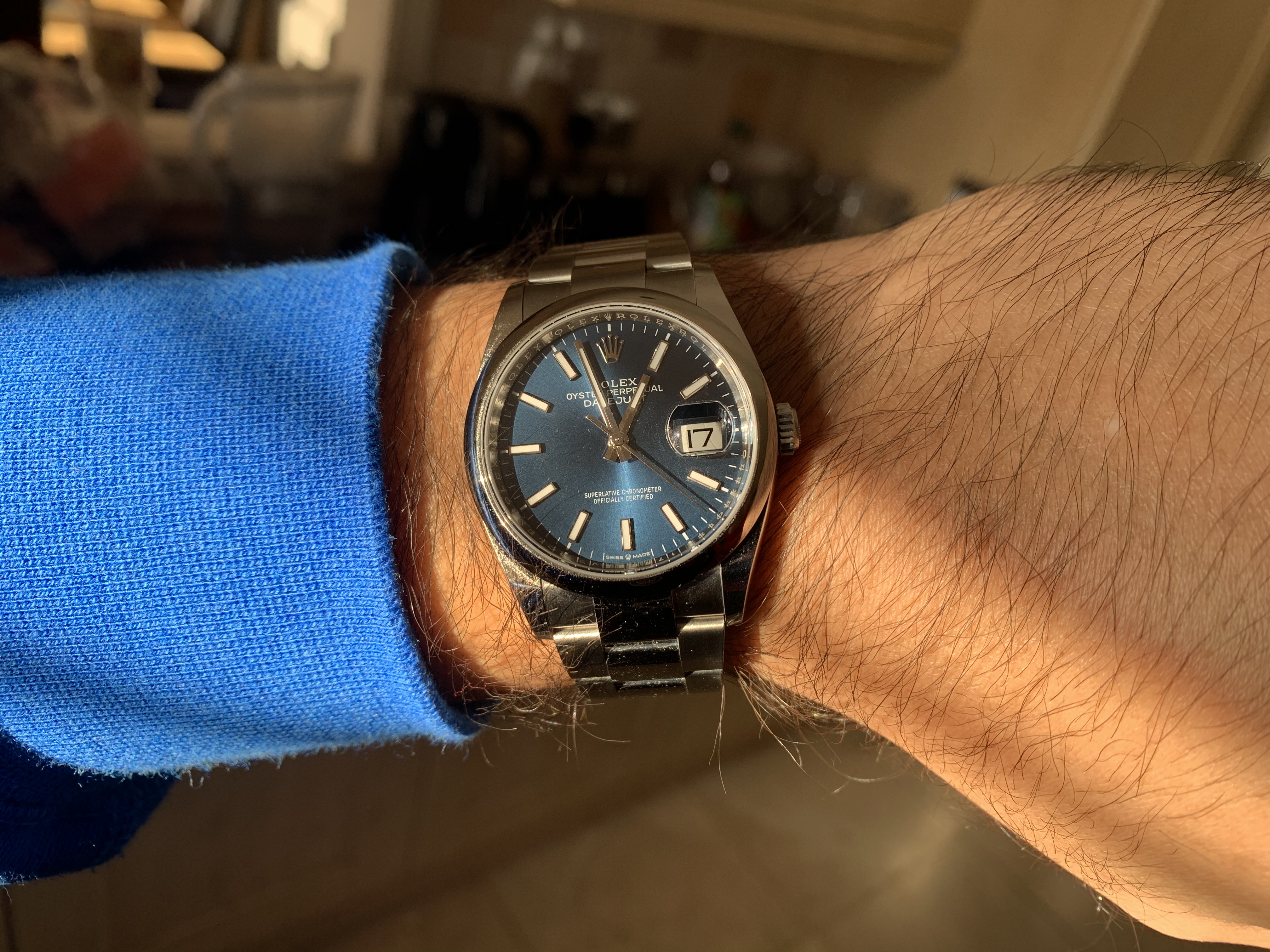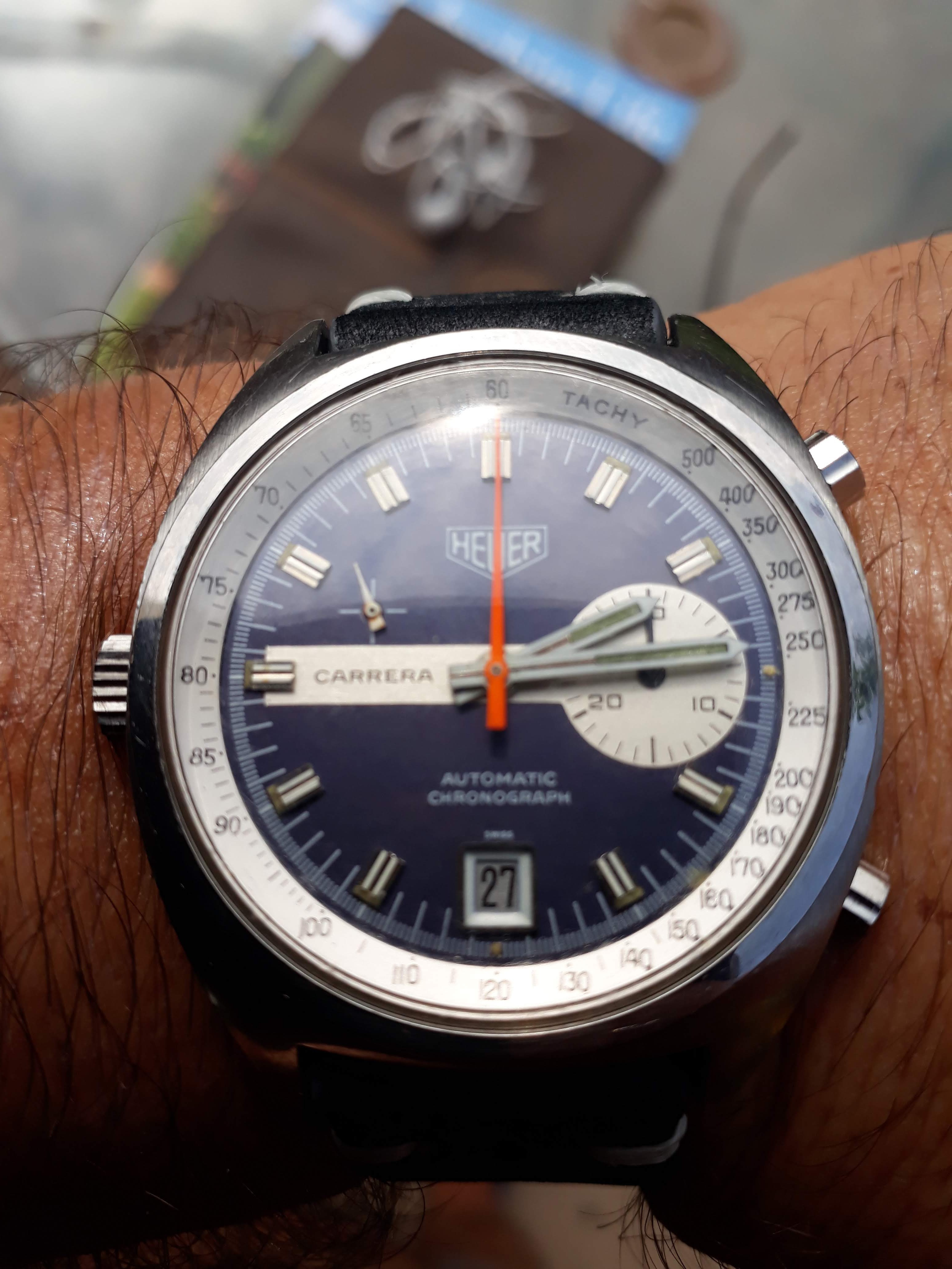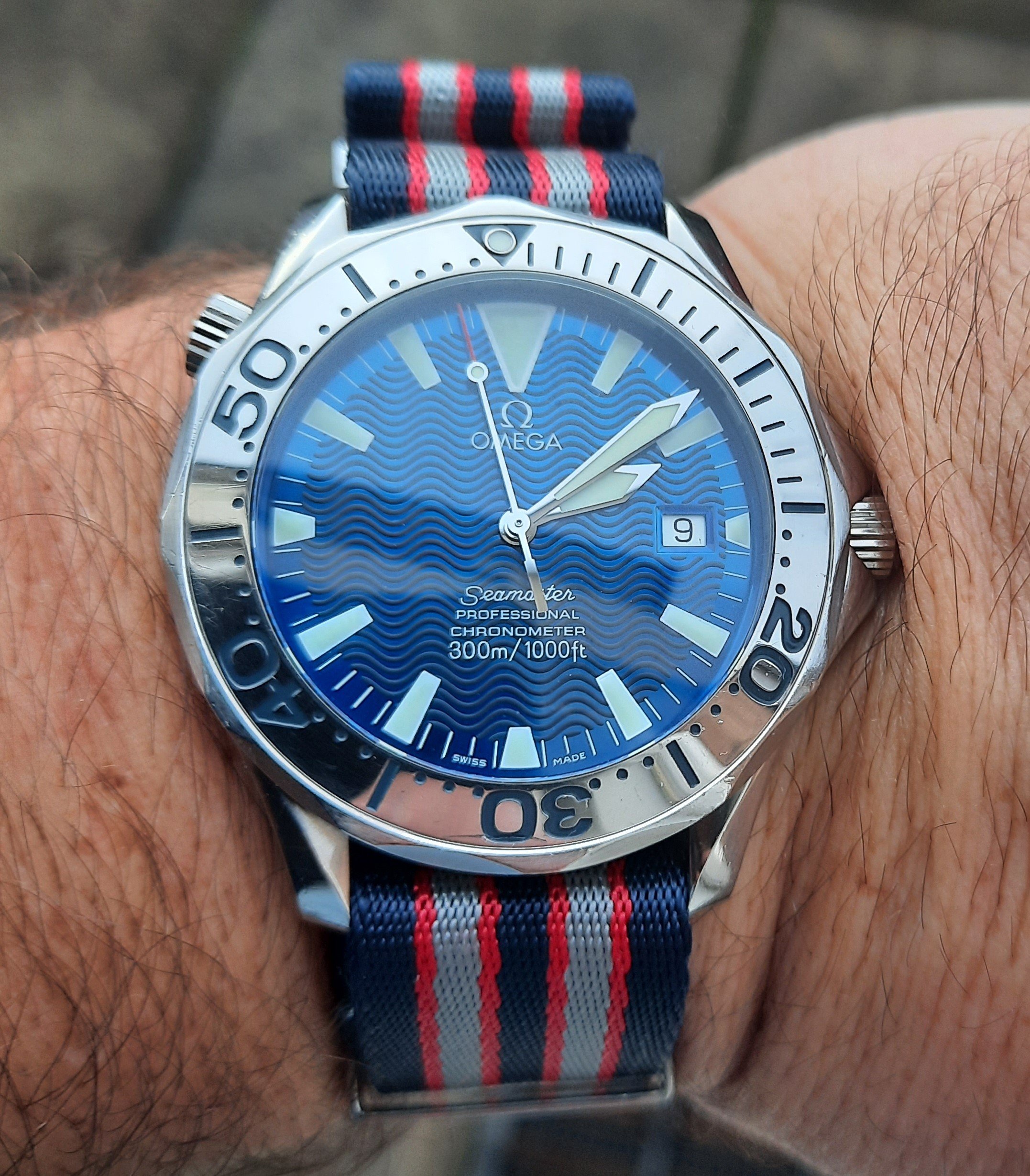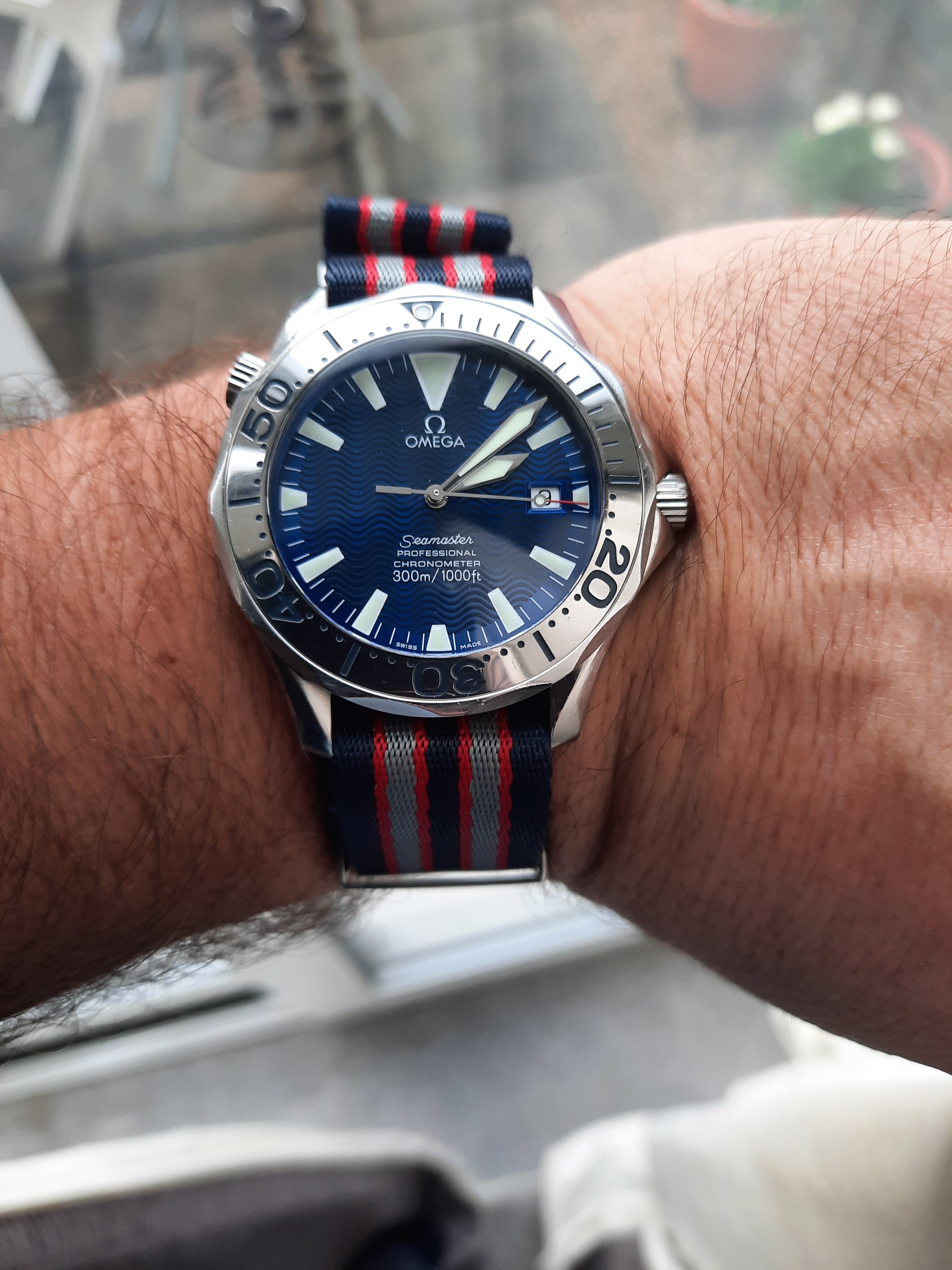 Bought new from my local AD on Saturday , was walking past & the blue bay 58 just shouted out to me from behind the toughened glass . “Buy me ,buy me ,make me yours , I’ll look so good on your wrist “ or I think that’s what I heard . Anyway I went in & asked if I could try it on , no problem at all I’ll just get it for you , then I heard “ oh this is a display model only & doesn’t work but you can be added to our waiting list if you want to be . Slightly disappointed by that ,I said I’ll still try it on please & check out the fit . Then the Manager came over & said that’s a lovely watch , I said yes it is but you haven’t any for sale as I would have bought it , He then said that they had just took delivery of 3 that morning and did I want one . Yes I do ,thank you very much & the deal was done .And think it compliments my 79090 nicely .