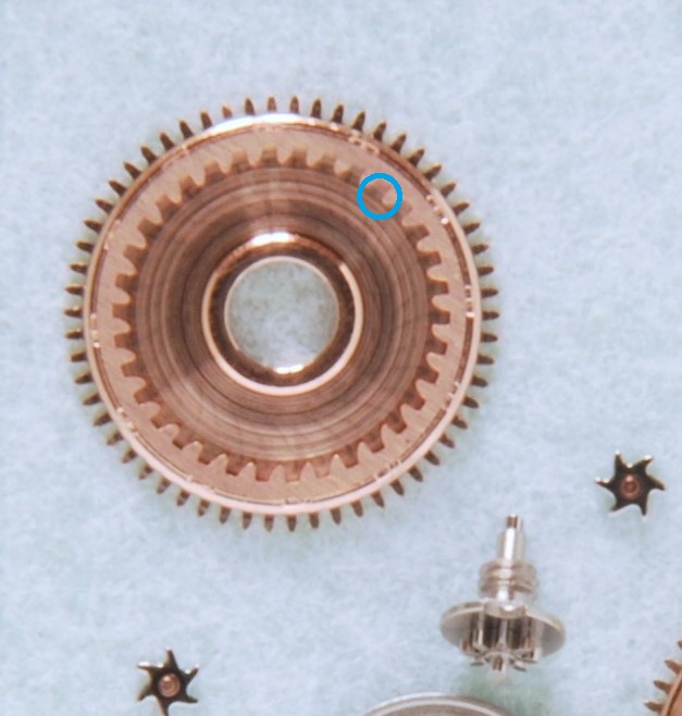 On the winding wheels for the 55X, 56X, and 75X movements, new wheels come lubricated from the factory. If the date code on the package is less than 4 years ago, then the wheel can be removed and used as is. If it's older than 4 years, it must be cleaned and lubricated again. I replace a lot of these as the pivots are often worn, and as Chris suggested they are not cheap, so it's usually the most expensive part I replace on these movements. Unfortunately although Omega does sell some of the individual parts of this assembly, the main pinion is not one of them.