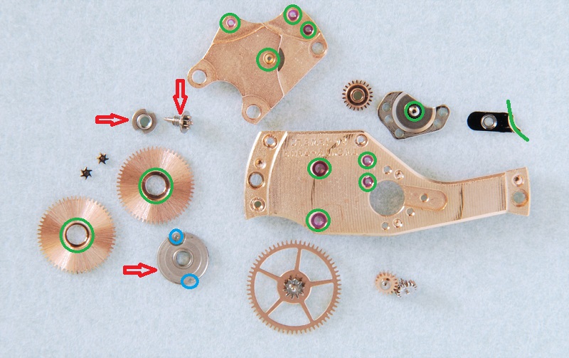 Now Omega does produce additional documents other than just parts lists, and even the more complete modern tech guides. These are called "General information for calibers" and usually cover a whole family of calibers rather than specific movements. So information that would apply across a number of movements in the same family. There is such a document for the 55X family, and in there they give information on disassembly, cleaning, and lubrication of the winding wheel. In addition this document lists parts that are mandatory replacements during service, how to make specific adjustments (like syncing the day and ate change on the 75X series), and other useful information.